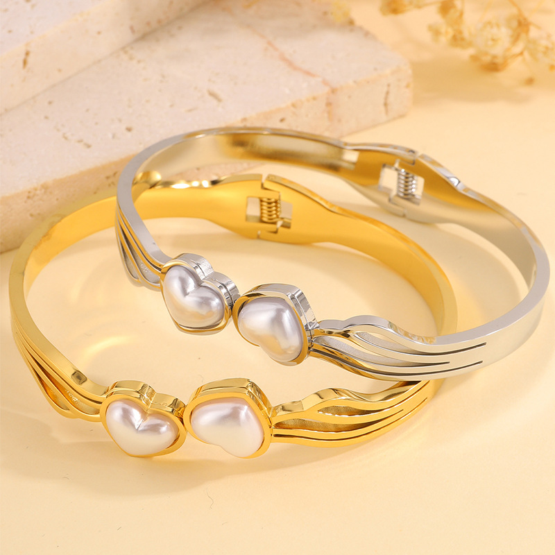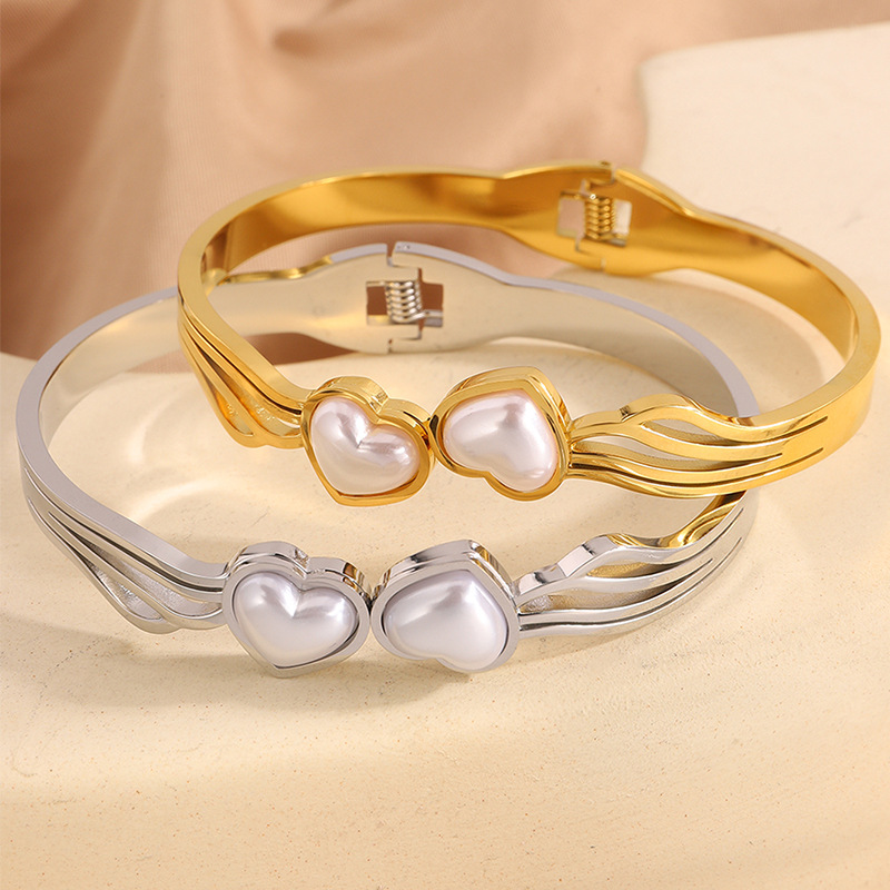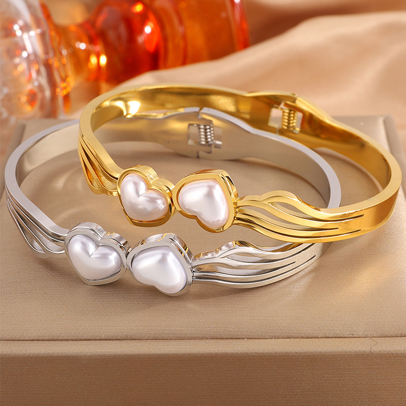 Bracelet en acier inoxydable, Acier inoxydable 304, avec perle de plastique, Placage, bijoux de mode & pour femme & creux, plus de couleurs à choisir, Vendu par PC