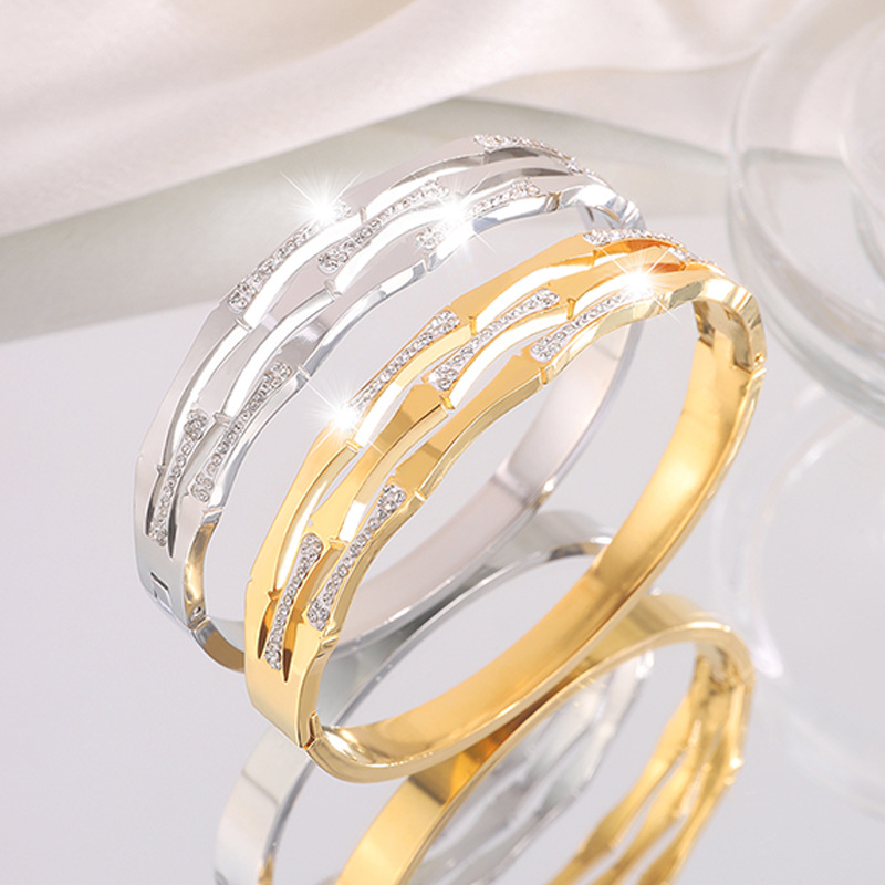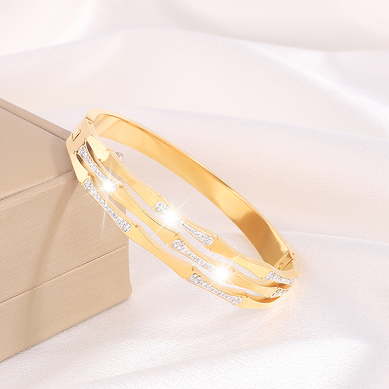 Bracelet en acier inoxydable, Acier inoxydable 304, Placage, pour femme & avec strass & creux, plus de couleurs à choisir, Vendu par PC
