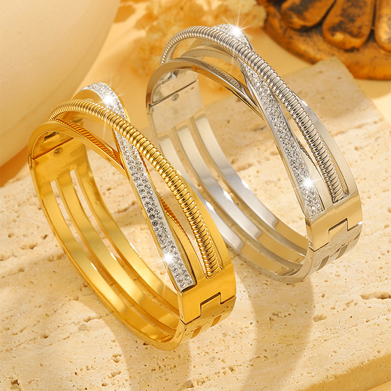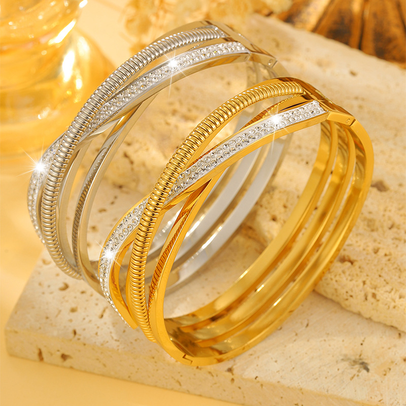 Bracelet en acier inoxydable, Acier inoxydable 304, Placage, unisexe & avec strass & creux, plus de couleurs à choisir, Vendu par PC