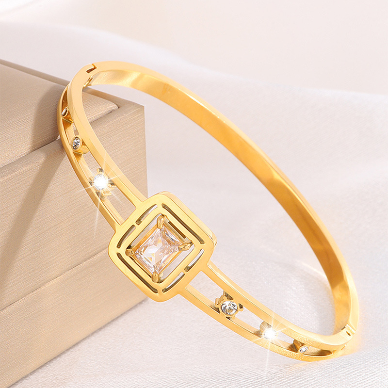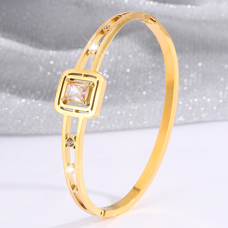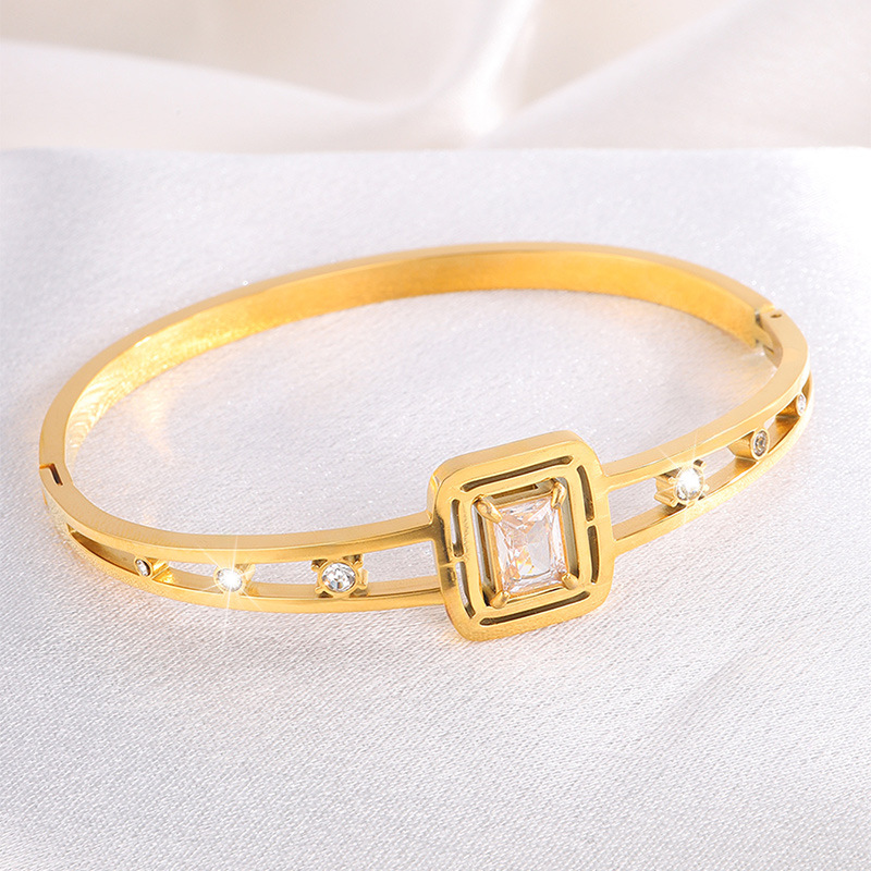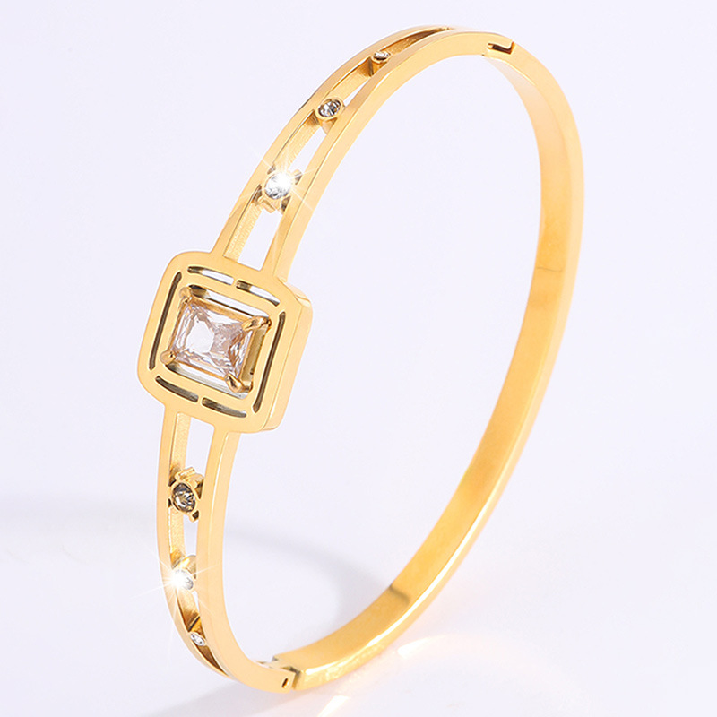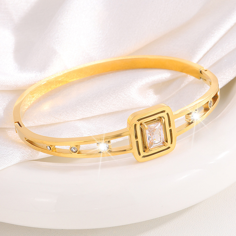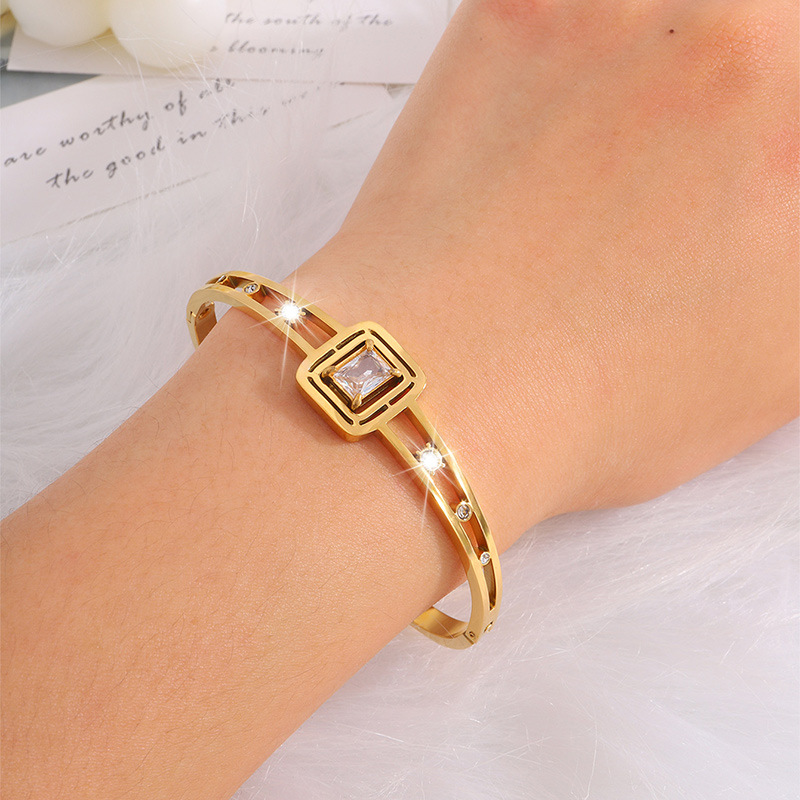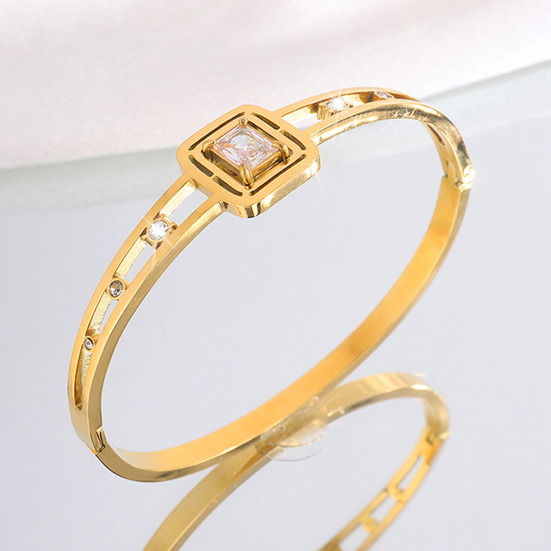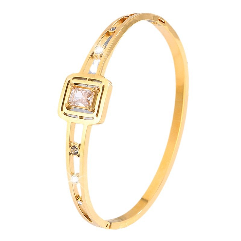 Bracelet en acier inoxydable, Acier inoxydable 304, Plaqué or 18K, pour femme & avec strass & creux, Vendu par PC