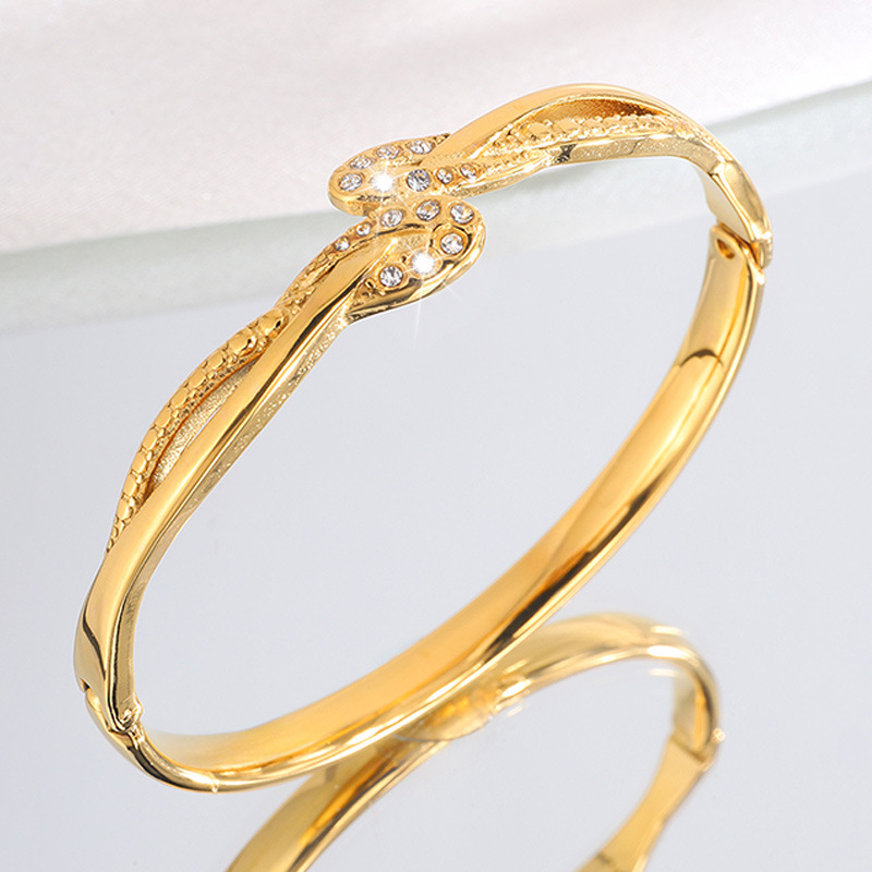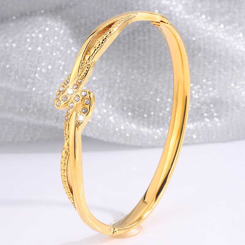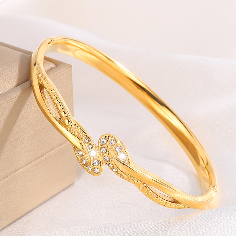 Bracelet en acier inoxydable, Acier inoxydable 304, Placage, pour femme & avec strass & creux, doré, Vendu par PC