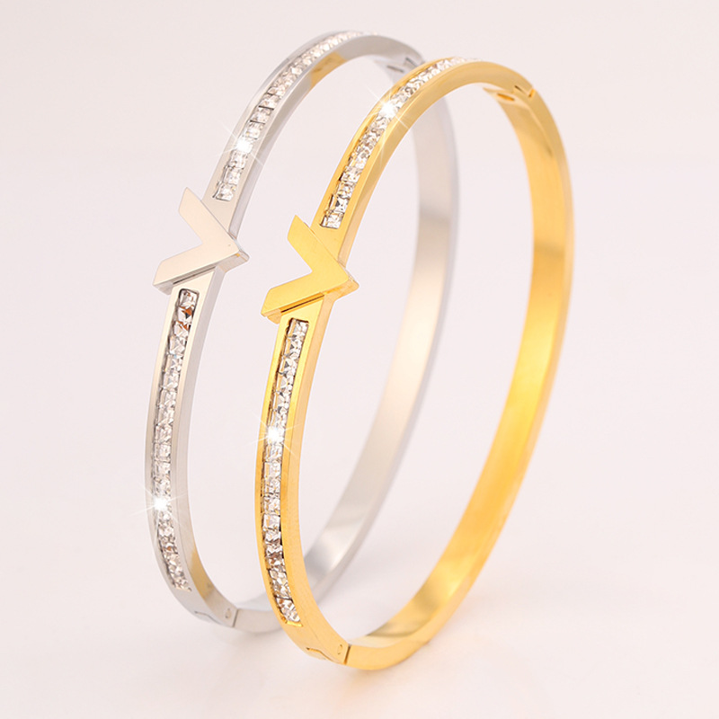 Bracelet en acier inoxydable, Placage, pour femme & avec strass, plus de couleurs à choisir .5 pouce, Vendu par PC