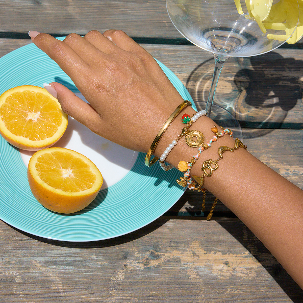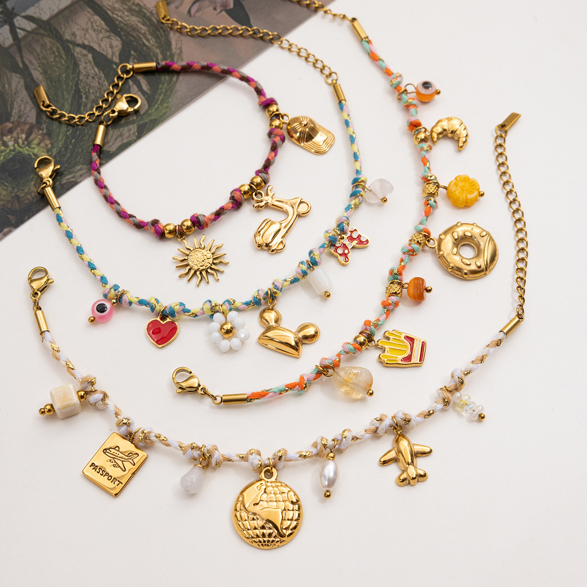 Bracelet en acier inoxydable, Acier inoxydable 304, avec perle de plastique, Placage de couleur d'or, bijoux de mode & émail, plus de couleurs à choisir, Vendu par PC