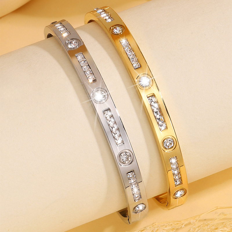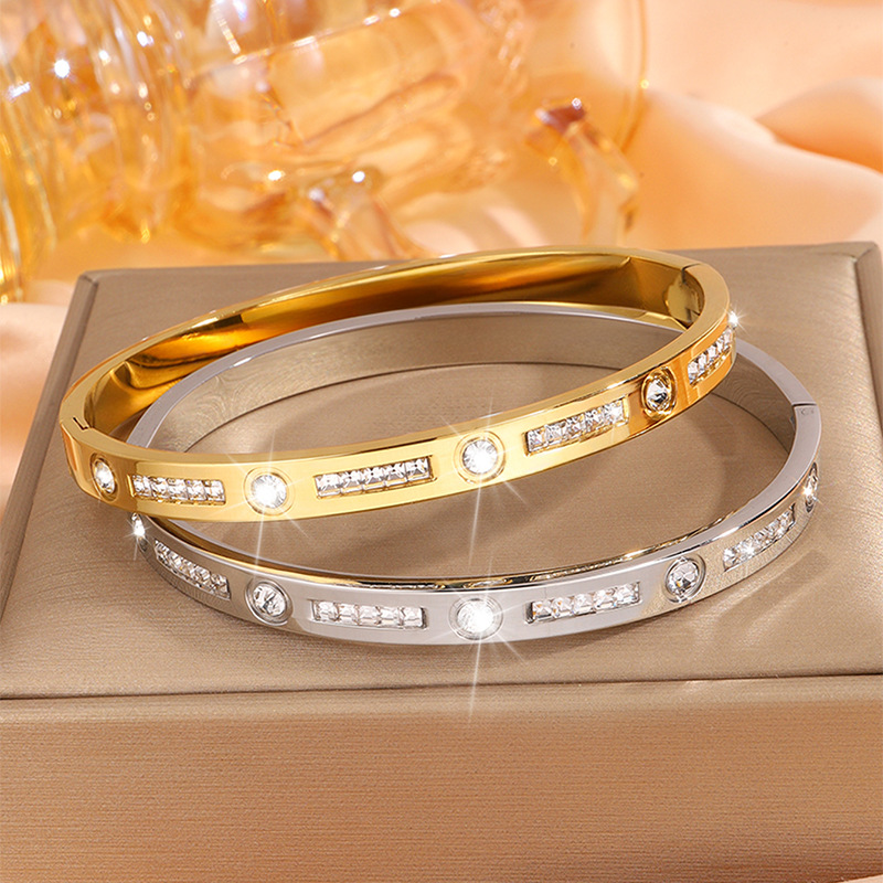 Bracelet en acier inoxydable, Placage, pour femme & avec strass, plus de couleurs à choisir .5 pouce, Vendu par PC