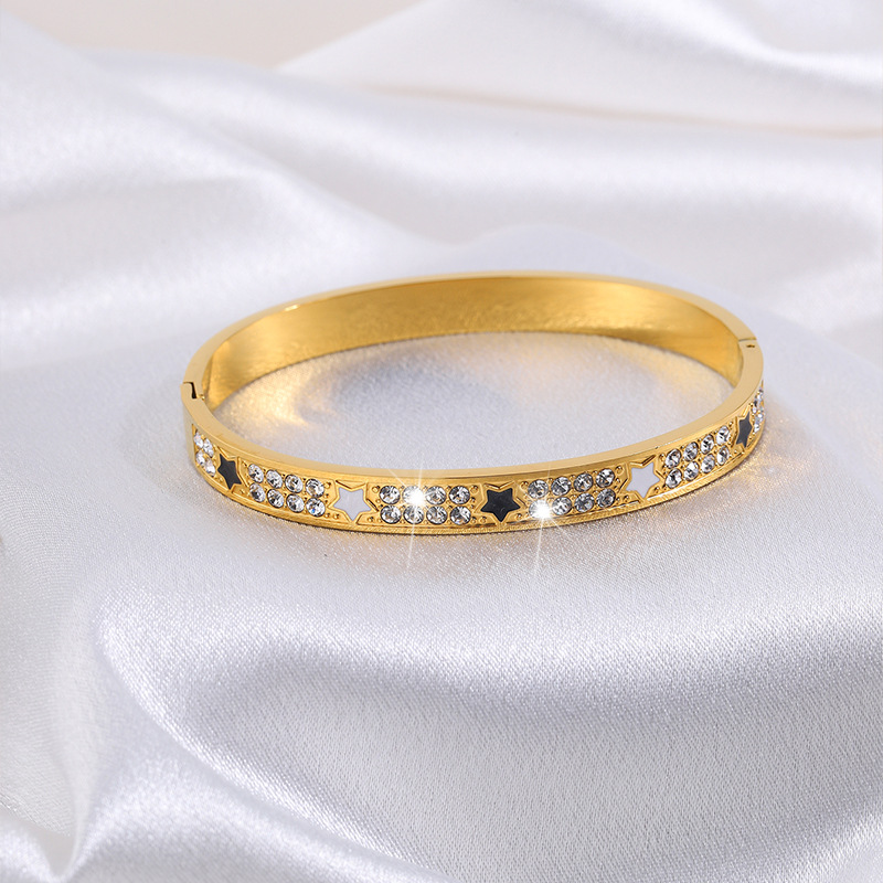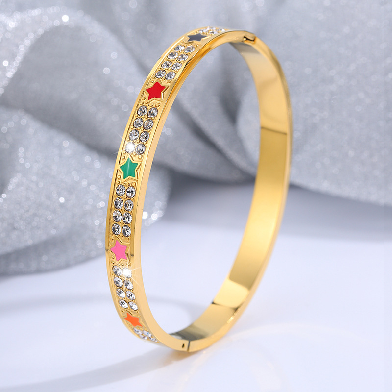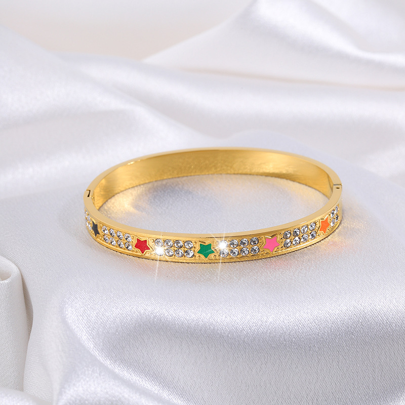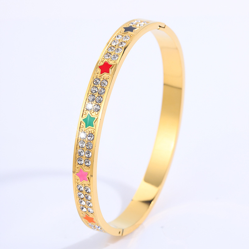 Bracelet en acier inoxydable, Acier inoxydable 304, Plaqué or 18K, pour femme & émail & avec strass, plus de couleurs à choisir, Vendu par PC
