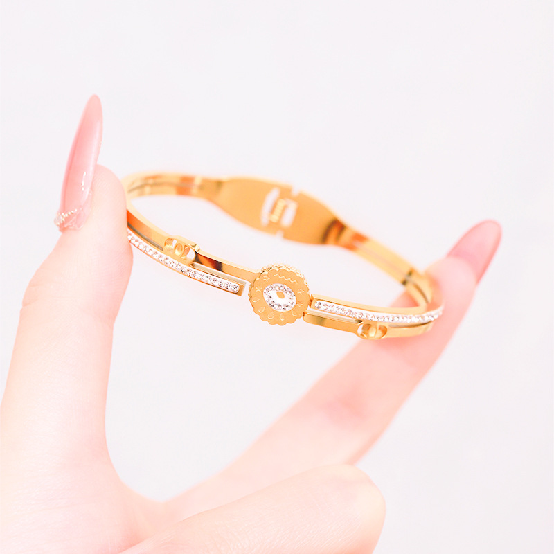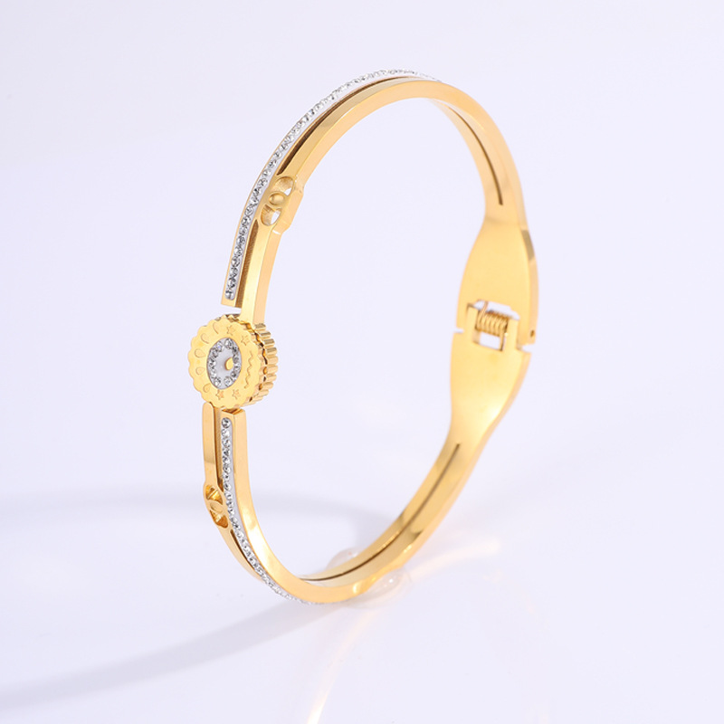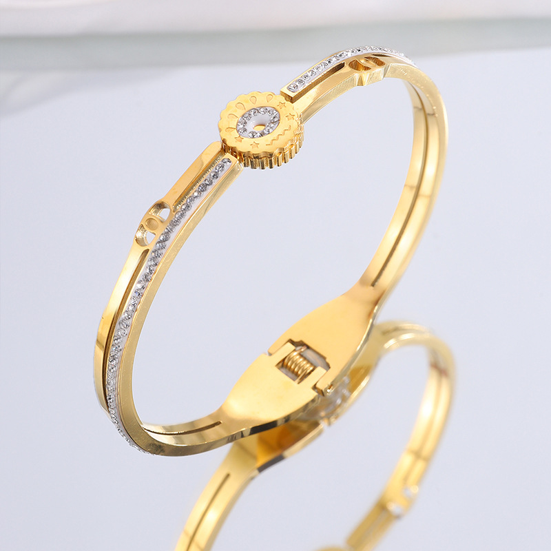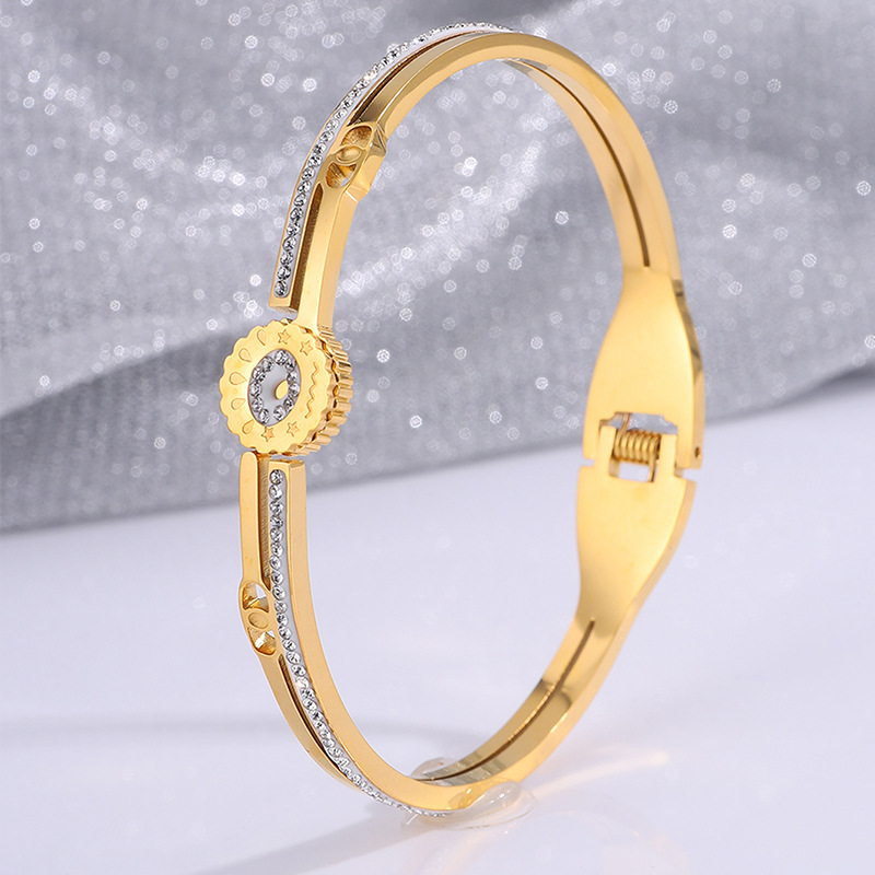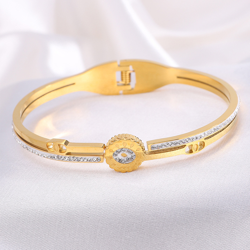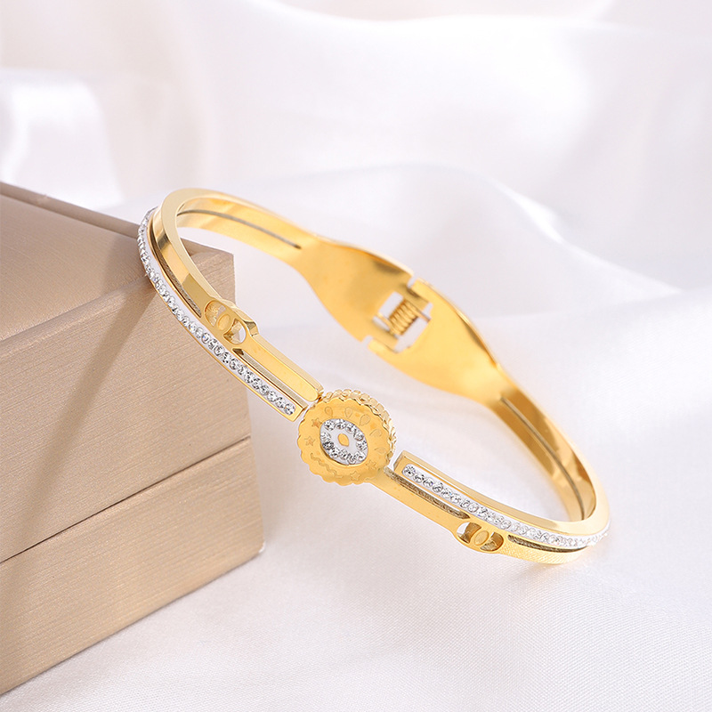 Bracelet en acier inoxydable, Acier inoxydable 304, Placage, pour femme & avec strass & creux, doré, Vendu par PC