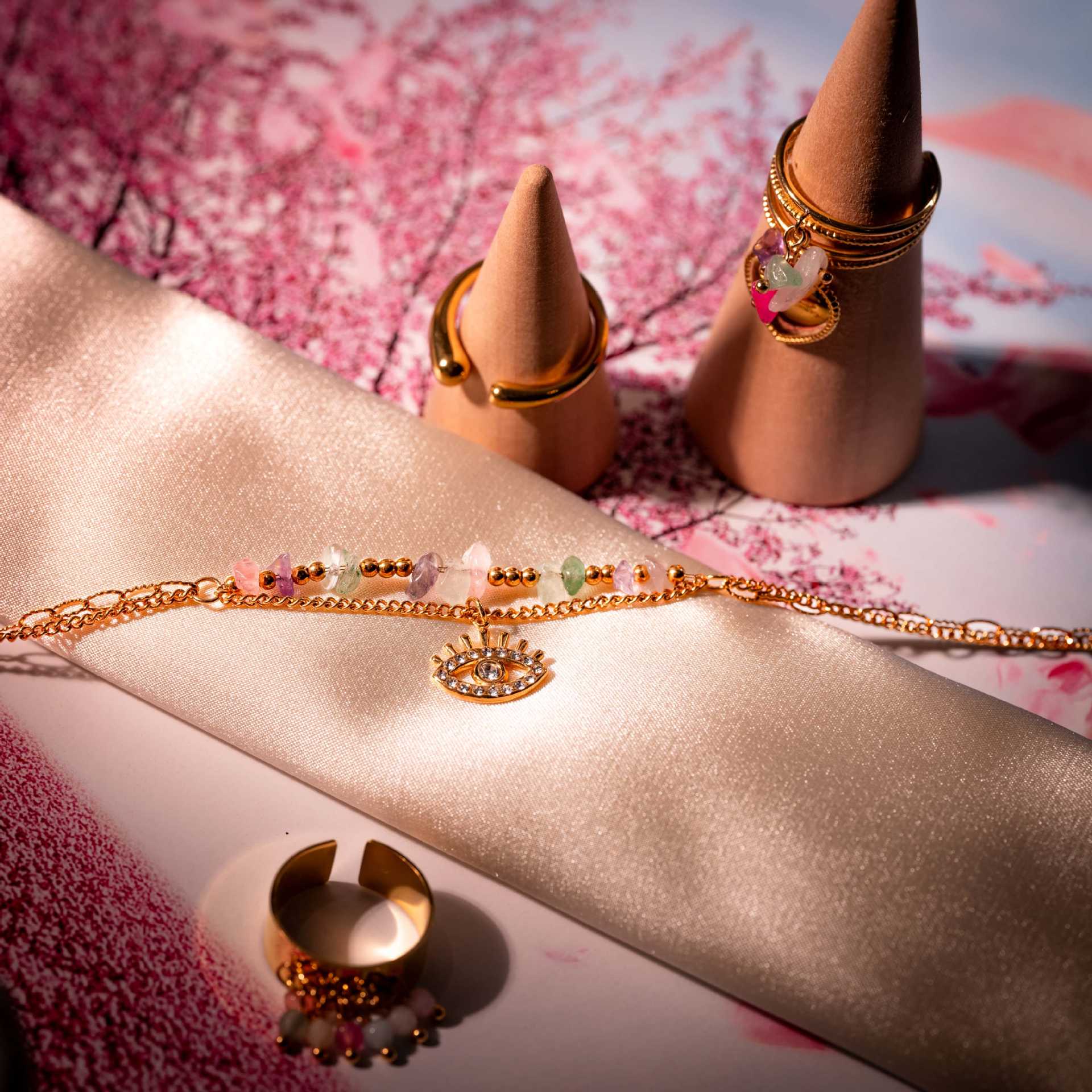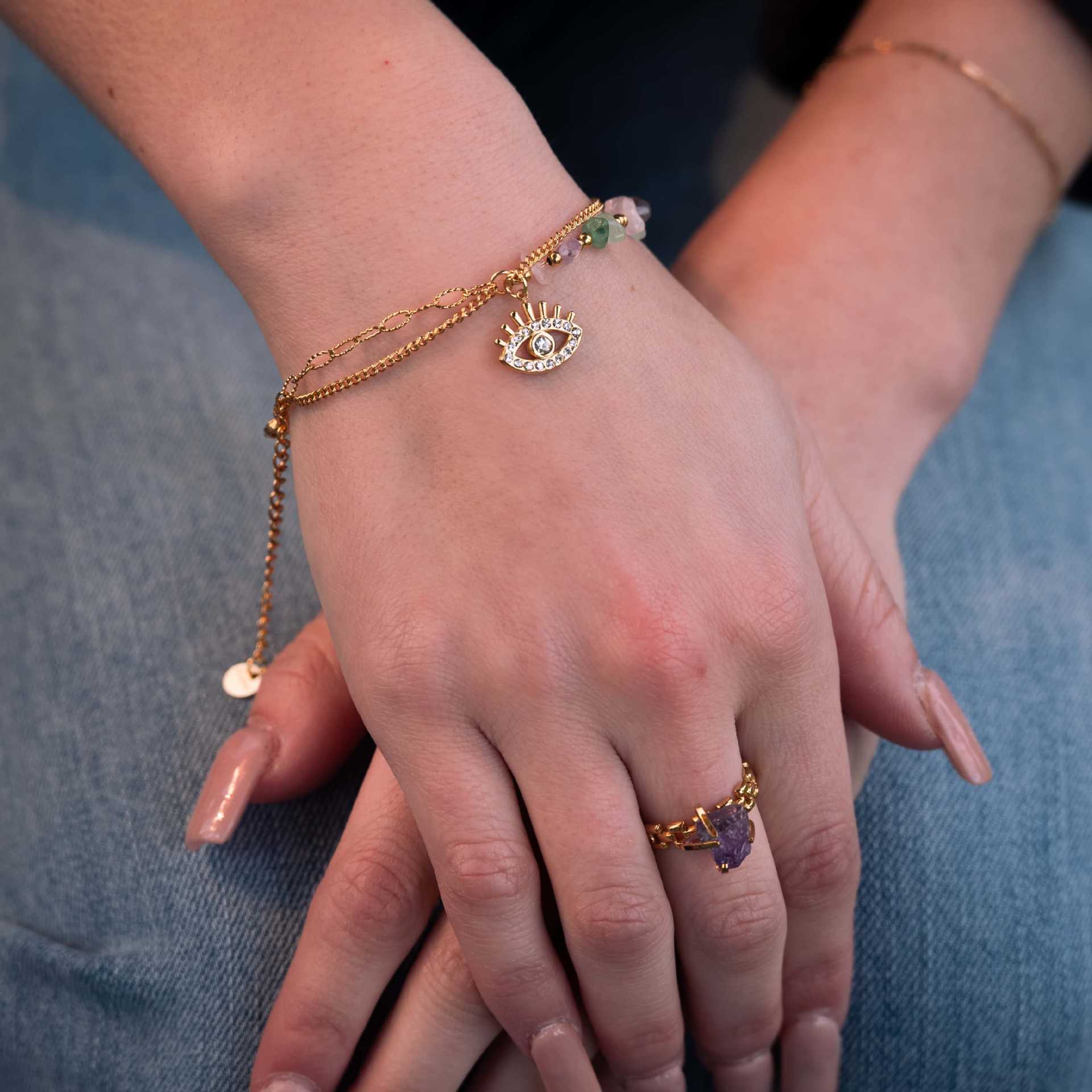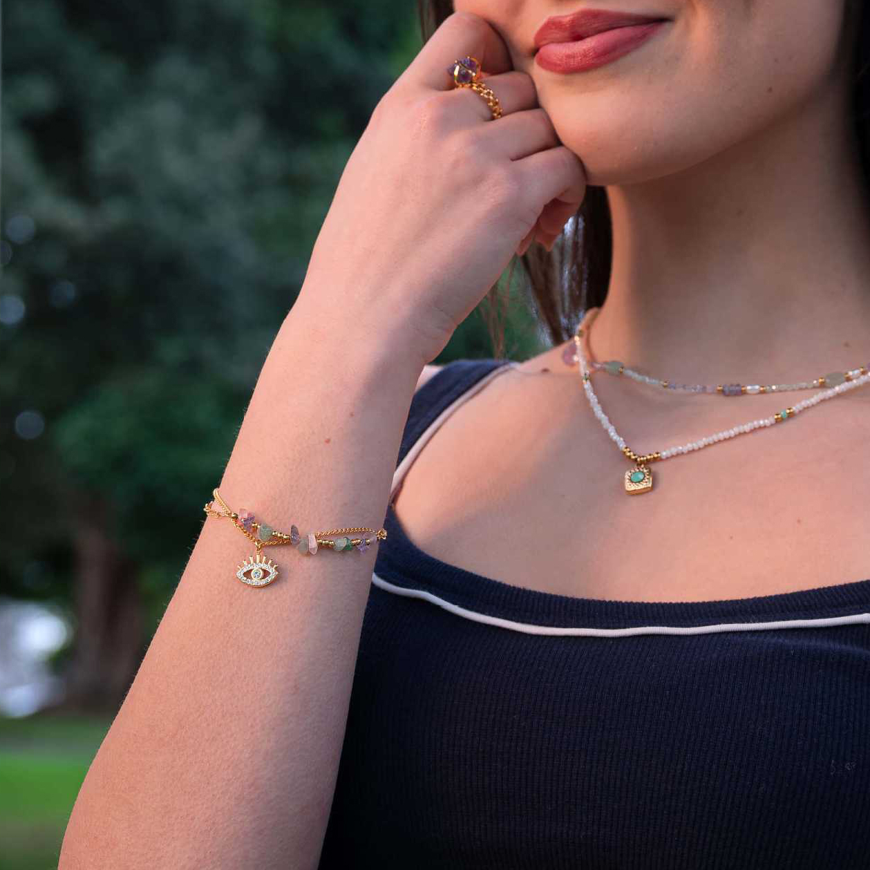Bracelet en acier inoxydable, Acier inoxydable 304, avec Pierre naturelle, Plaqué or 18K, Double couche & pavé de micro zircon & pour femme, Vendu par PC