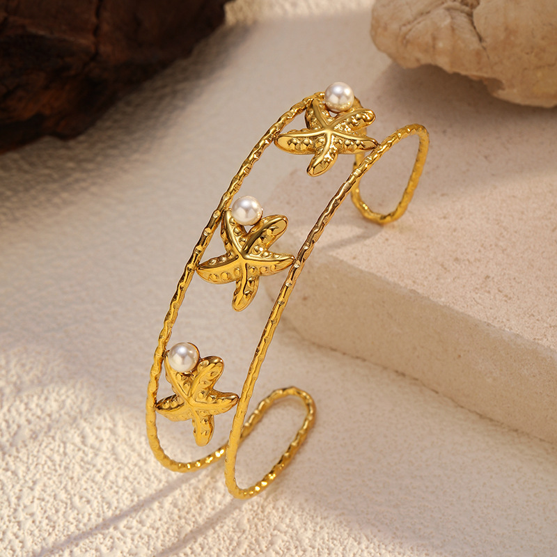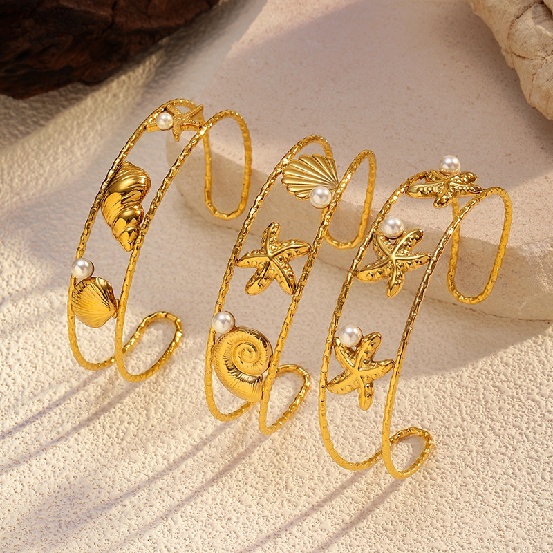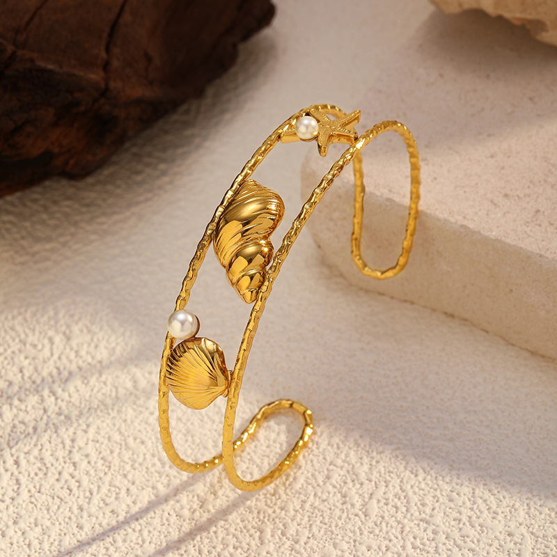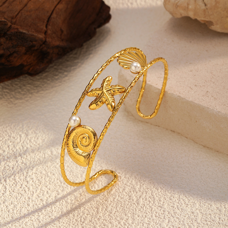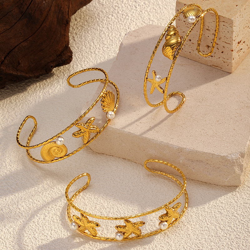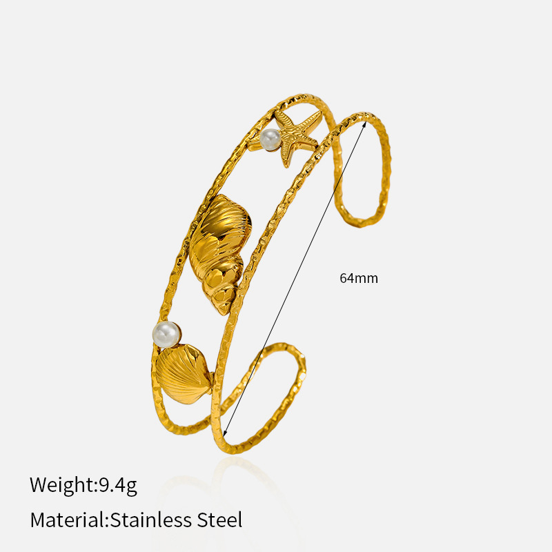 Bracelet en acier inoxydable, Acier inoxydable 304, avec perle de plastique, Placage, styles différents pour le choix & pour femme & creux, doré, Vendu par PC