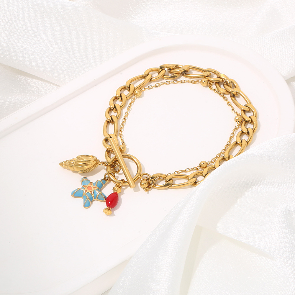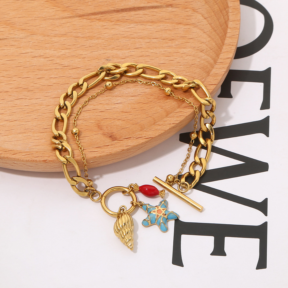 Bracelet en acier inoxydable, Acier inoxydable 304, Placage de couleur d'or, bijoux de mode & émail, doré, Longueur:18 cm, Vendu par PC