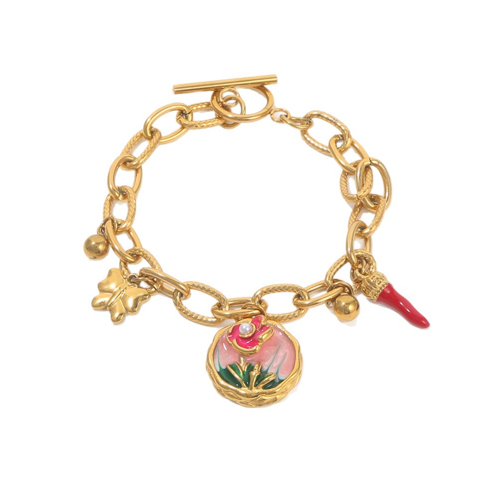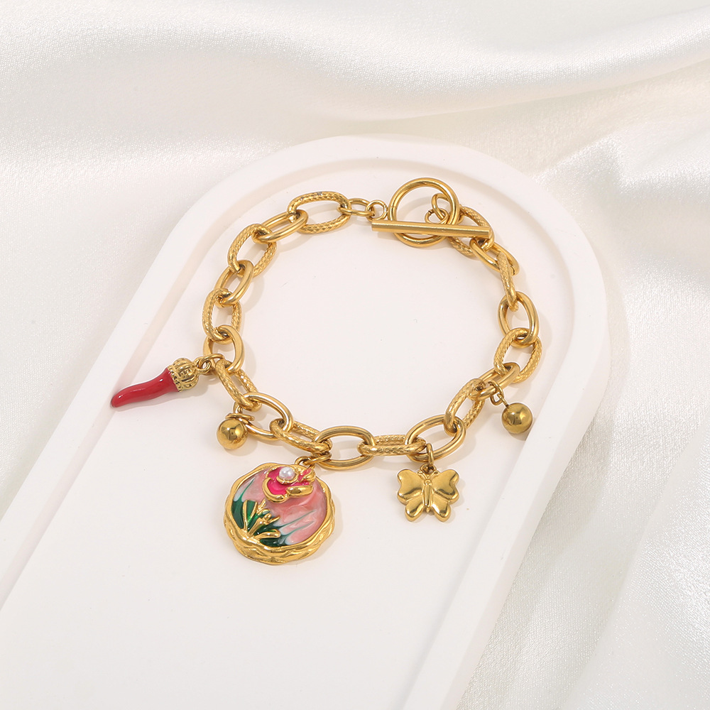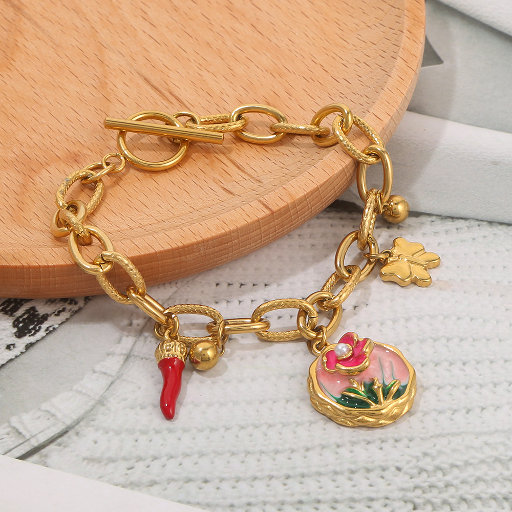 Bracelet en acier inoxydable, fleur, bracelet à breloques & chaîne ovale, couleur originale  Environ 9 pouce, Vendu par brin