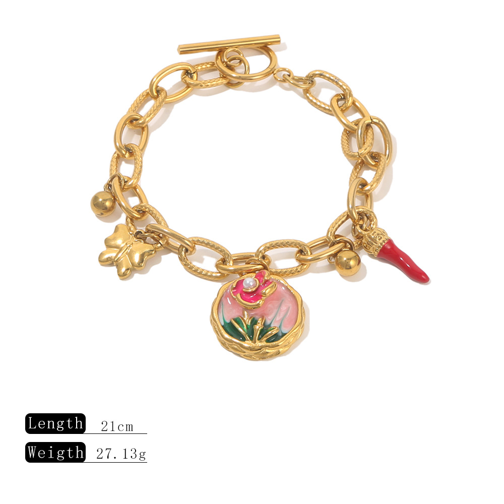 Bracelet en acier inoxydable, Acier inoxydable 304, avec perle de plastique, Placage de couleur d'or, bijoux de mode & émail, doré, Longueur:21 cm, Vendu par PC