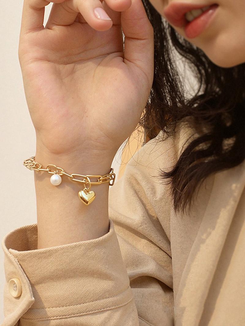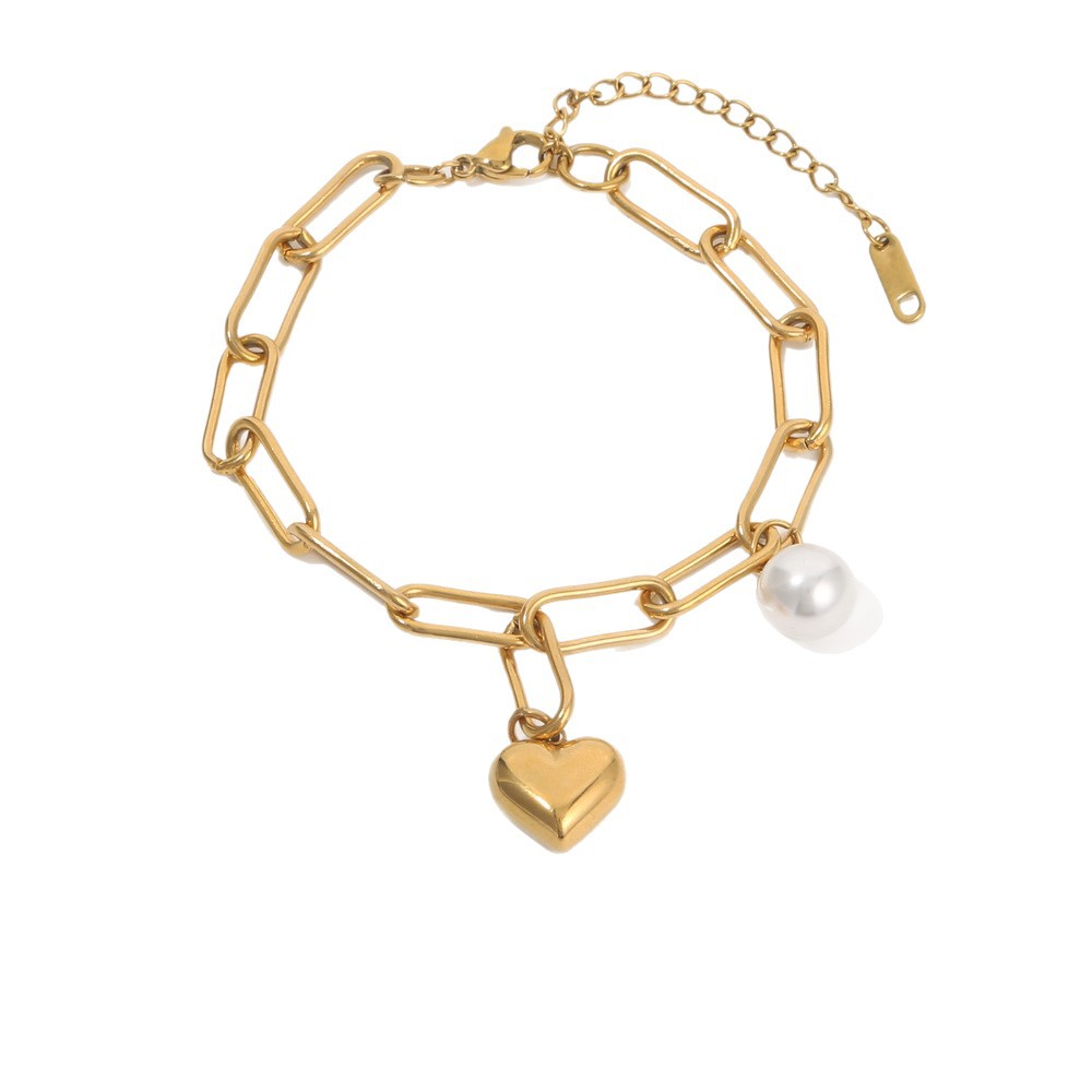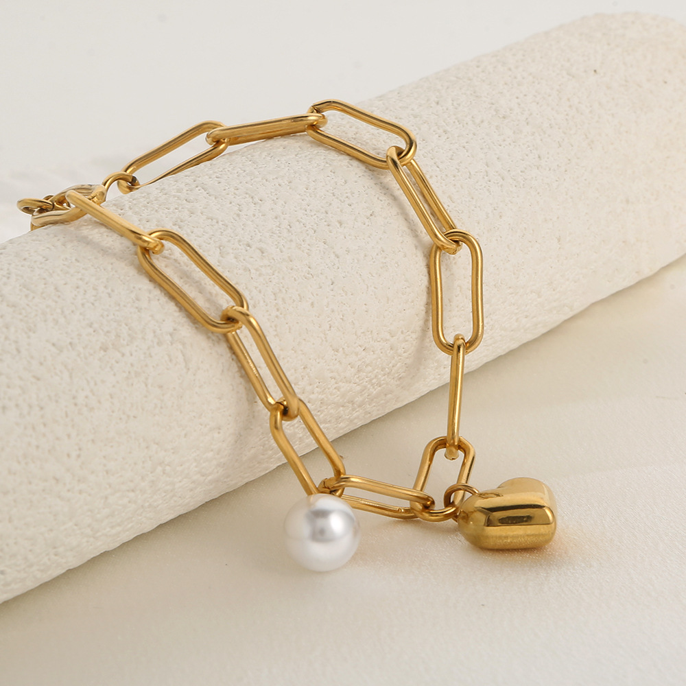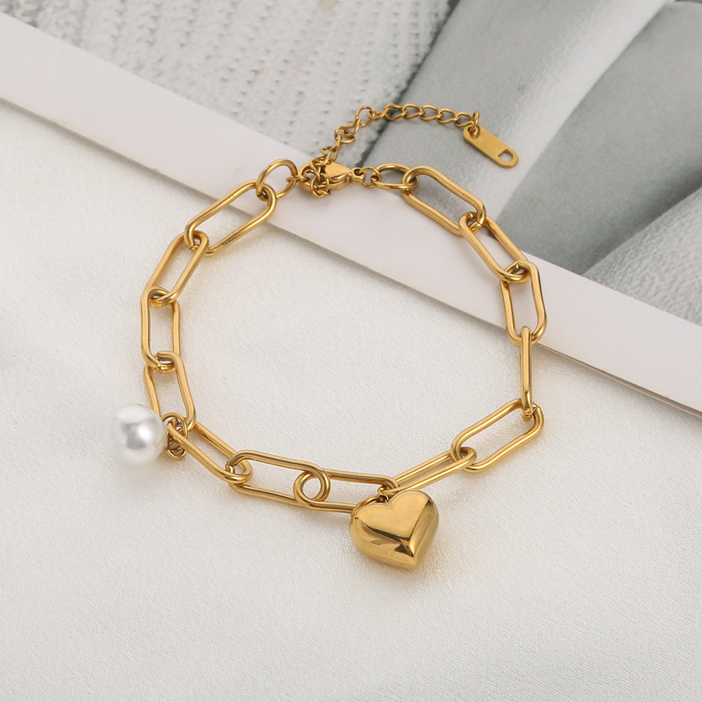 Bracelet en acier inoxydable, coeur, bracelet à breloques & chaîne ovale, couleur originale  4mm Environ 8 pouce, Vendu par brin