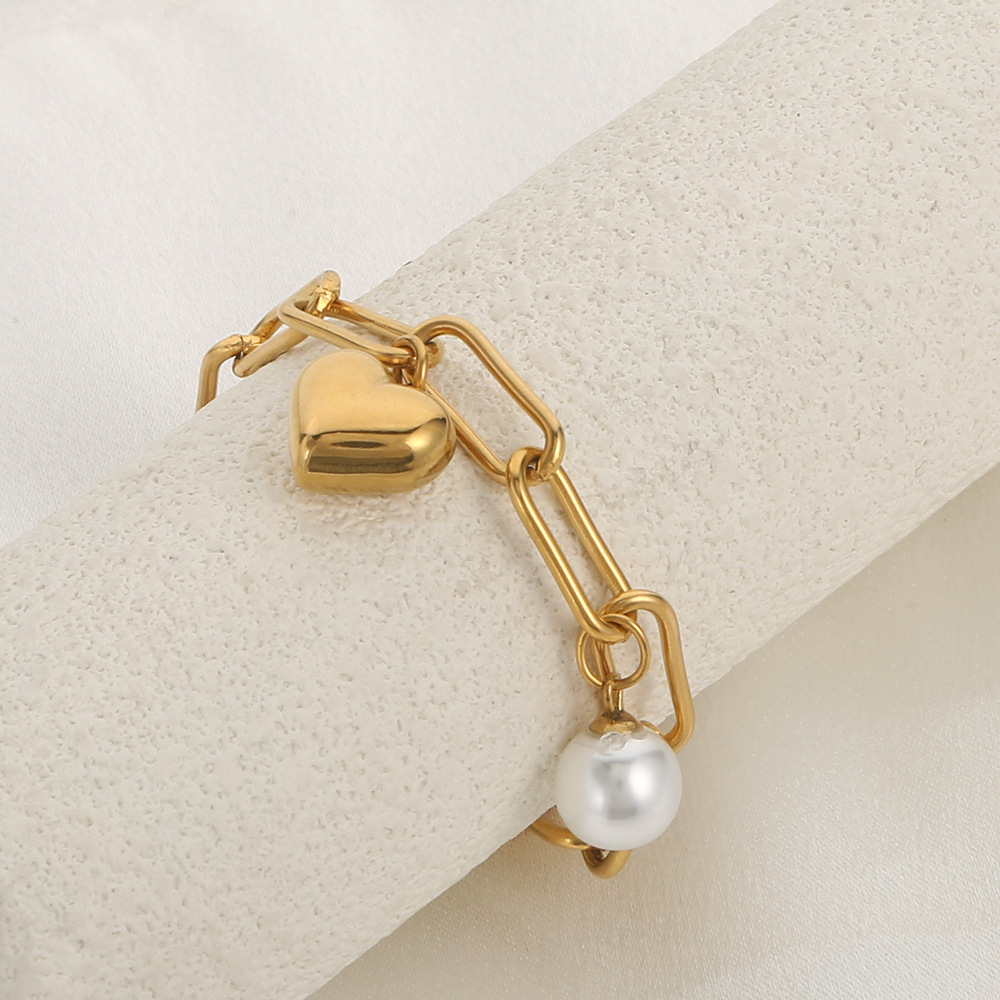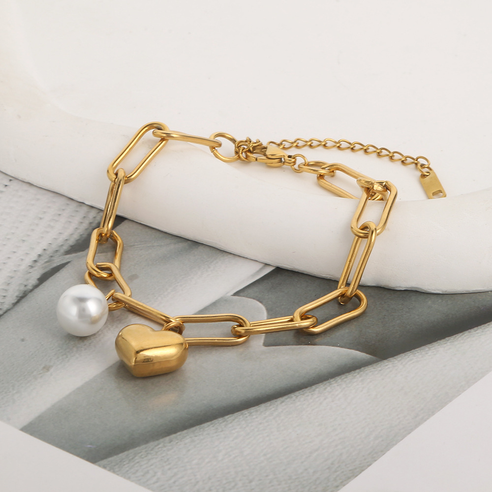Bracelet en acier inoxydable, Acier inoxydable 304, avec perle de plastique, Placage de couleur d'or, bijoux de mode, doré, Vendu par PC