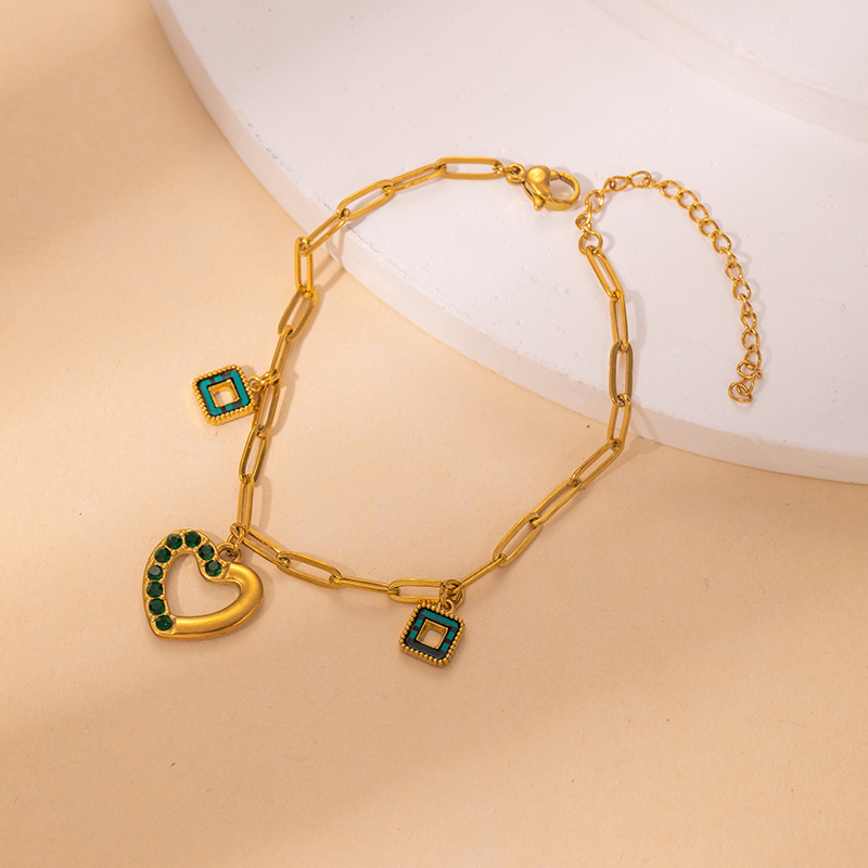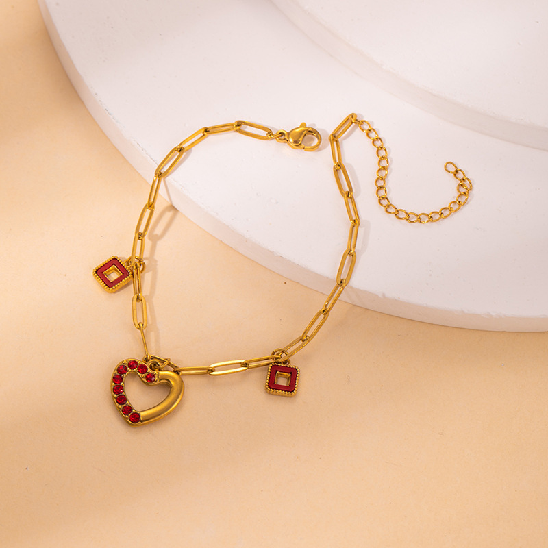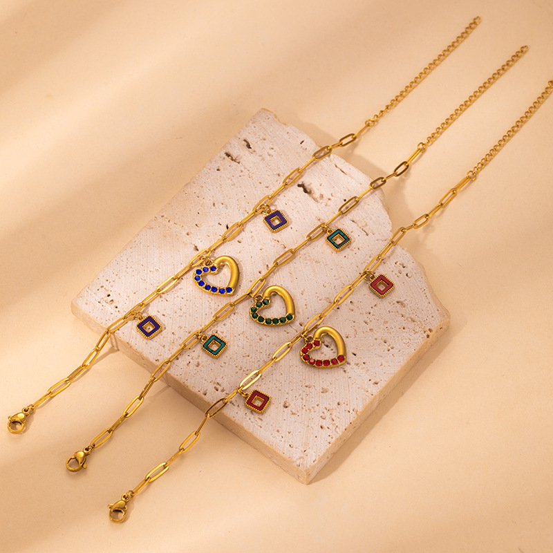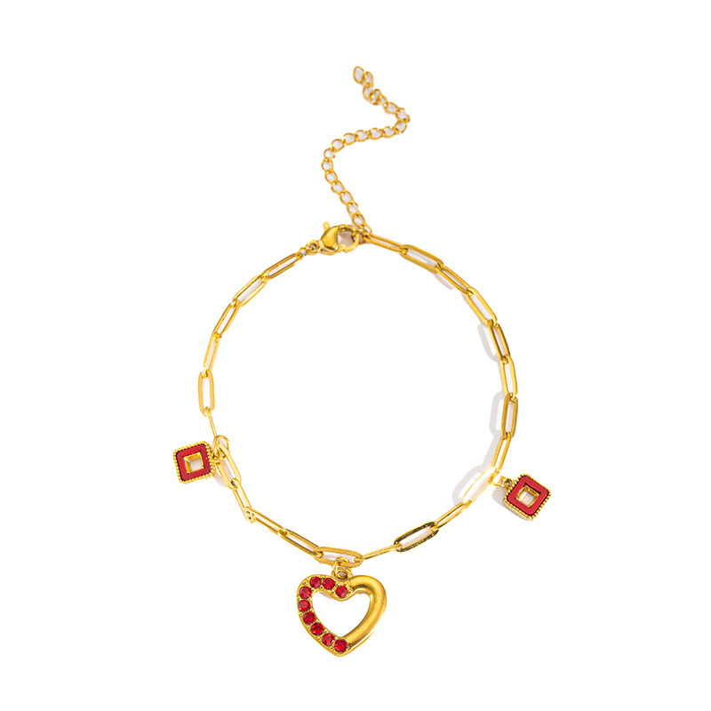Bracelet en acier inoxydable, coeur, bracelet à breloques & chaîne ovale, couleur originale  4mm Environ 8 pouce, Vendu par brin