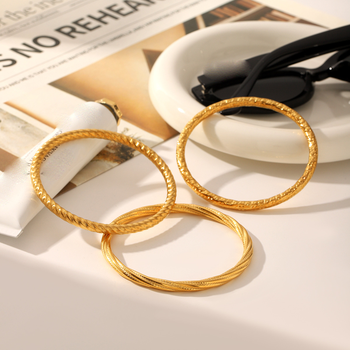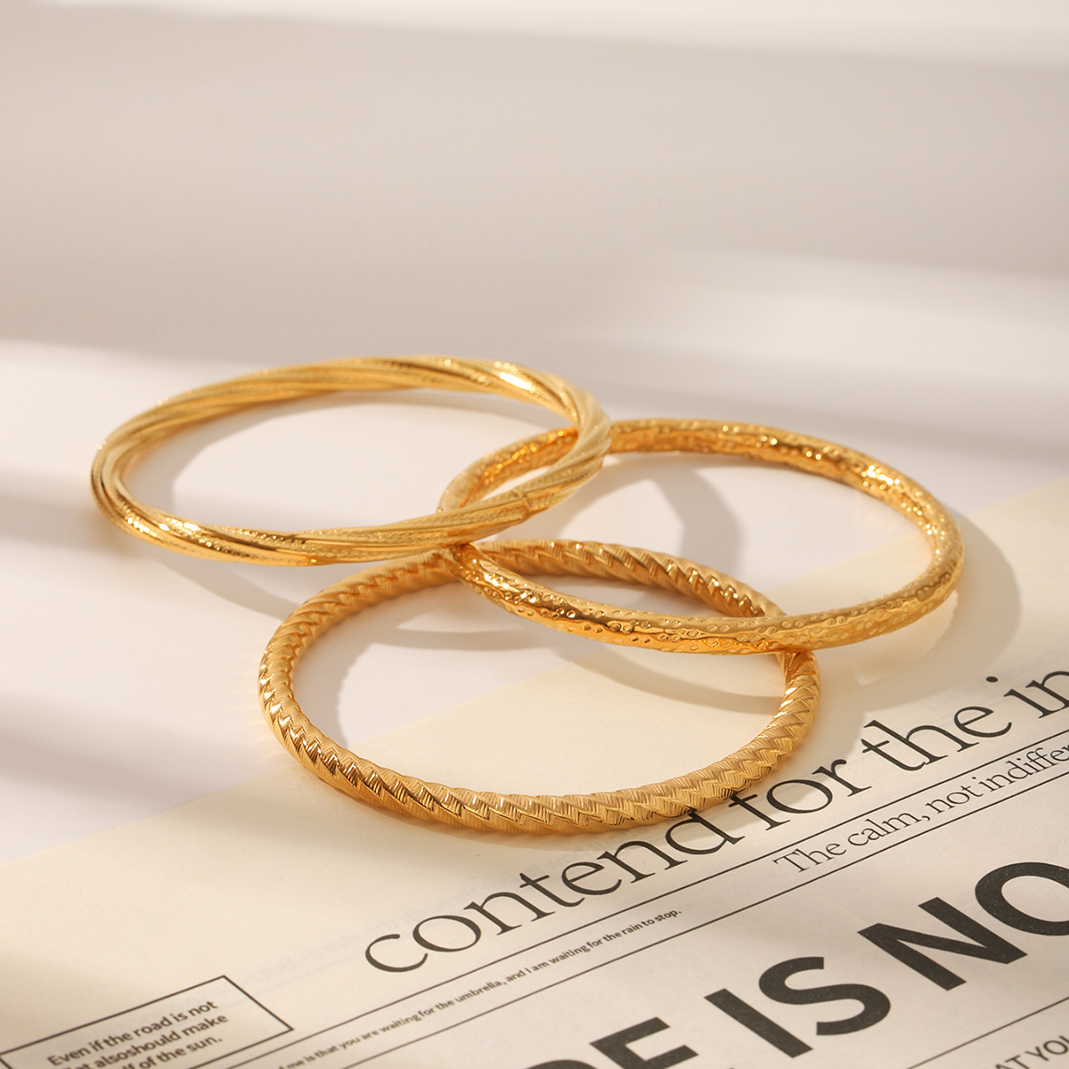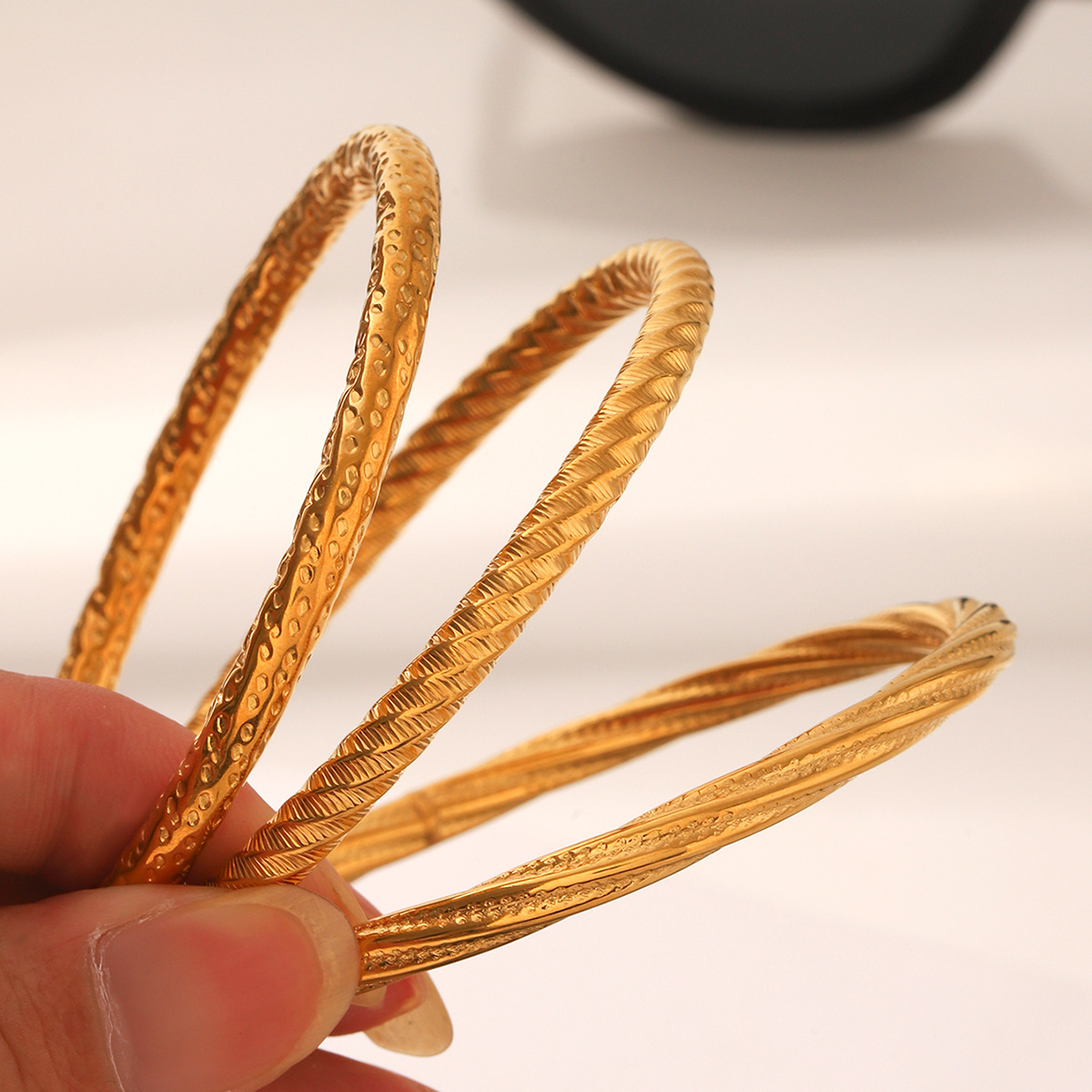 Bracelet en acier inoxydable, beignet, texturé, plus de couleurs à choisir, 3mm, 68mm Environ 8.5 pouce, Vendu par PC