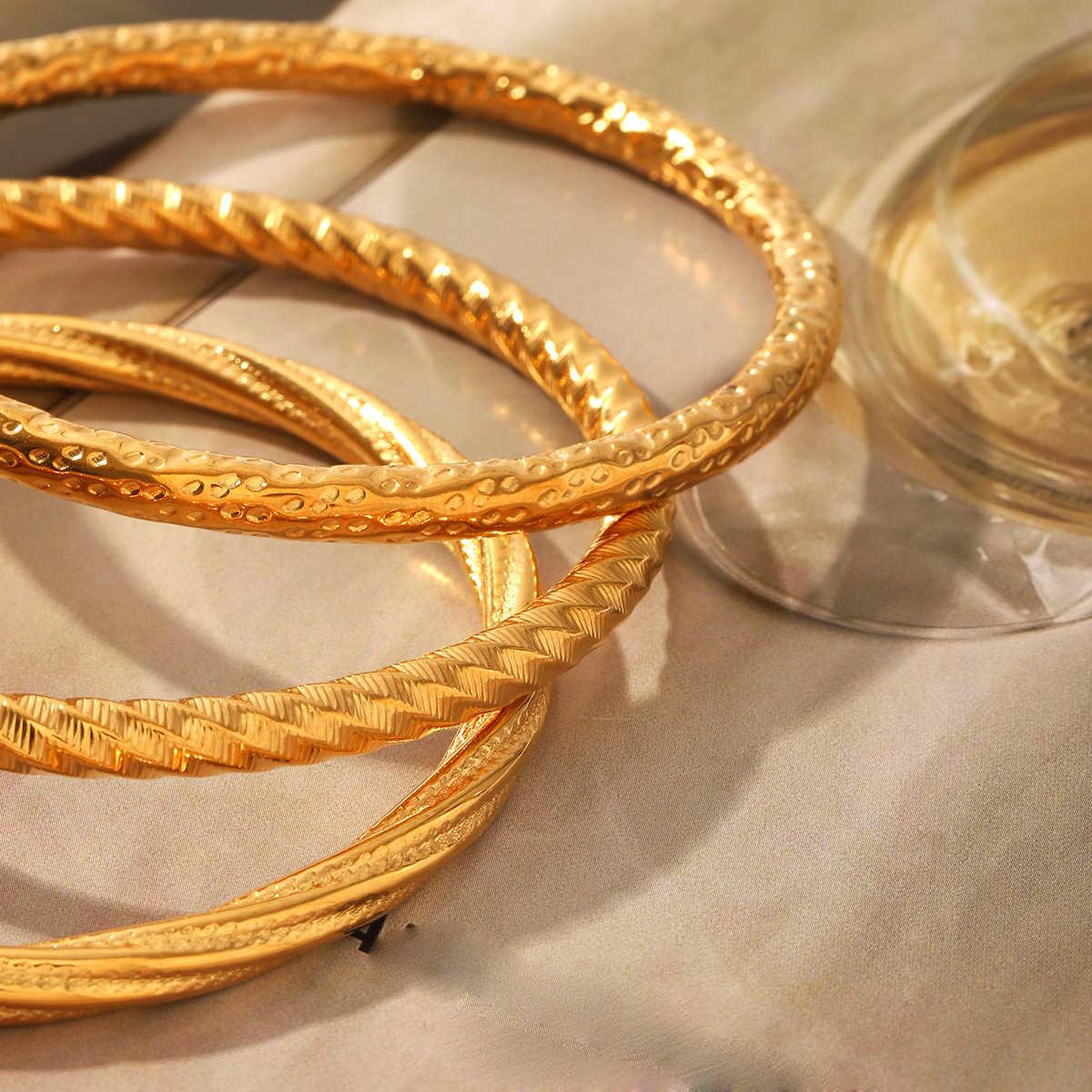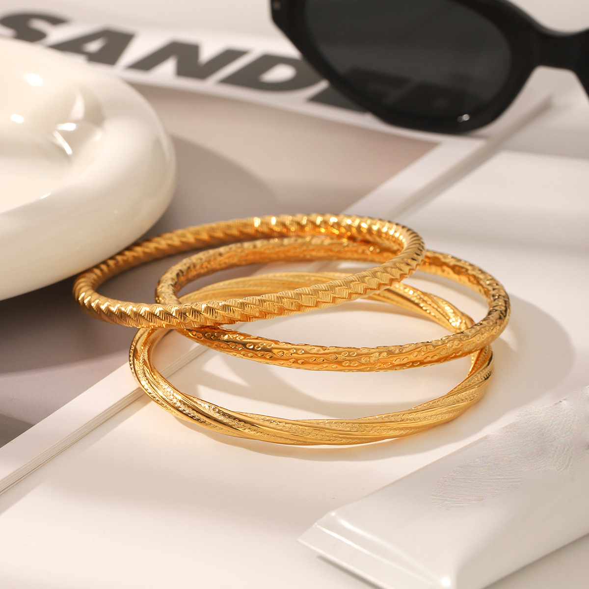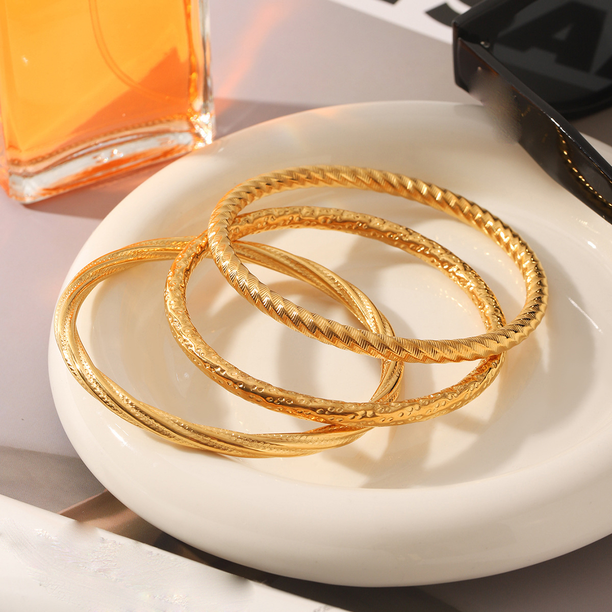 Bracelet en acier inoxydable, beignet, texturé, plus de couleurs à choisir, 3mm, 68mm Environ 8.5 pouce, Vendu par PC