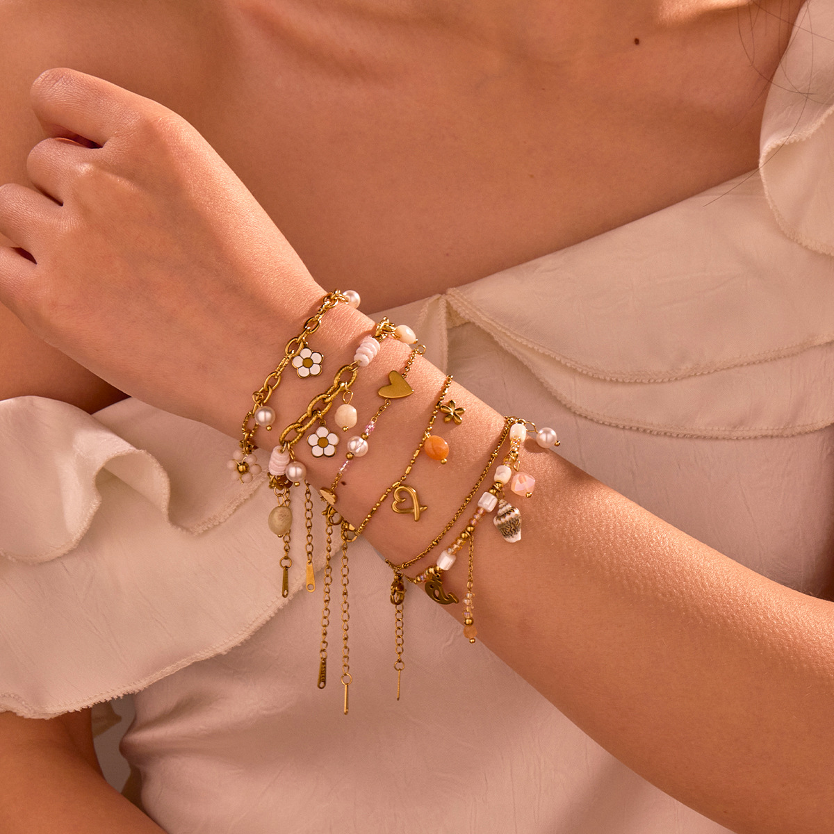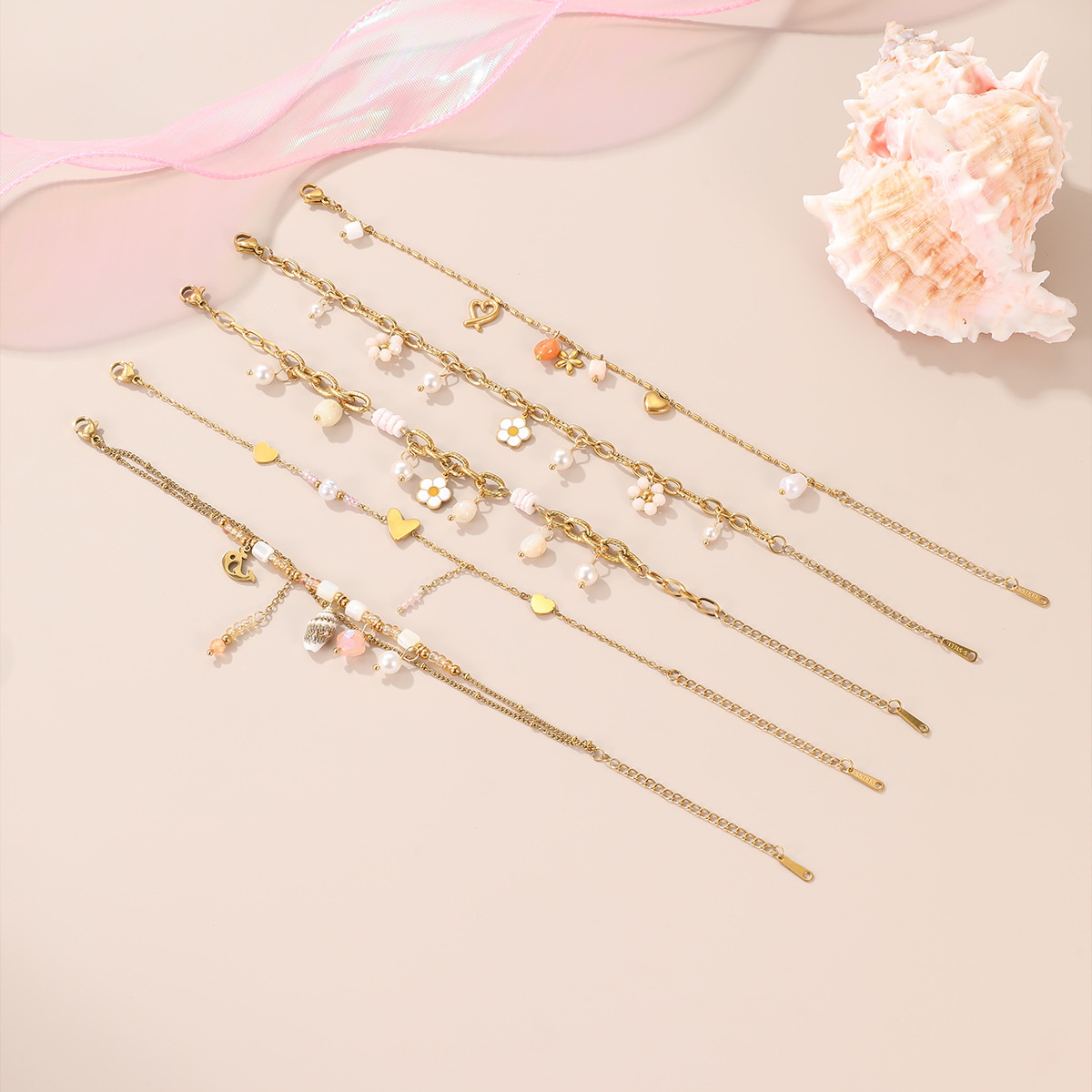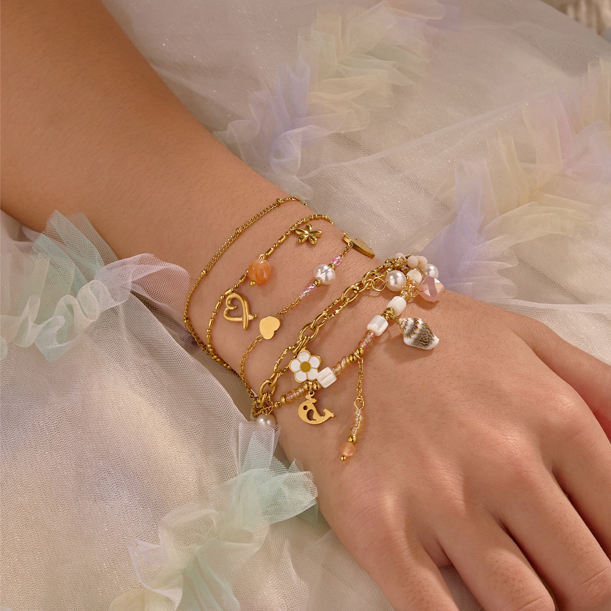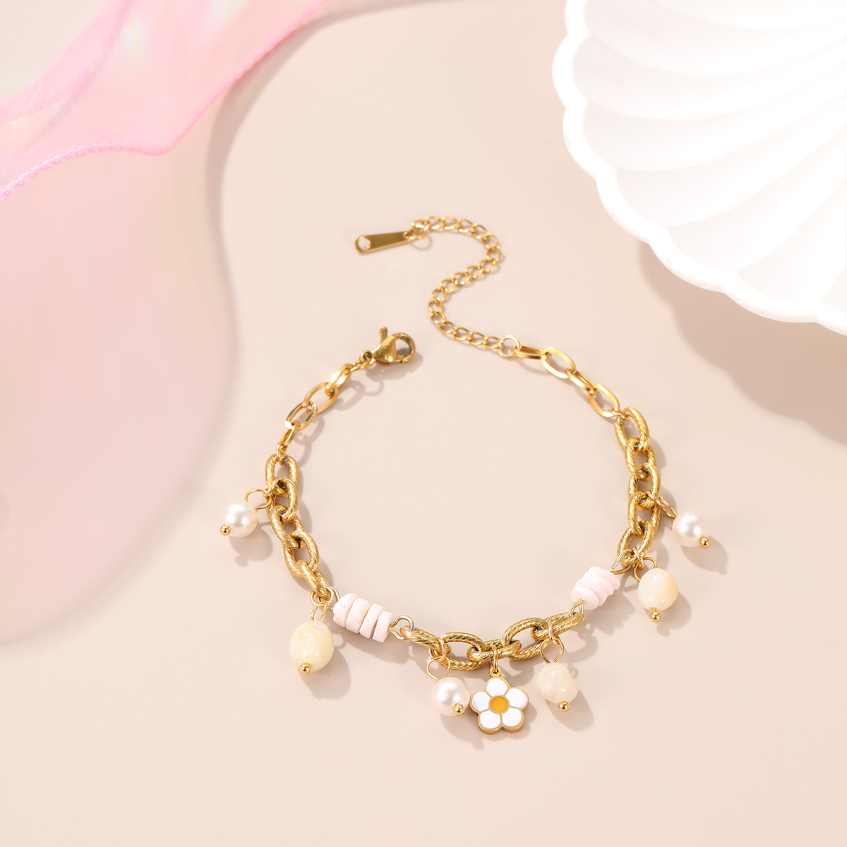 Bracelet en acier inoxydable, Acier inoxydable 304, avec résine & perle de plastique, Plaqué d'or 18K, styles différents pour le choix & pour femme & émail, Vendu par PC
