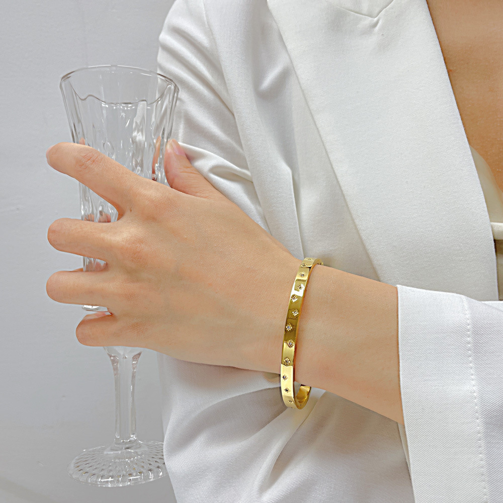 Bracelet en acier inoxydable, Acier inoxydable 304, Placage, bijoux de mode & pavé de micro zircon & pour femme, doré, Vendu par PC