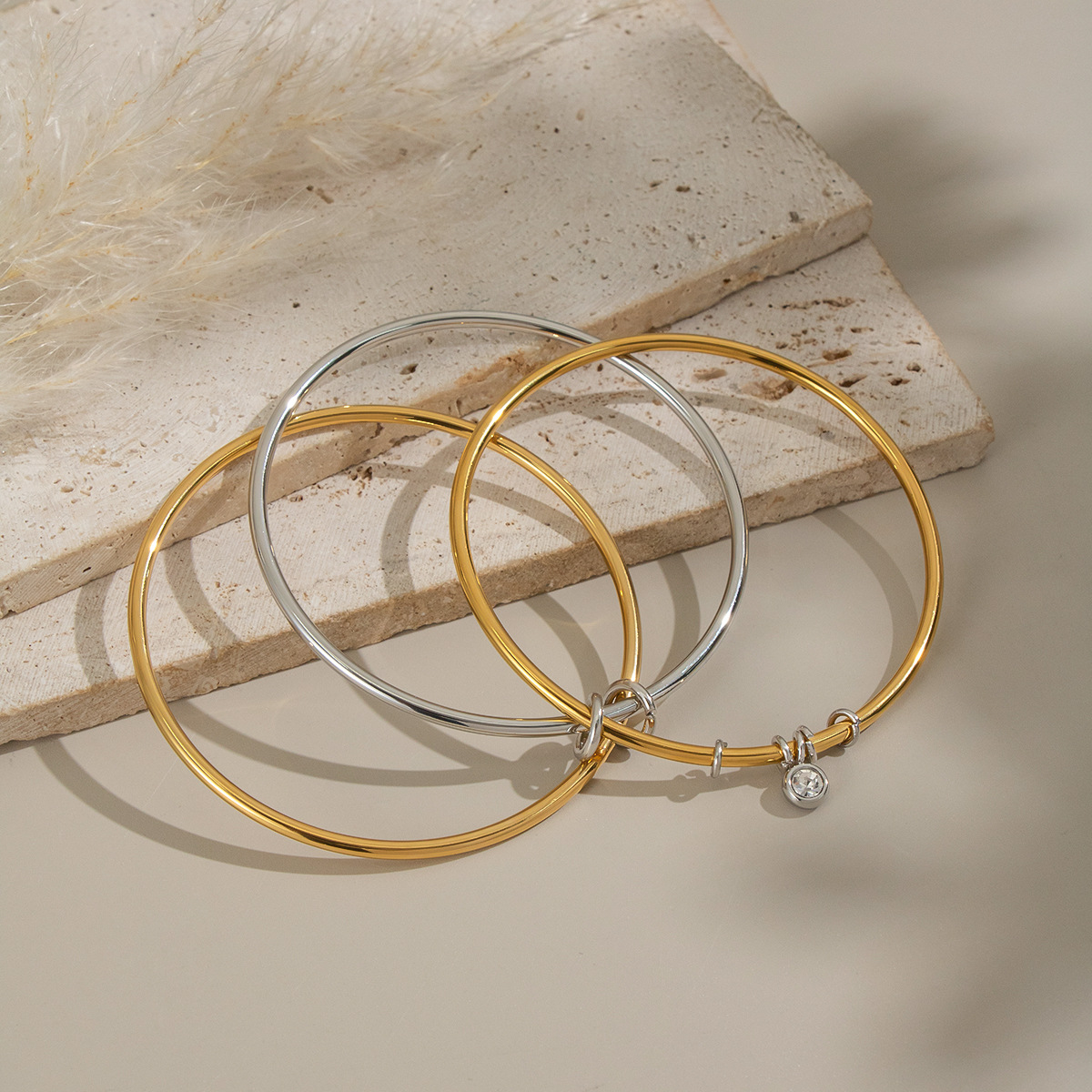 Bracelet en acier inoxydable, Acier inoxydable 304, Placage, trois couches & pavé de micro zircon & pour femme & deux tons, Vendu par PC