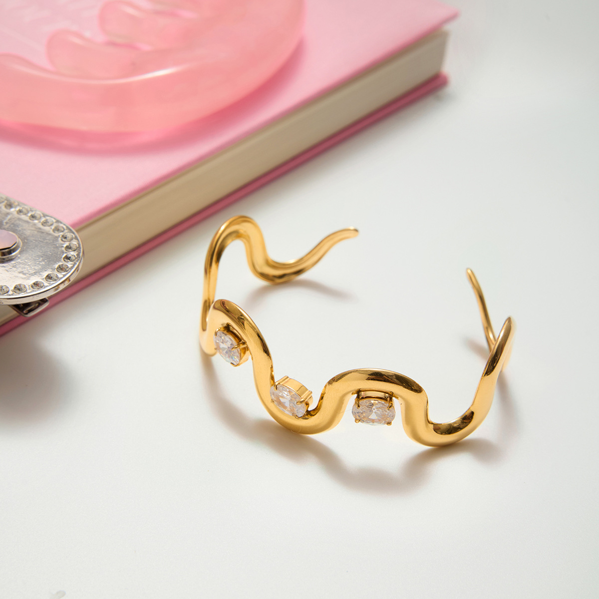 Bracelet en acier inoxydable, Acier inoxydable 304, Plaqué or 18K, bijoux de mode & pavé de micro zircon & pour femme, Vendu par PC