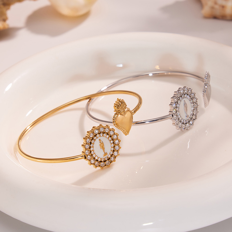 Bracelet en acier inoxydable, coeur, couleur originale Diamètre inté Environ Environ 6.5 pouce, Vendu par PC