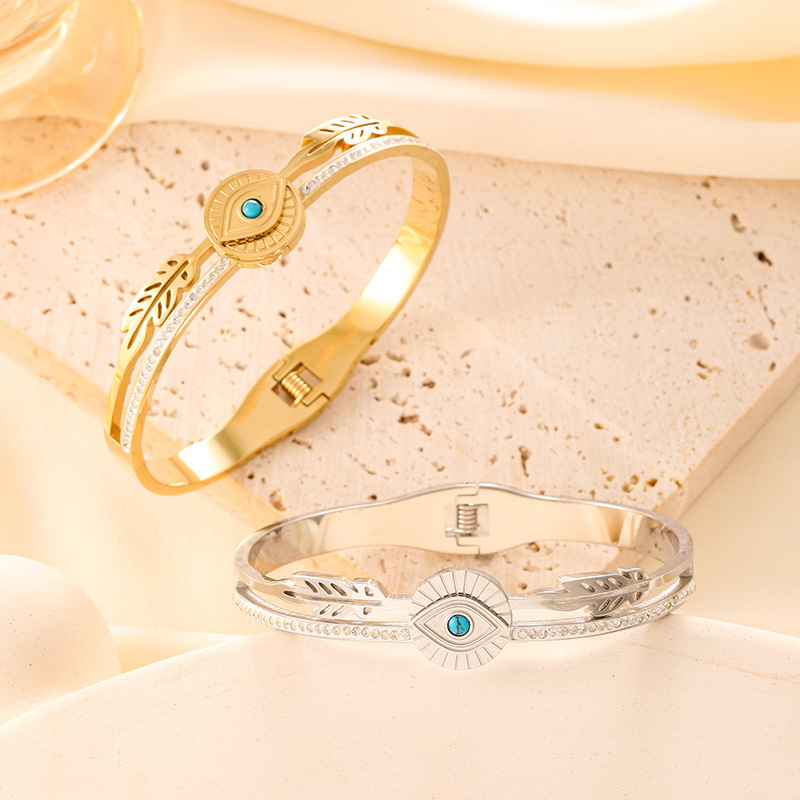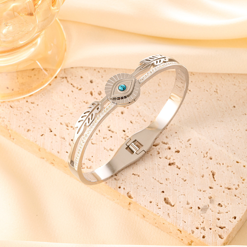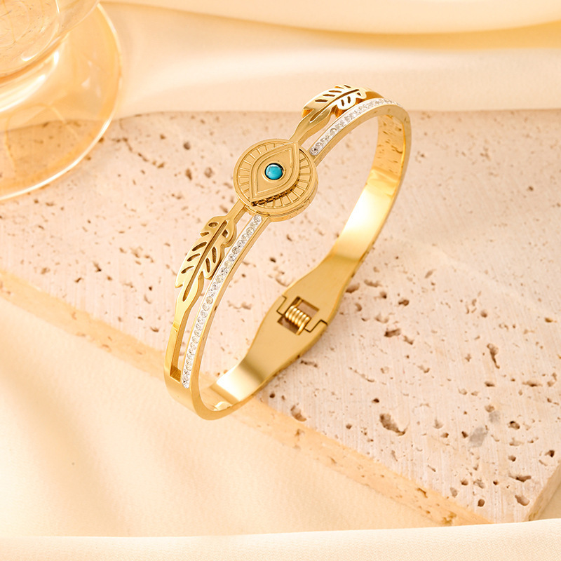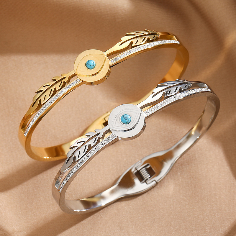 Bracelet en acier inoxydable, Acier inoxydable 304, avec turquoise, Placage, pour femme & avec strass & creux, plus de couleurs à choisir, Inner diameter :60mm, Vendu par PC
