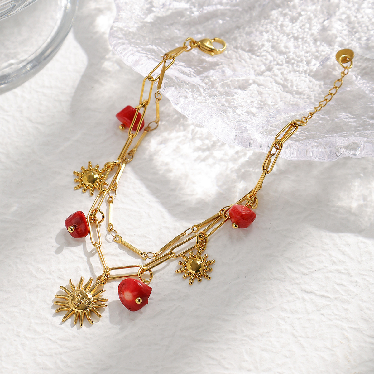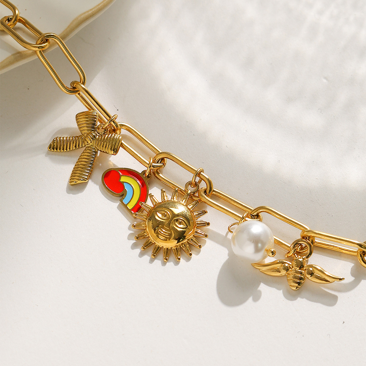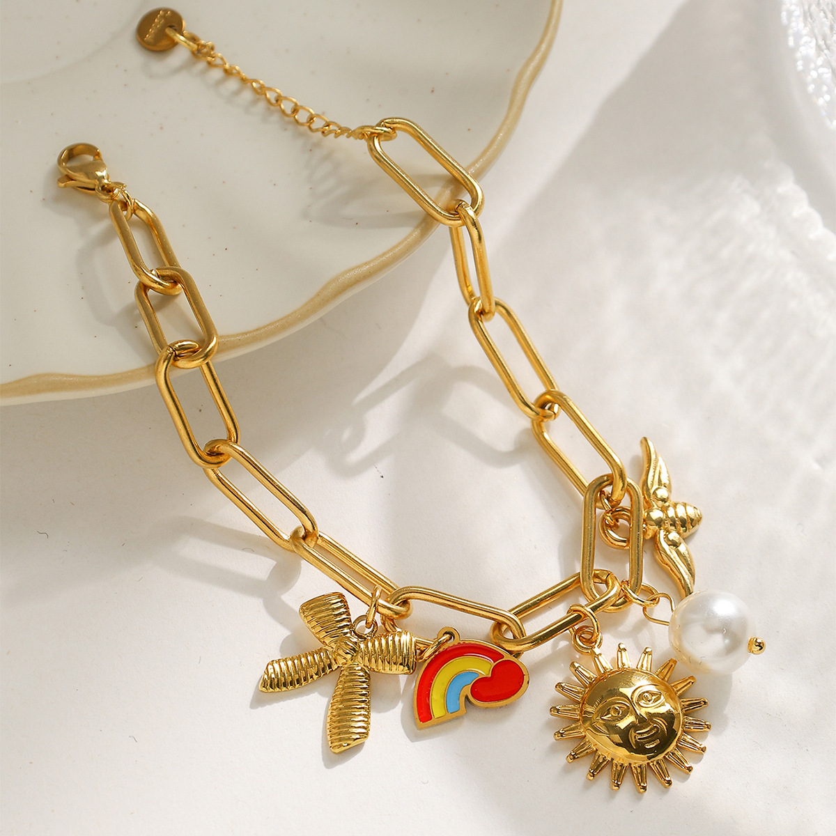 Bracelet en acier inoxydable, Acier inoxydable 304, avec perle de plastique, Placage, styles différents pour le choix & pour femme & émail, doré, Vendu par PC