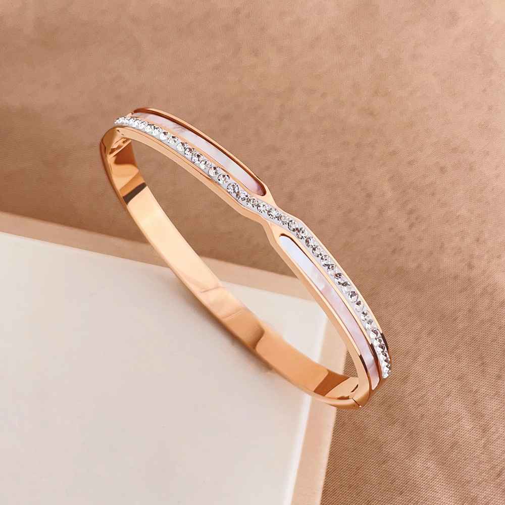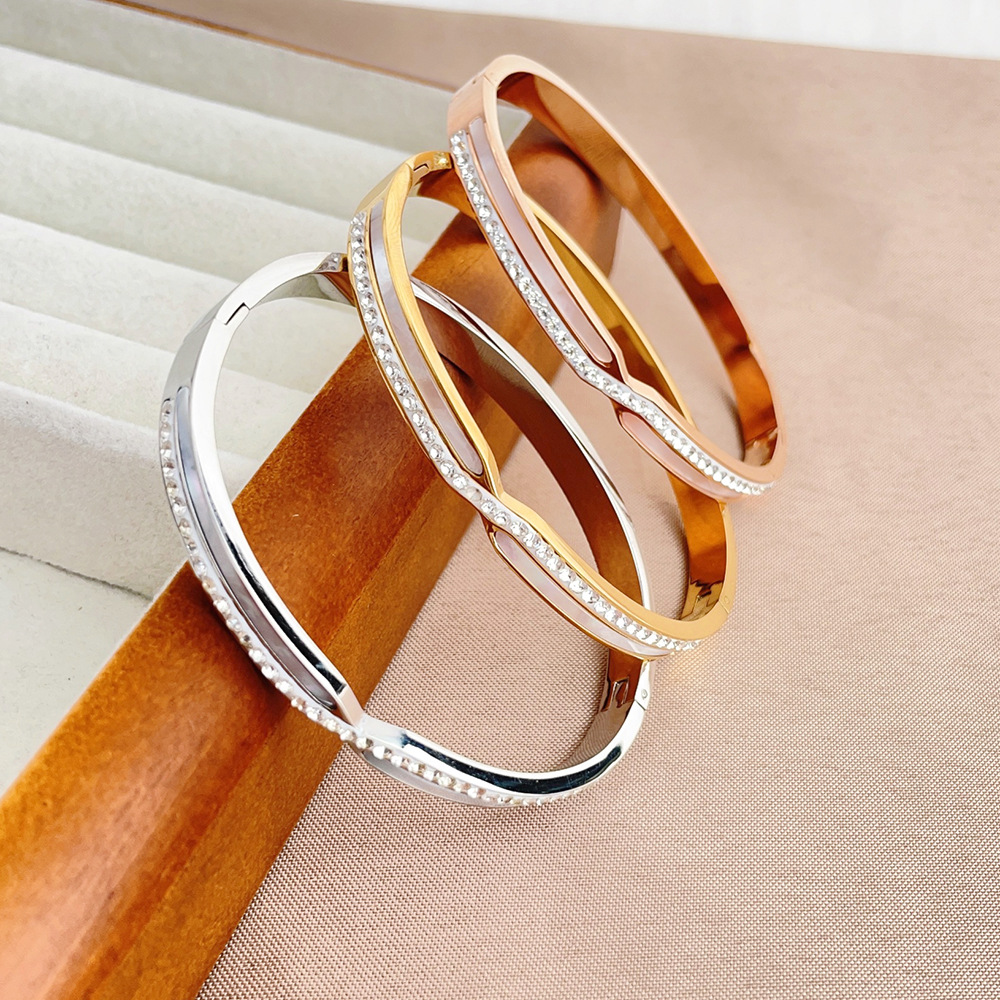 Bracelet en acier inoxydable, Acier inoxydable 304, avec coquille blanche, Placage, bijoux de mode & pour femme & avec strass, plus de couleurs à choisir, Vendu par PC