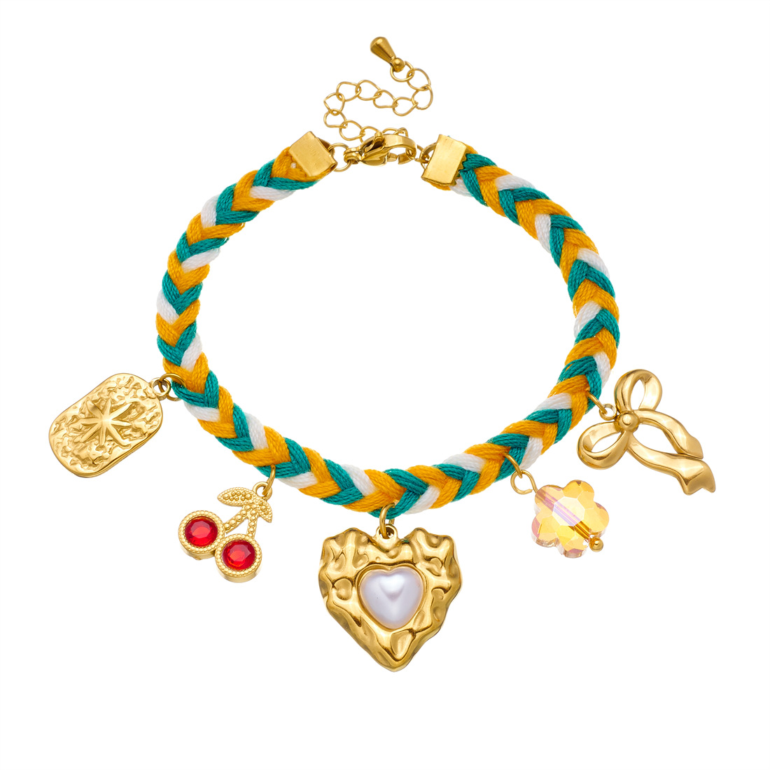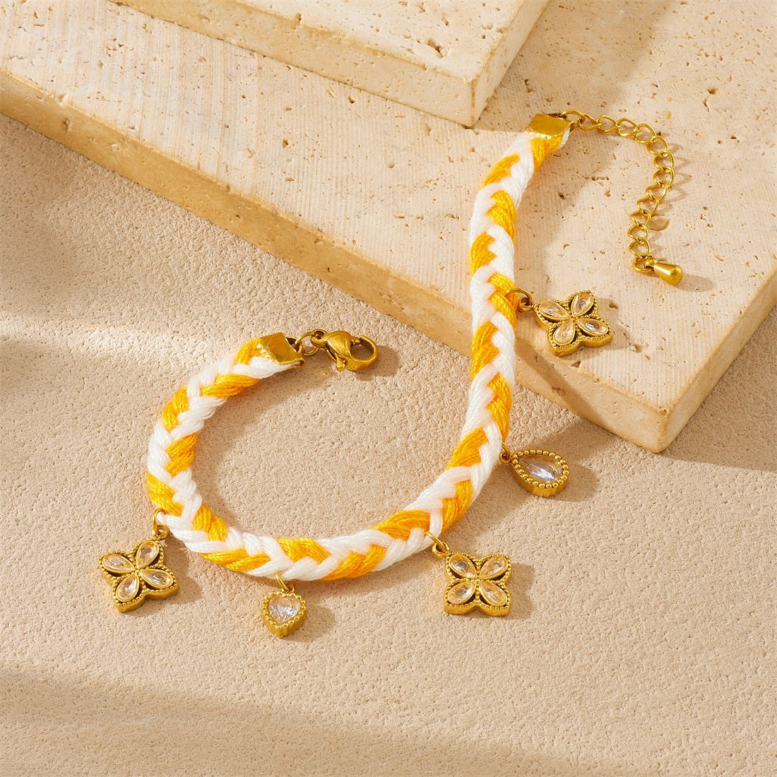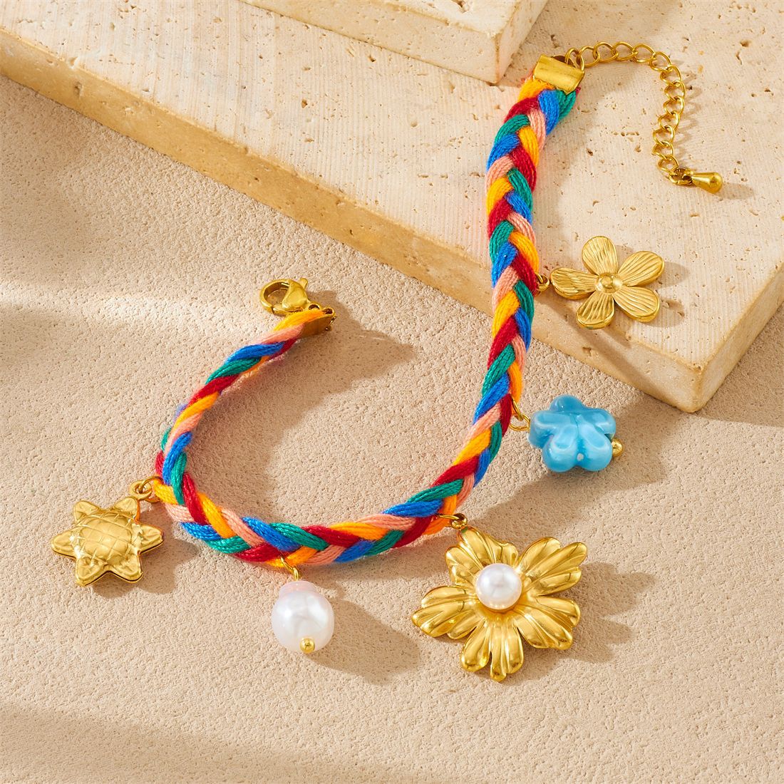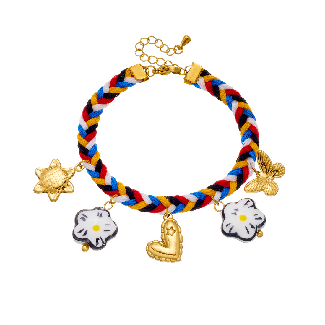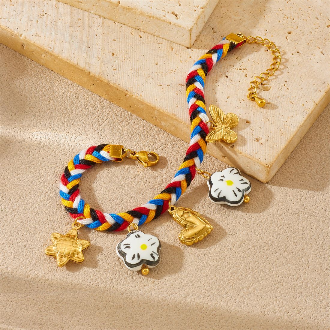 Bracelet en acier inoxydable, Acier inoxydable 304, avec Fil de coton & porcelaine, Placage de couleur d'or, fait à la main & styles différents pour le choix & pour femme, Vendu par PC