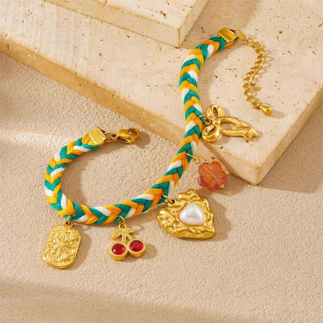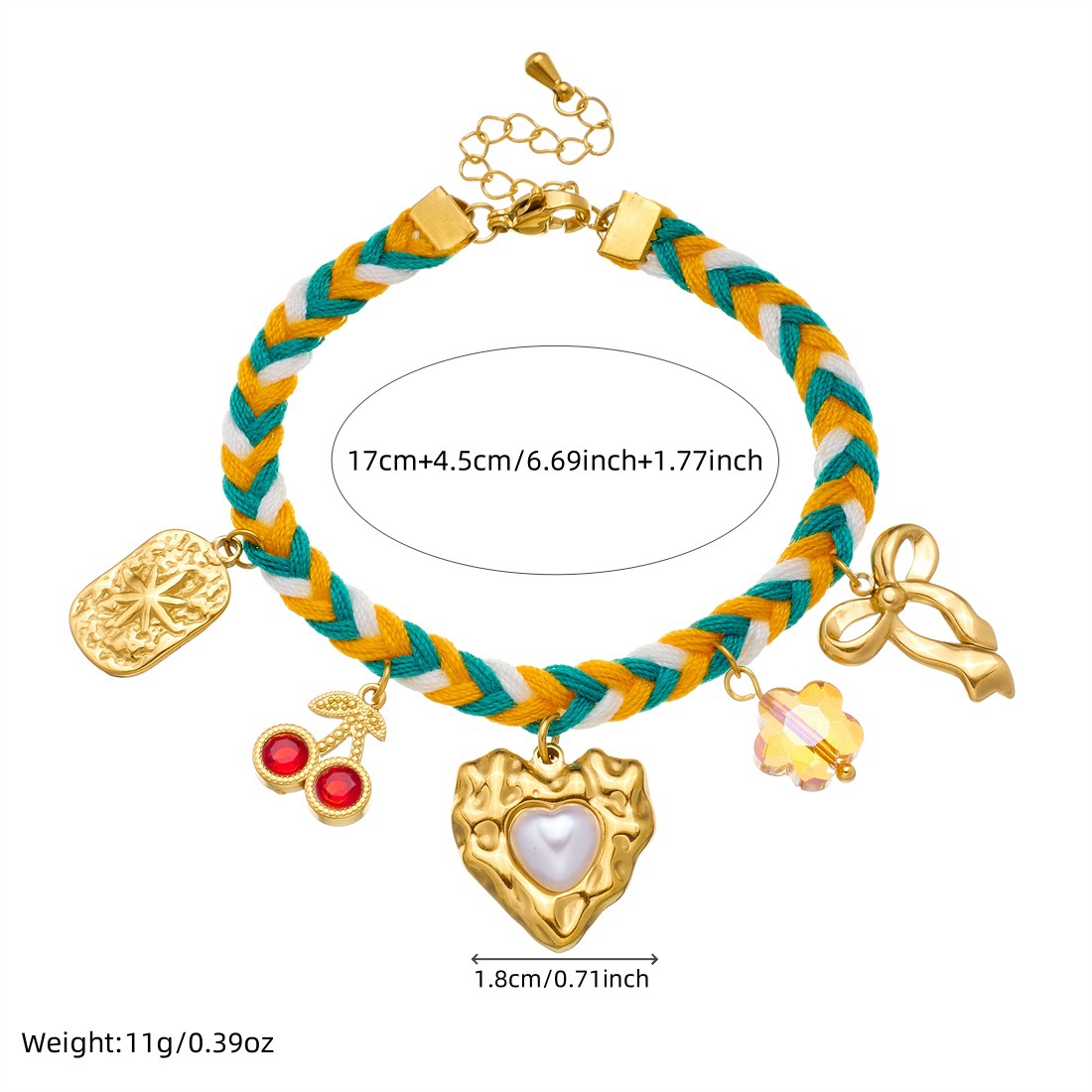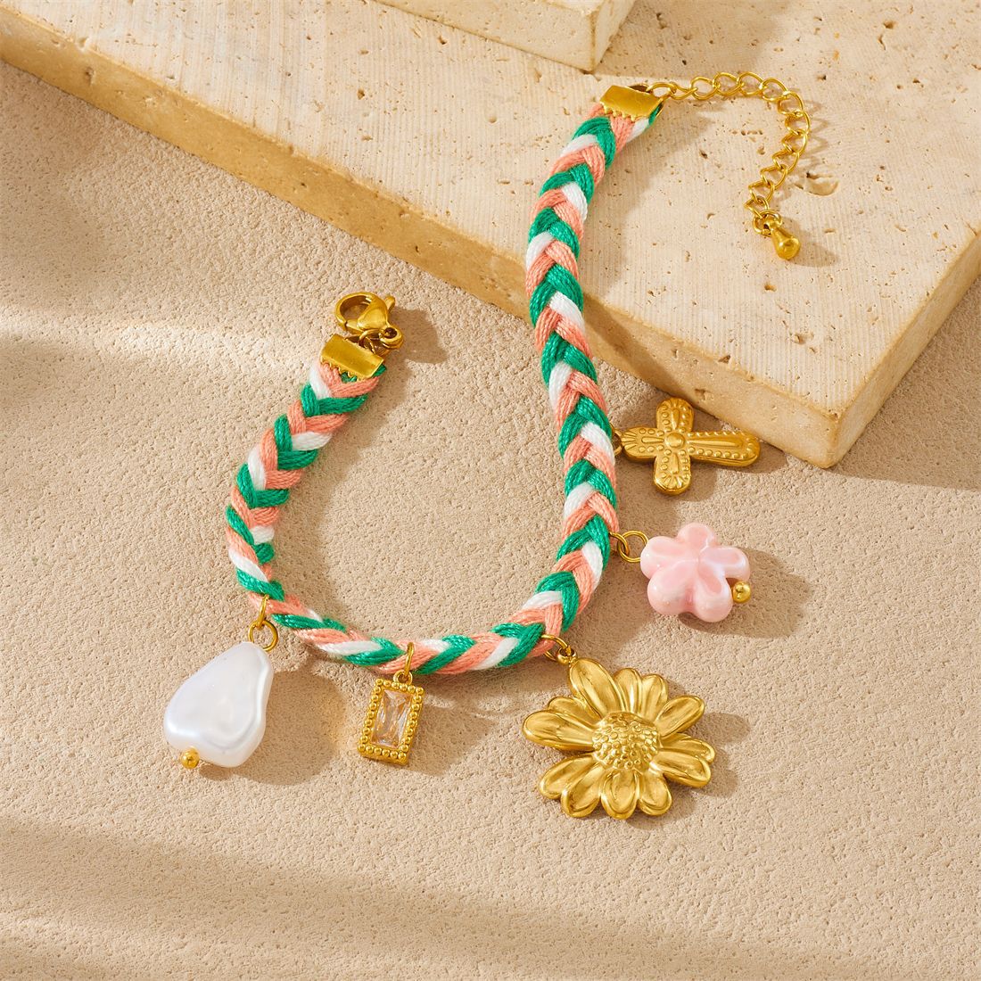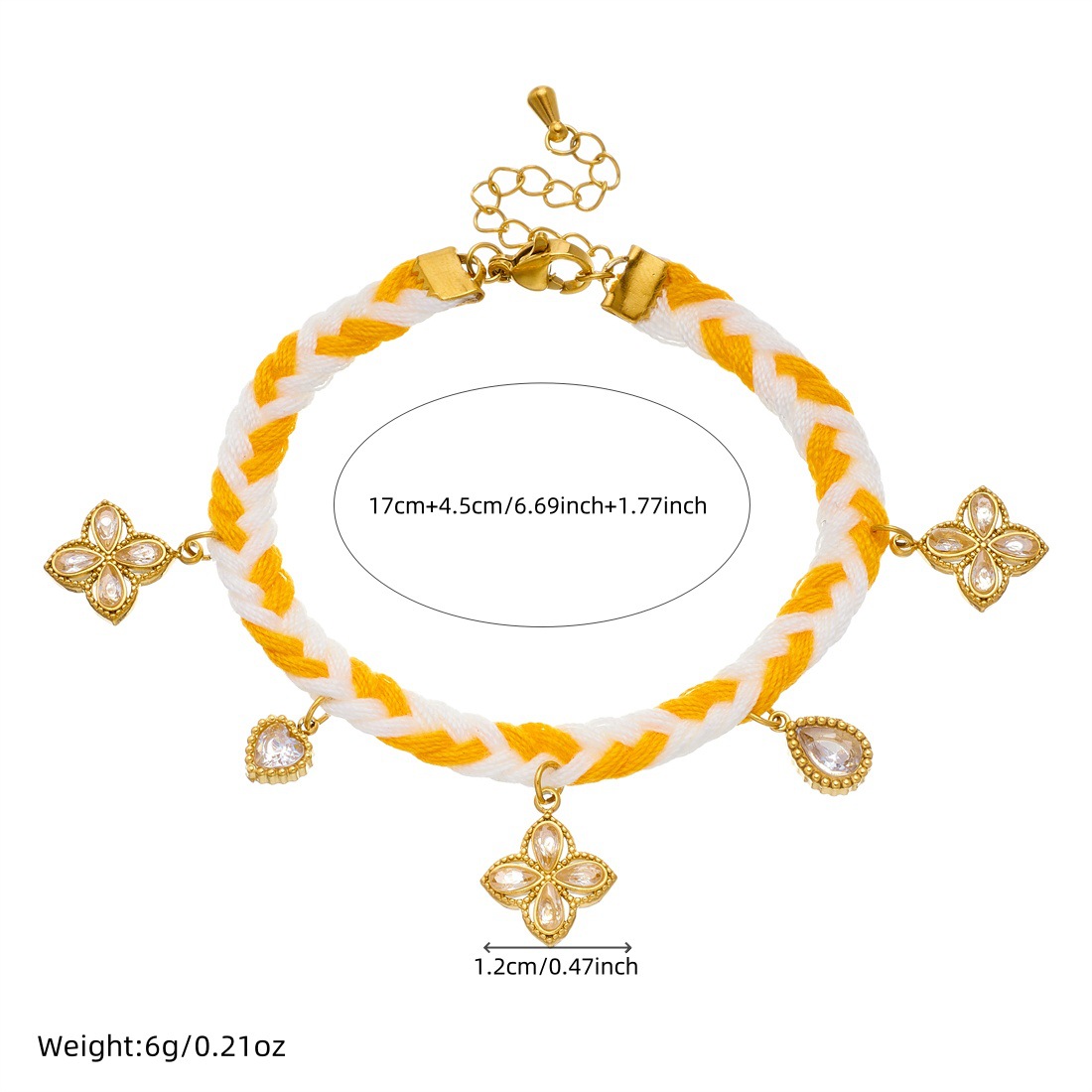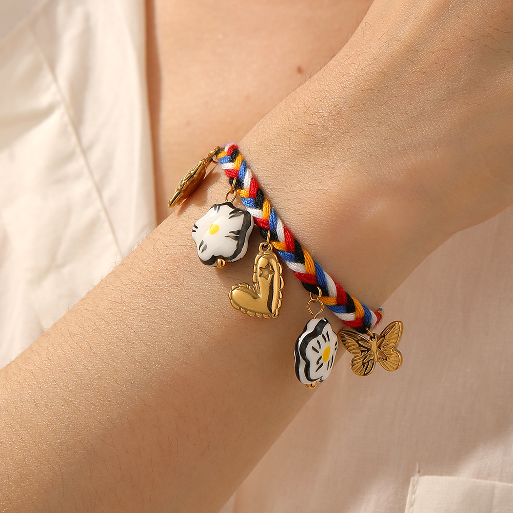 Bracelet en acier inoxydable, Acier inoxydable 304, avec Fil de coton & porcelaine, Placage de couleur d'or, fait à la main & styles différents pour le choix & pour femme, Vendu par PC