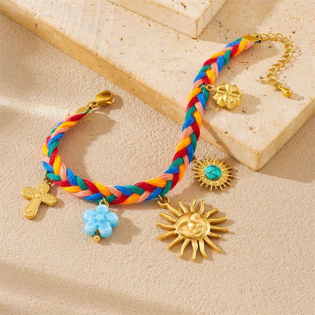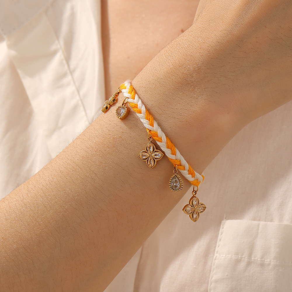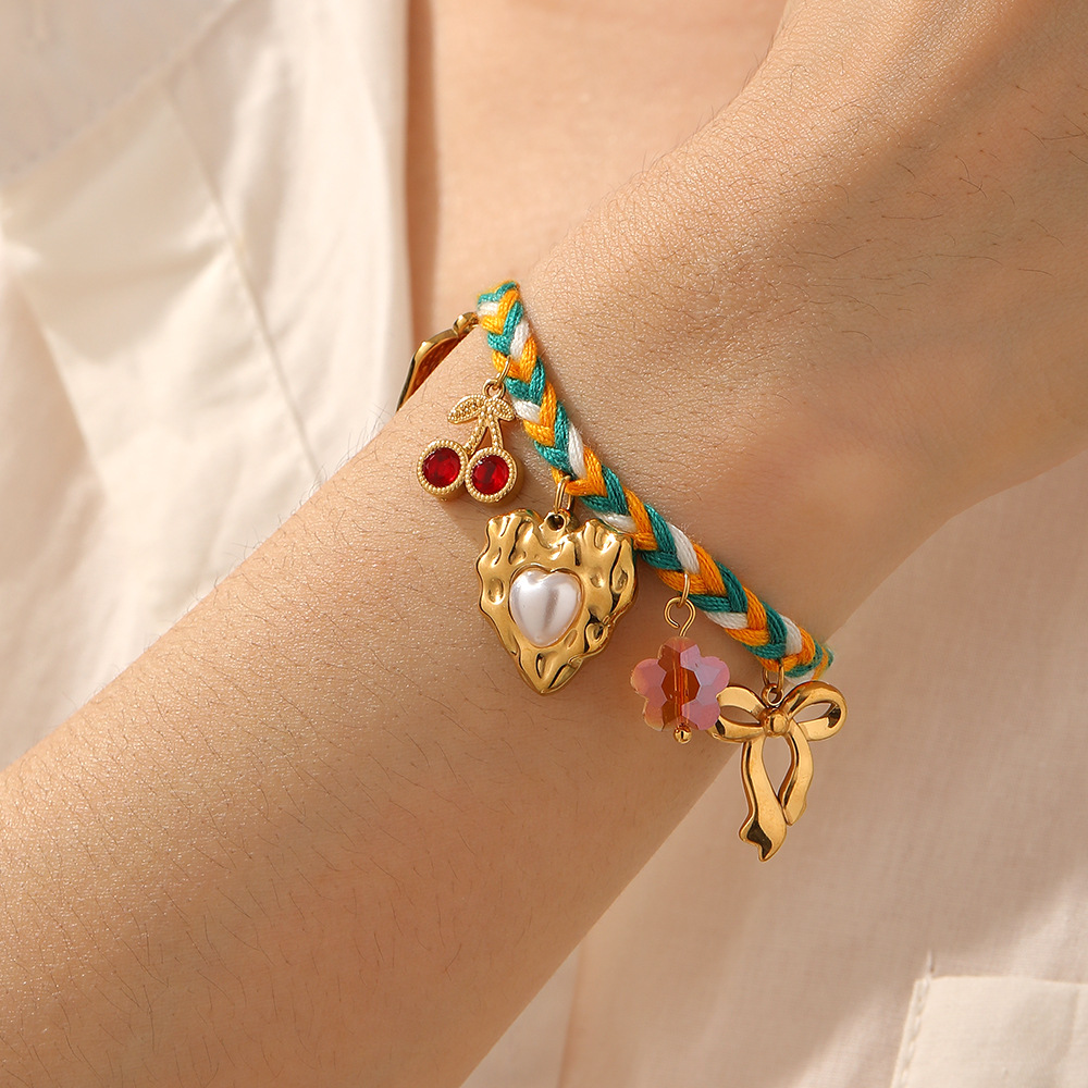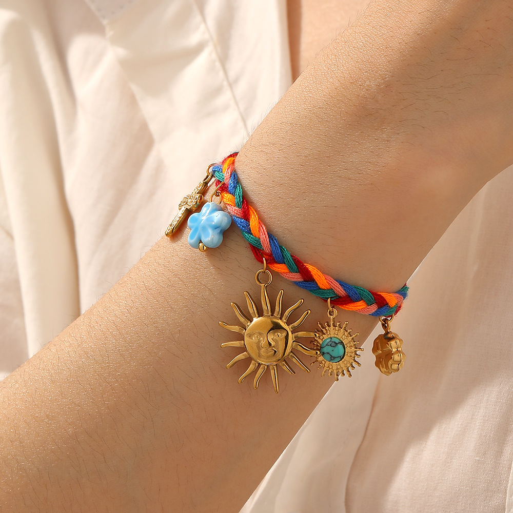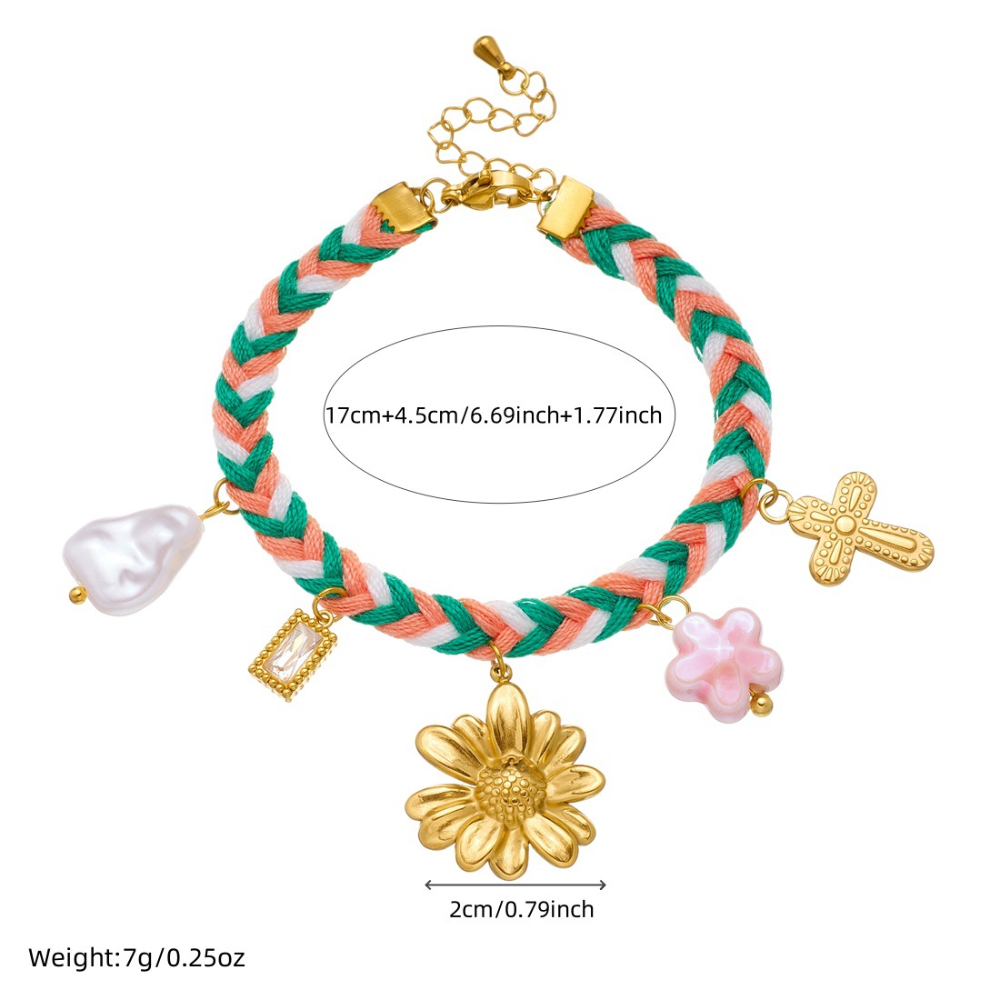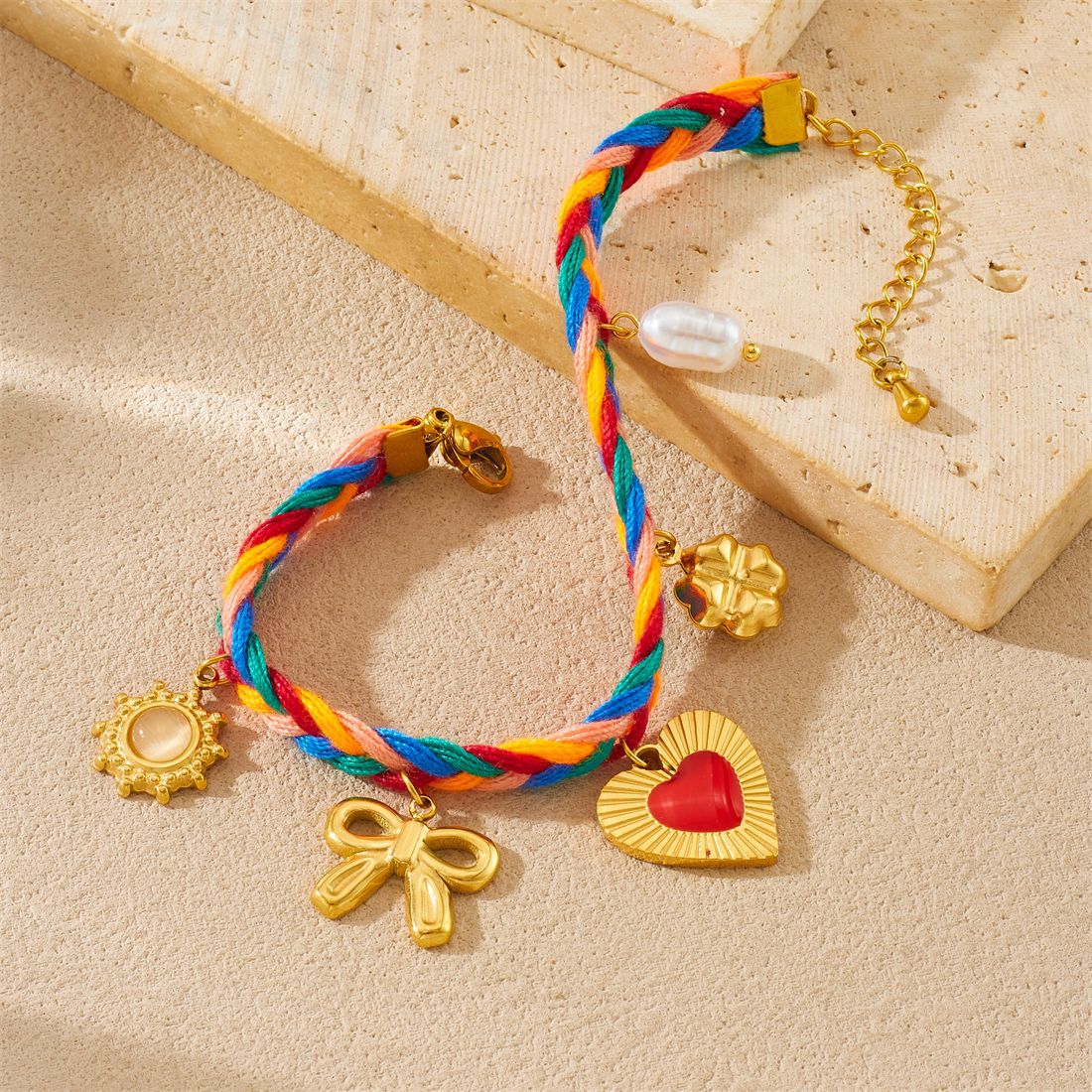 Bracelet en acier inoxydable, Acier inoxydable 304, avec Fil de coton & porcelaine, Placage de couleur d'or, fait à la main & styles différents pour le choix & pour femme, Vendu par PC