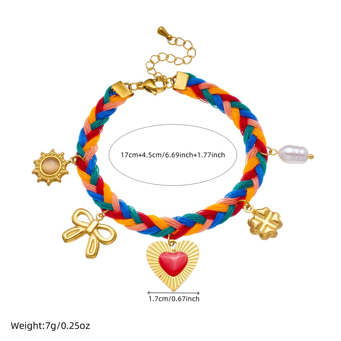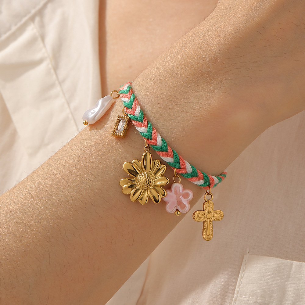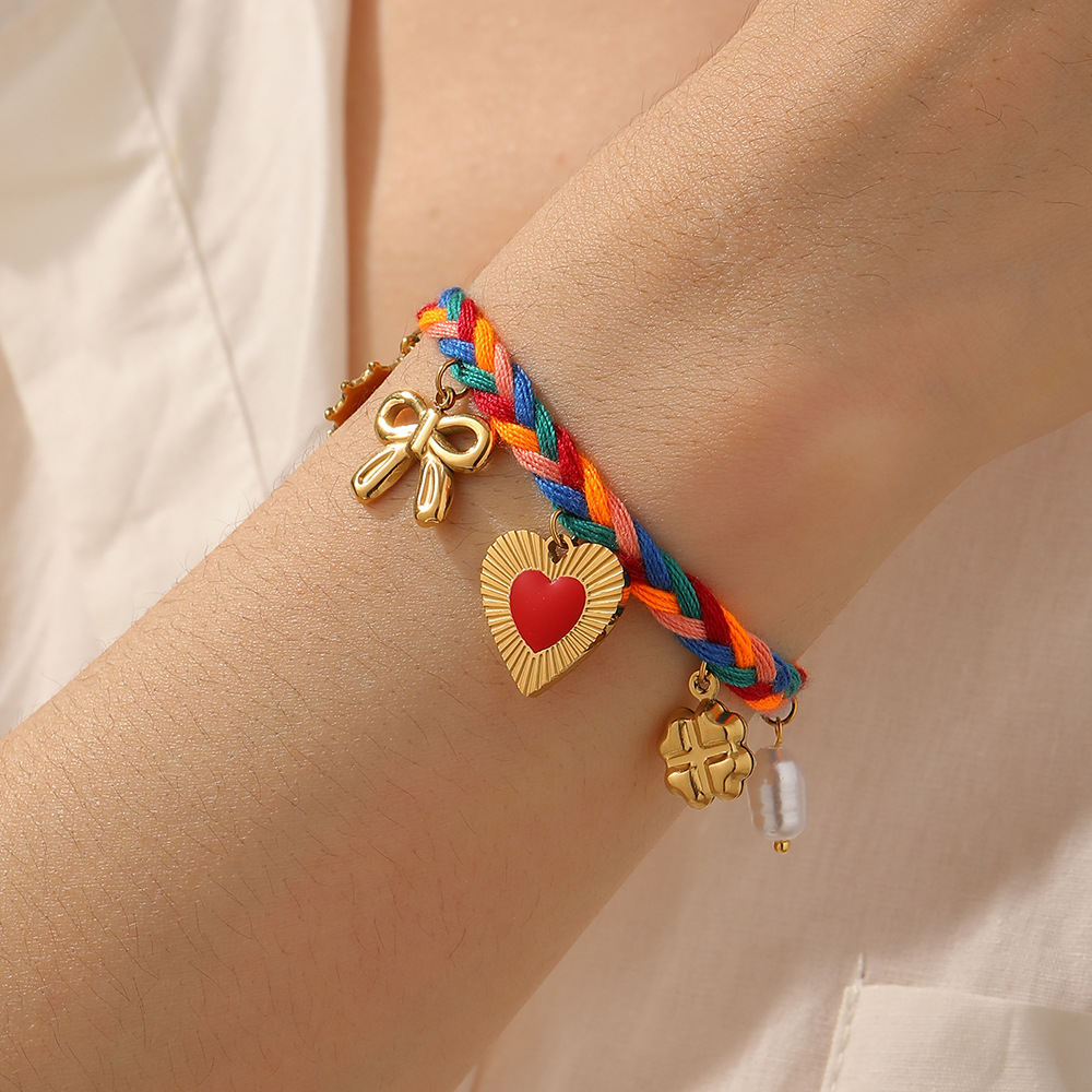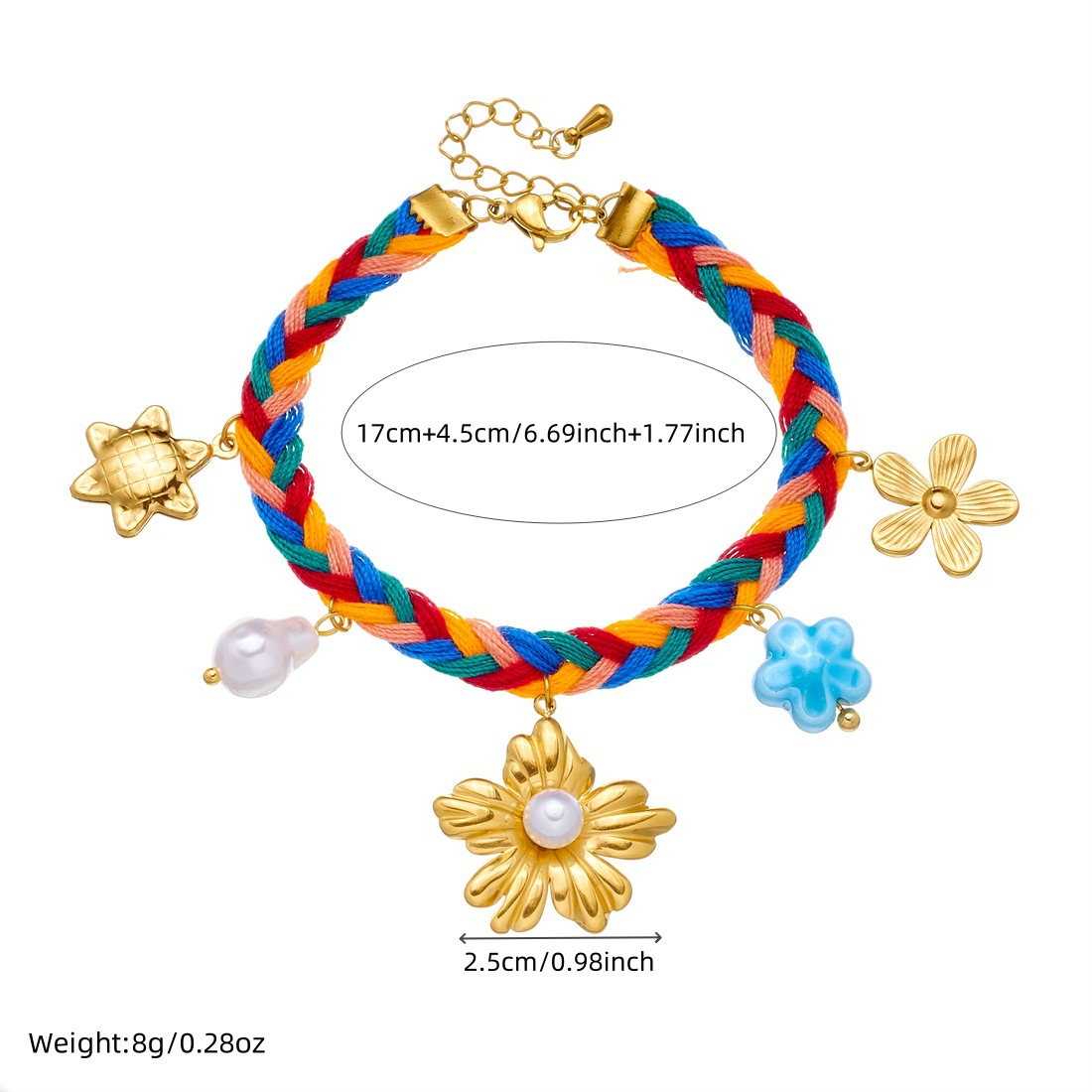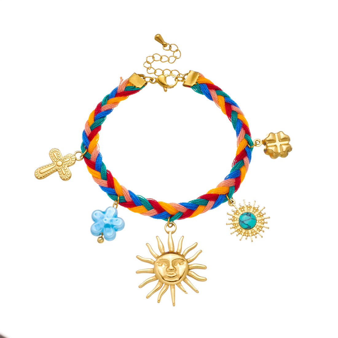 Bracelet en acier inoxydable, Acier inoxydable 304, avec Fil de coton & porcelaine, Placage de couleur d'or, fait à la main & styles différents pour le choix & pour femme, Vendu par PC