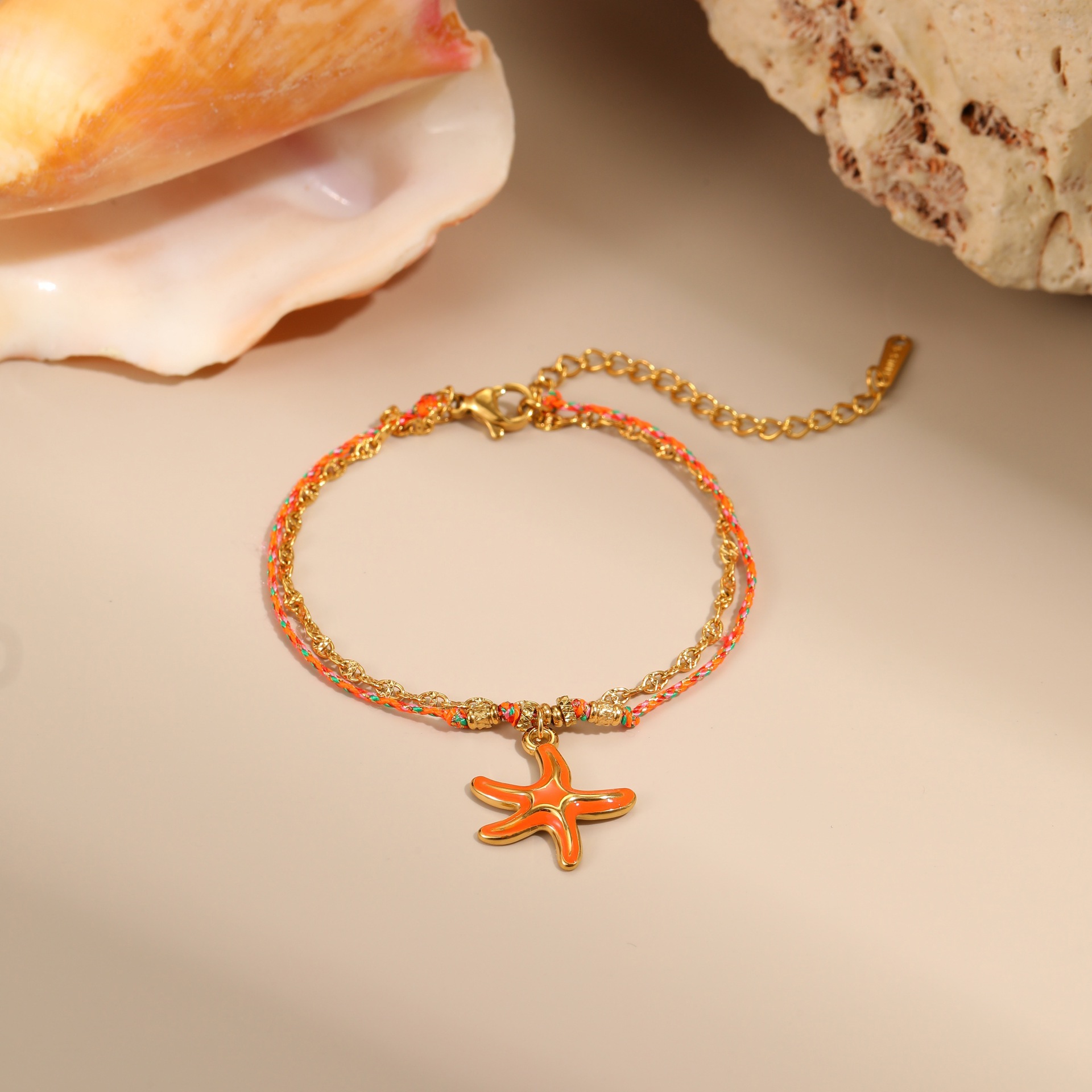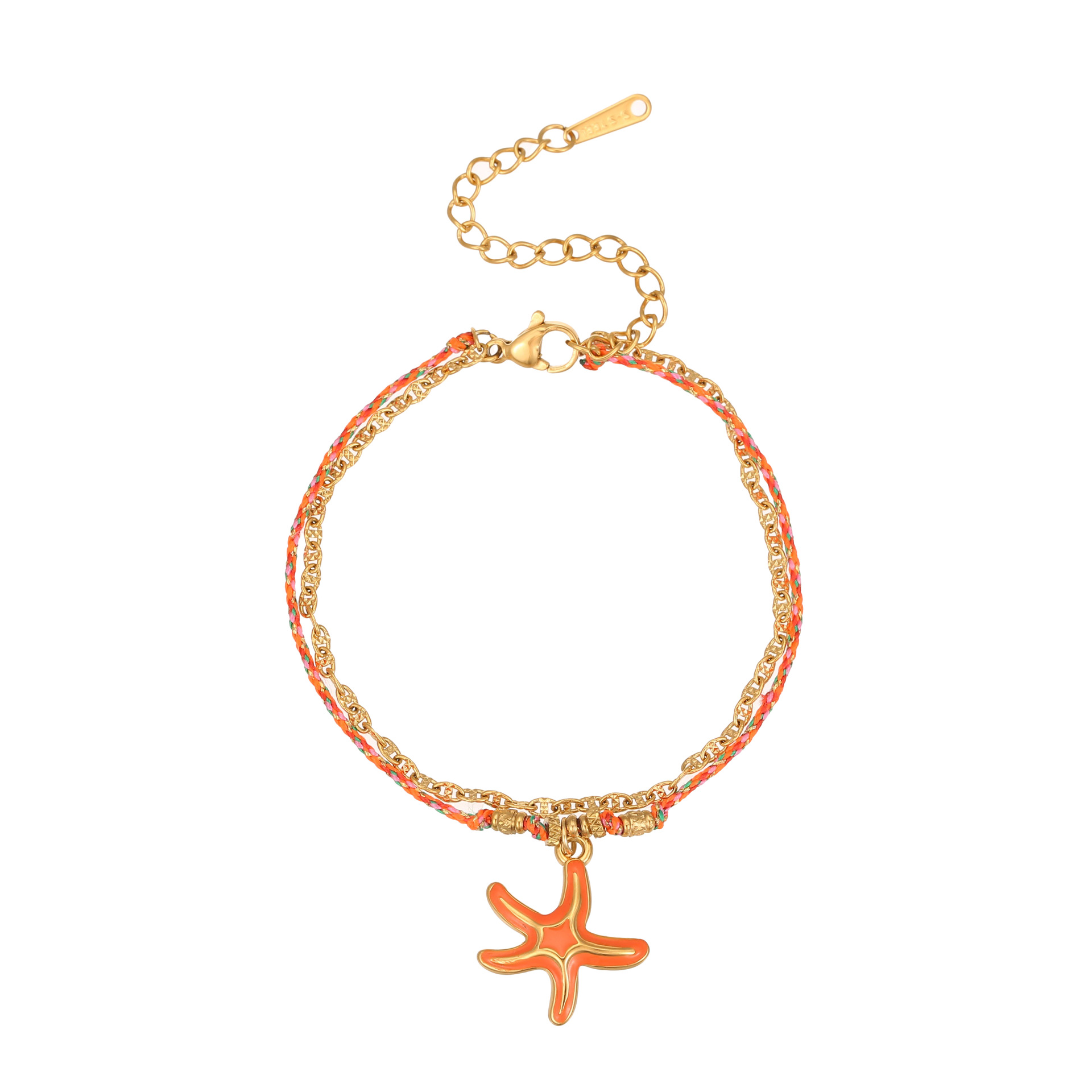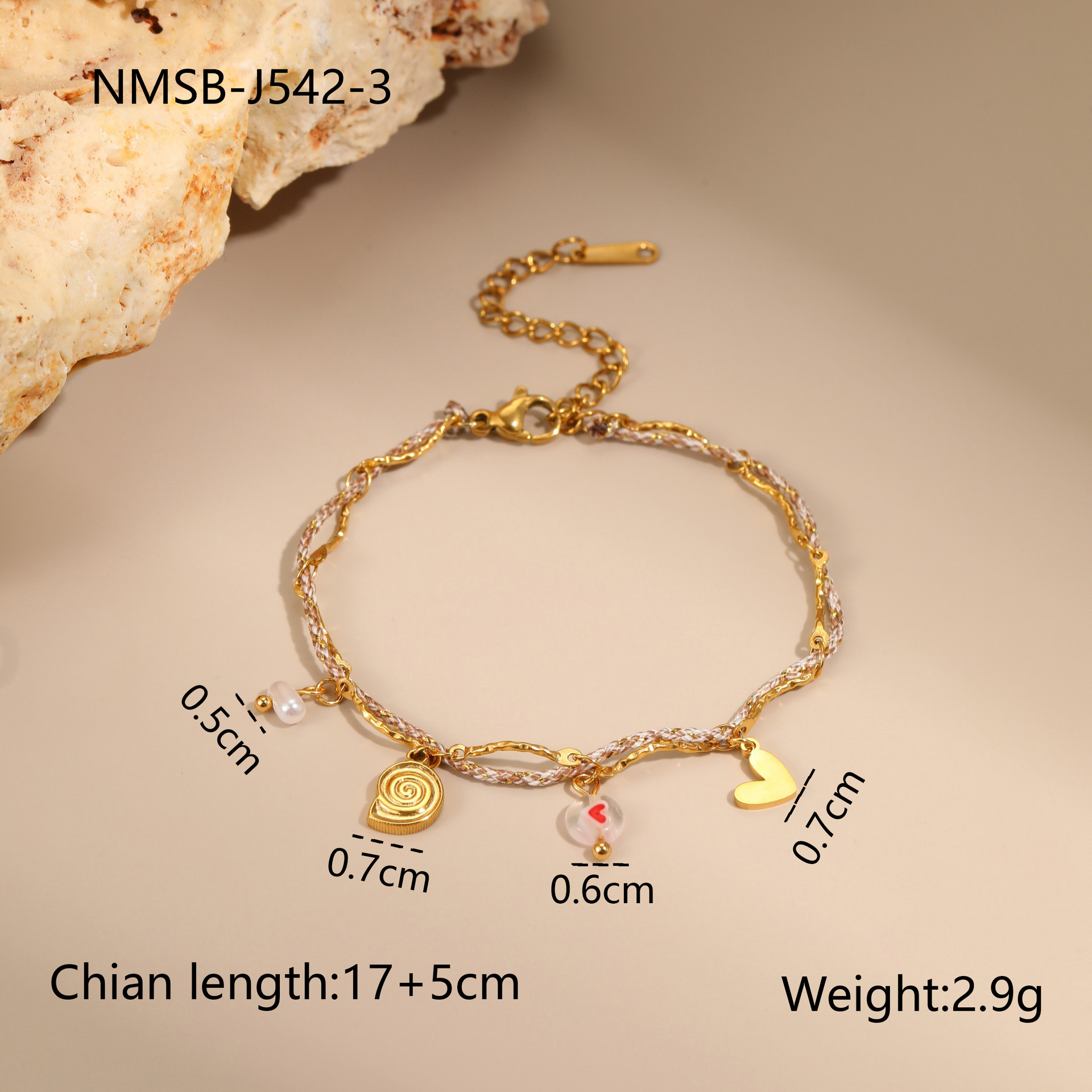 Bracelet en acier inoxydable, Acier inoxydable 304, avec Fil de coton & perle de plastique & Acrylique, Placage de couleur d'or, bijoux de mode & émail, plus de couleurs à choisir, Vendu par PC