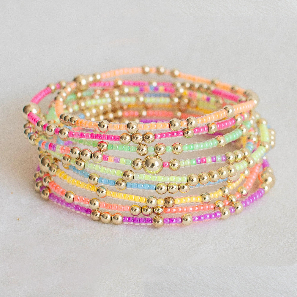 Bracelets Bijoux en verre, perles de rocaille en verre, avec acier inoxydable, 3 brins, plus de couleurs à choisir, 2- Environ 9.5 pouce, Vendu par PC