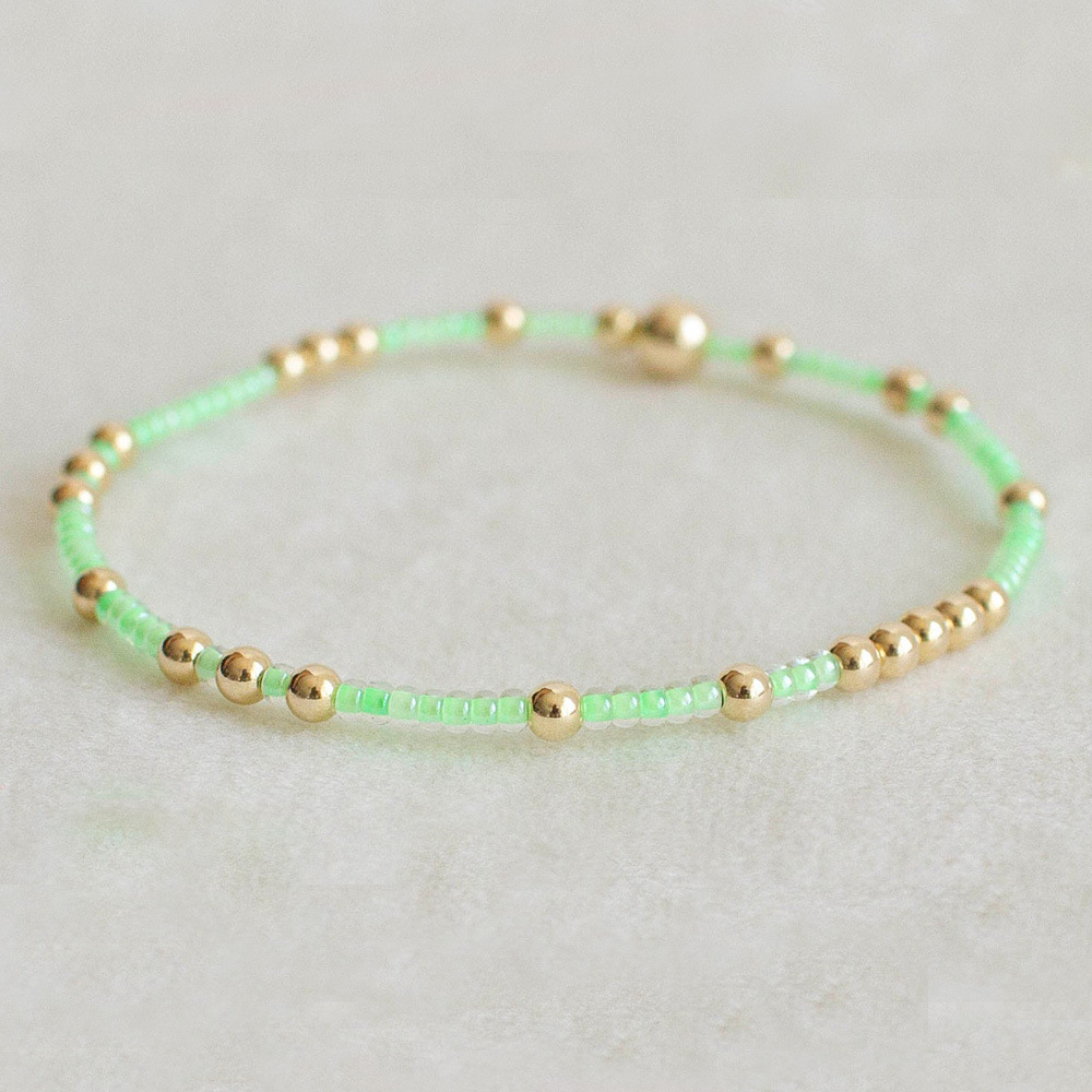 Bracelets Bijoux en verre, perles de rocaille en verre, avec fer, vert pouce, Vendu par brin