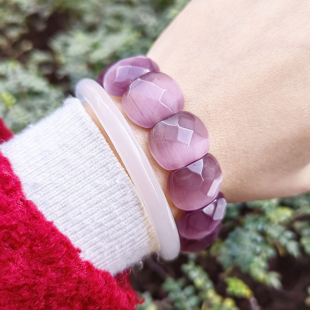 Bracelets Chatoyant, Oeil de chat, pour femme, violet, 14x17mm, Longueur:18 cm, Vendu par PC