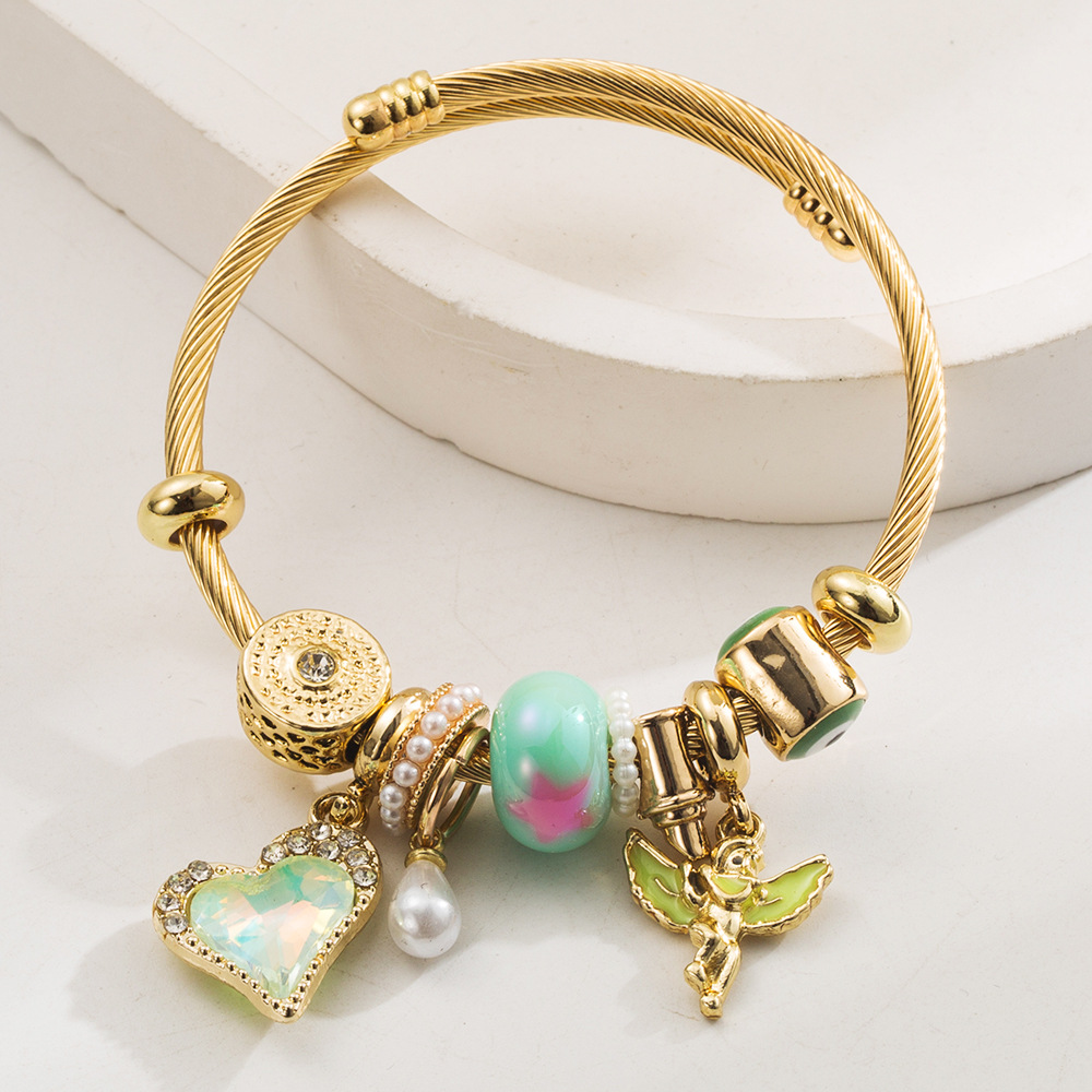 Bracelets European acier inoxydable, alliage de zinc, avec perle de plastique, Placage de couleur d'or, bijoux de mode & émail & avec strass, plus de couleurs à choisir, Vendu par PC