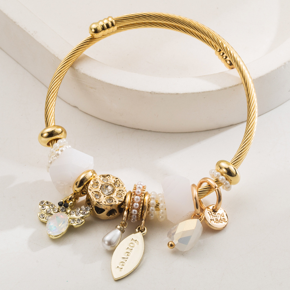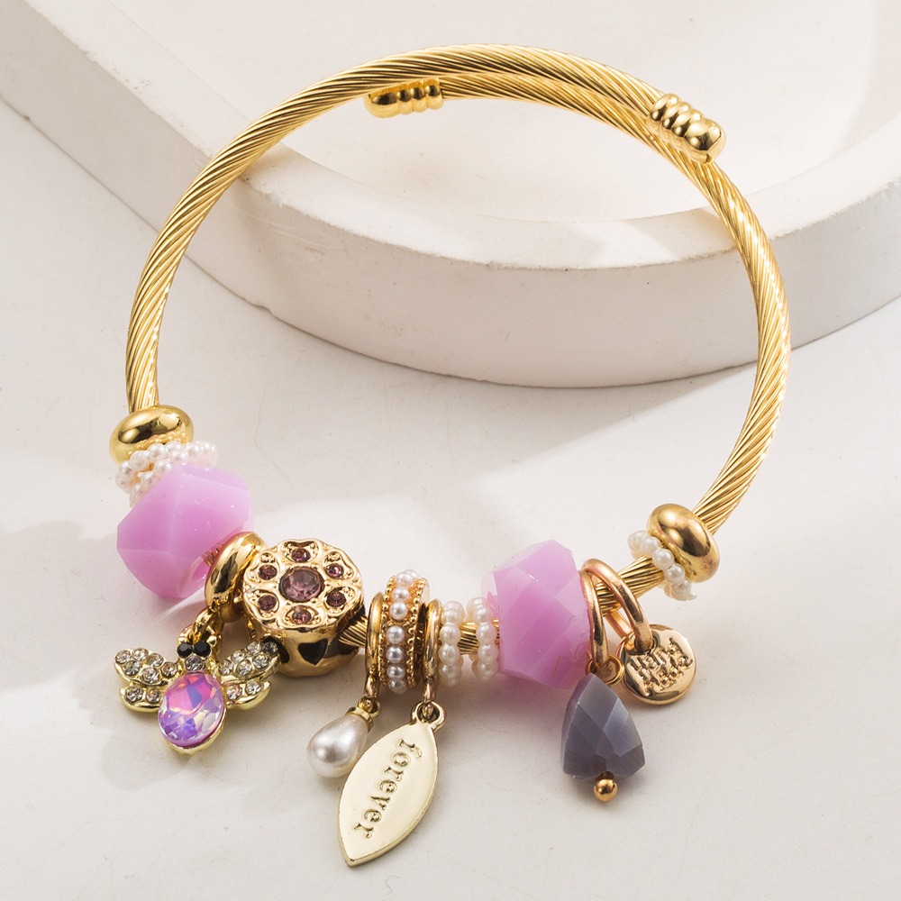 Bracelets European acier inoxydable, alliage de zinc, avec perle de plastique & Acier inoxydable 304, Placage de couleur d'or, bijoux de mode & émail & avec strass, plus de couleurs à choisir, Vendu par PC