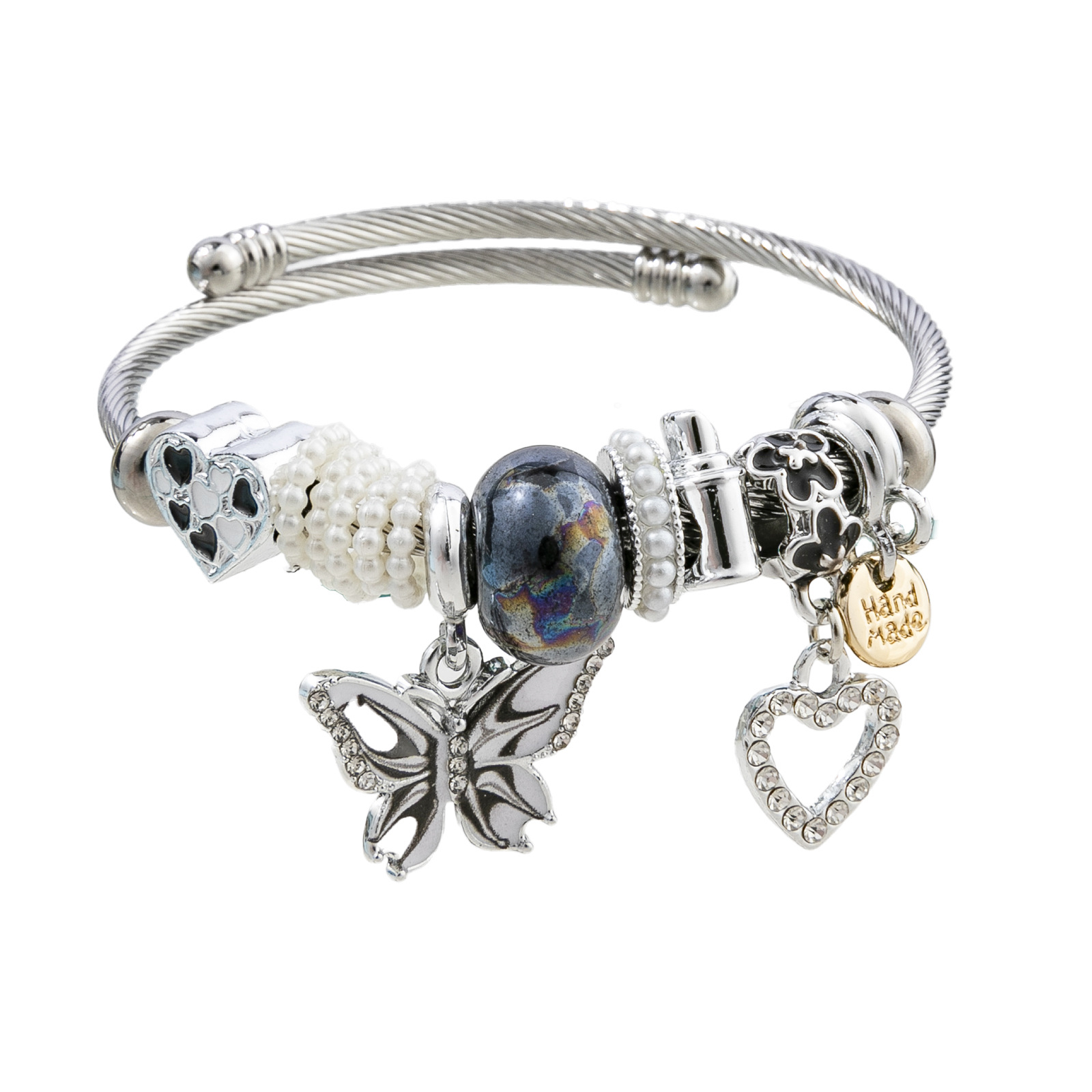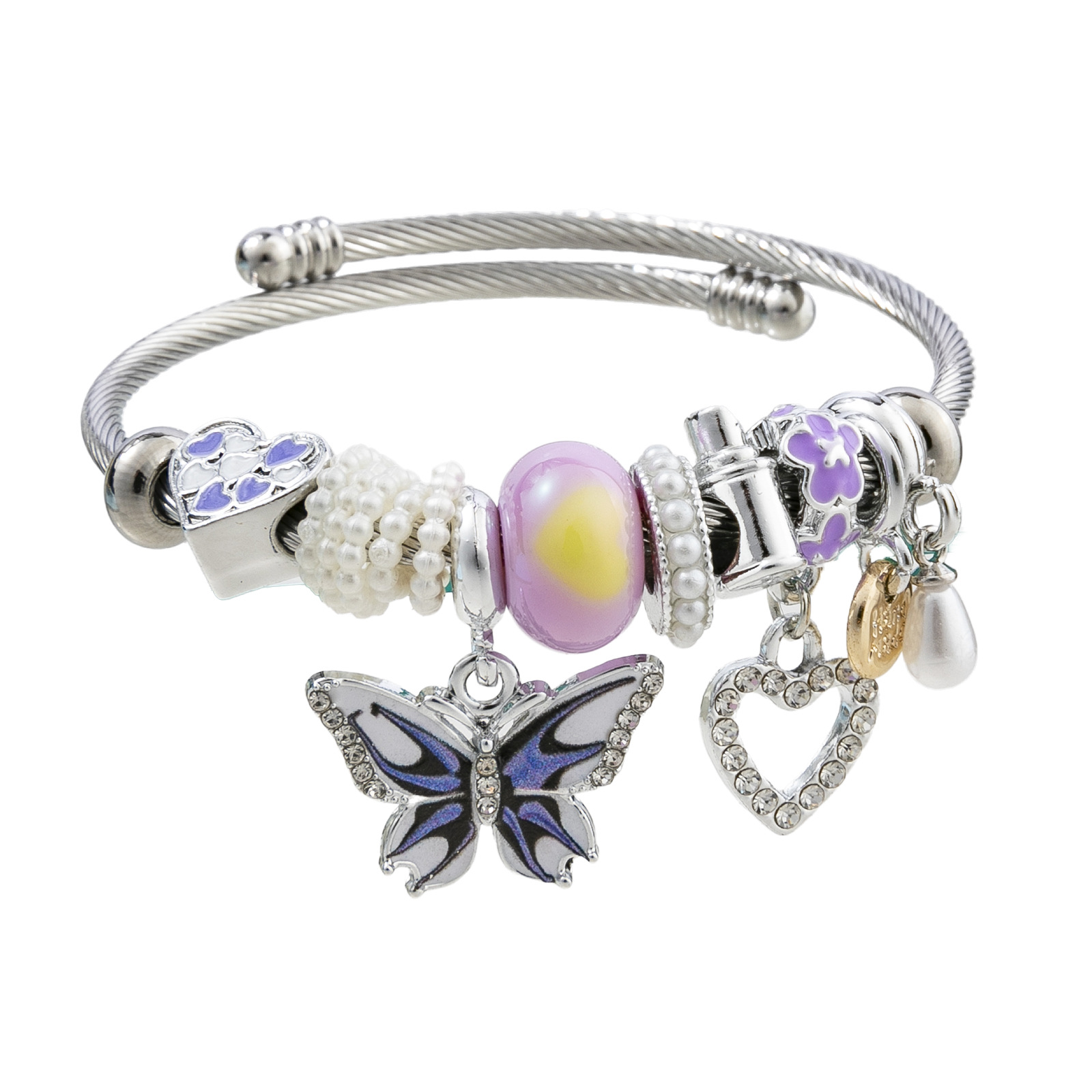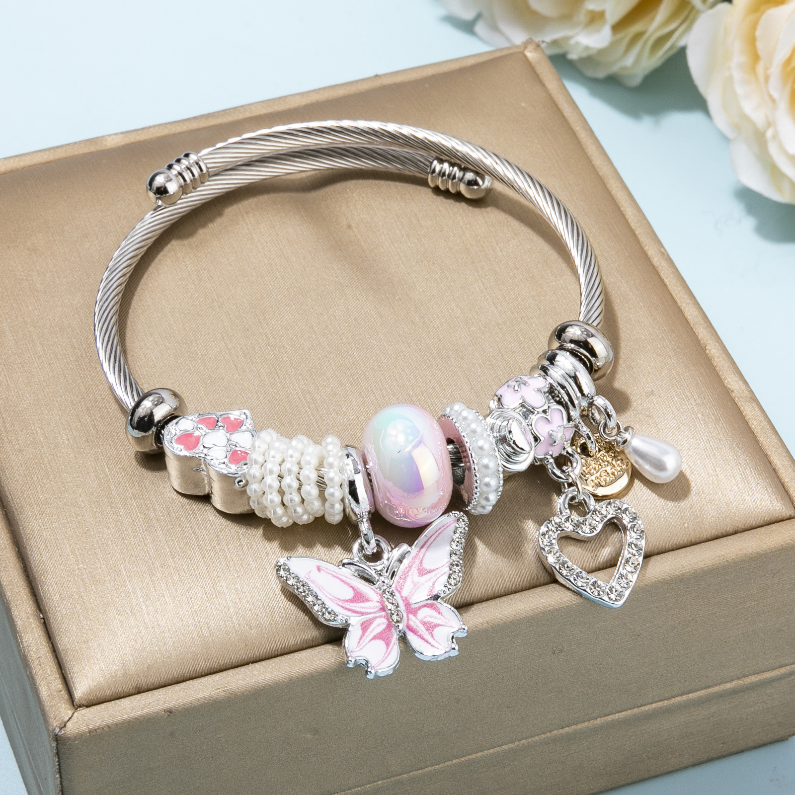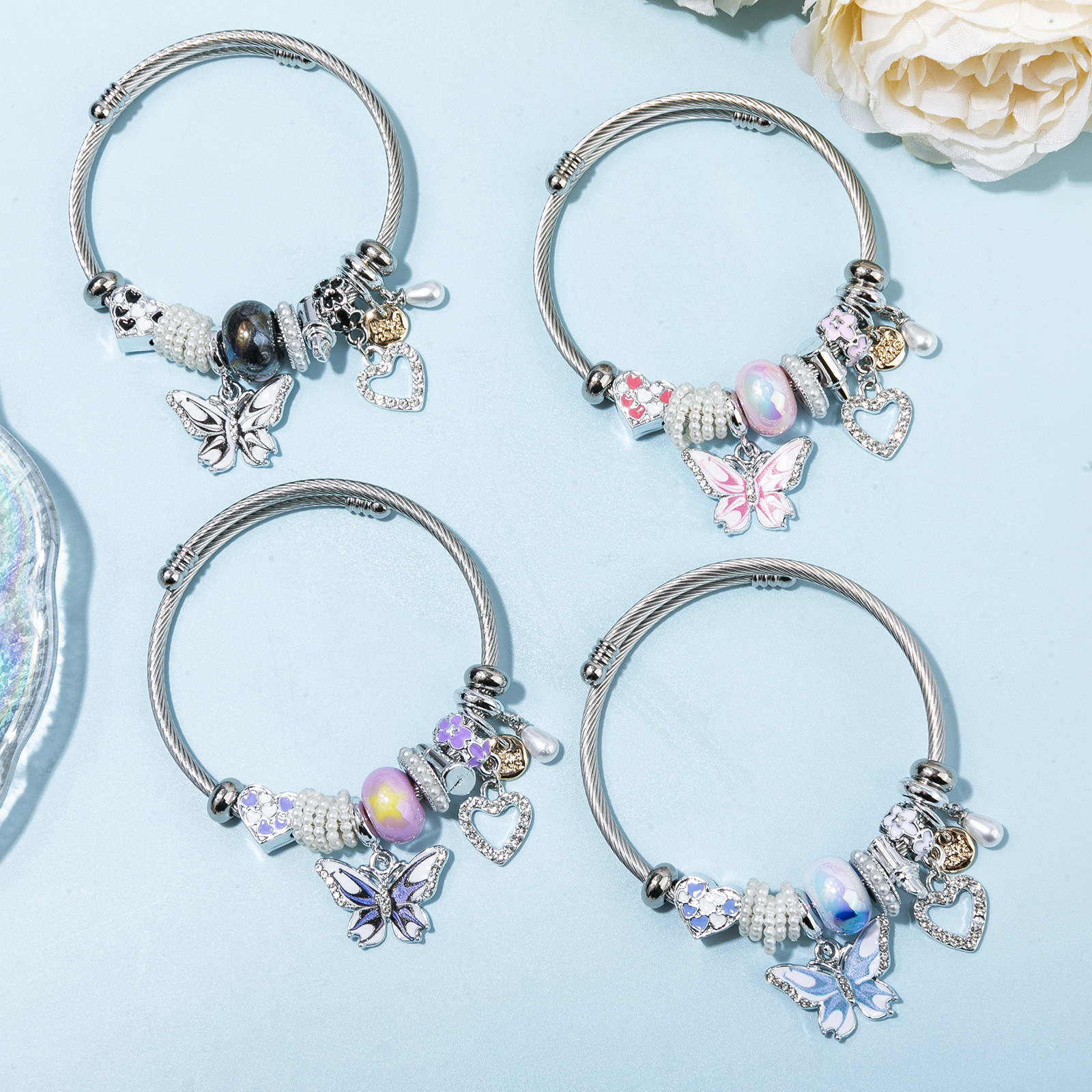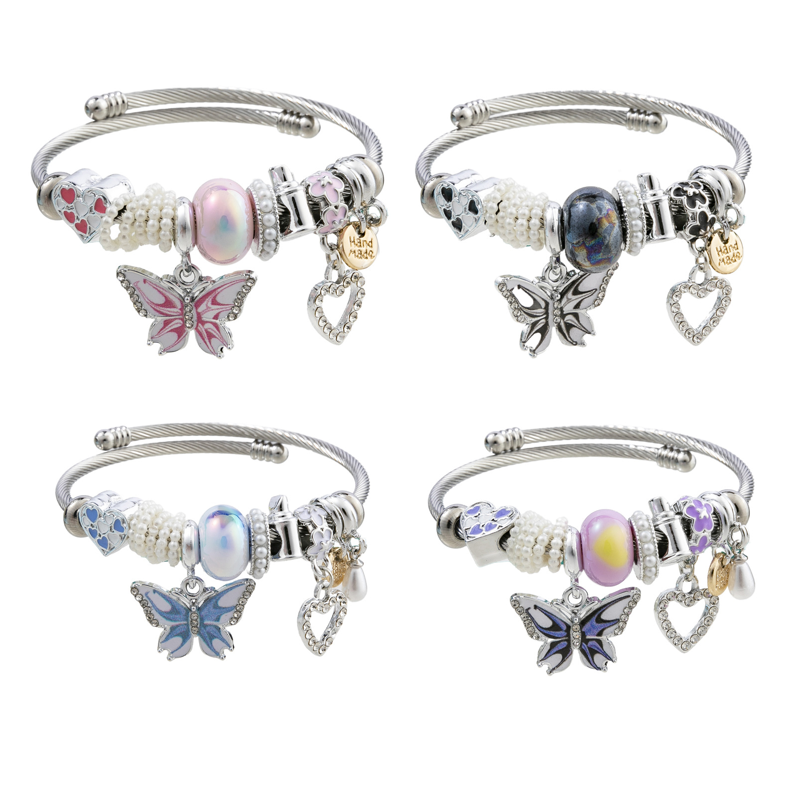 Bracelets European acier inoxydable, Acier inoxydable 304, avec perle de plastique & alliage de zinc, papillon, Placage, Réglable & bijoux de mode & pour femme & émail & avec strass, plus de couleurs à choisir, diameter about:5.5cm, Vendu par PC