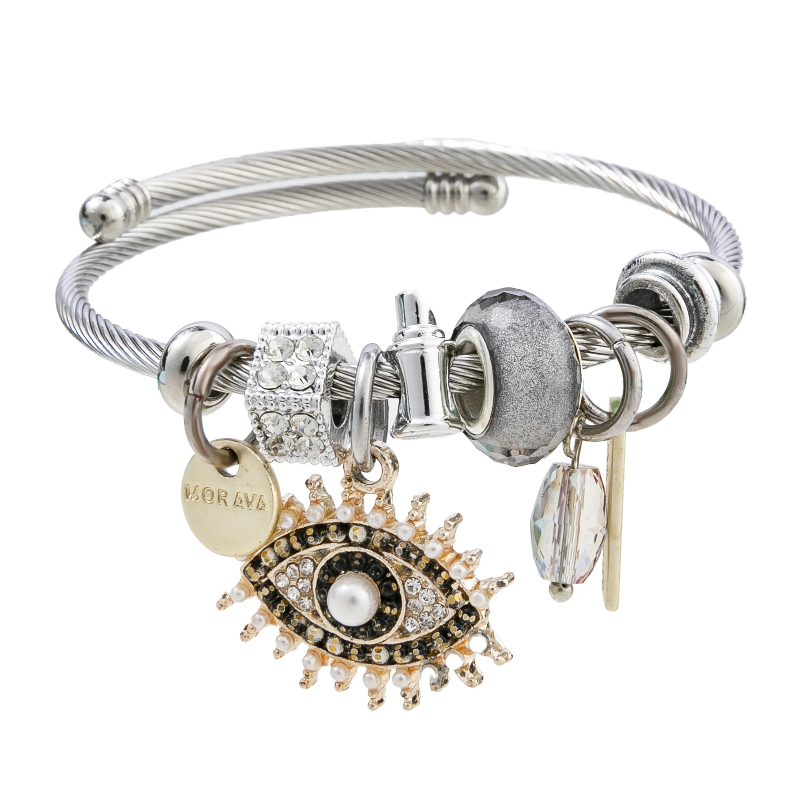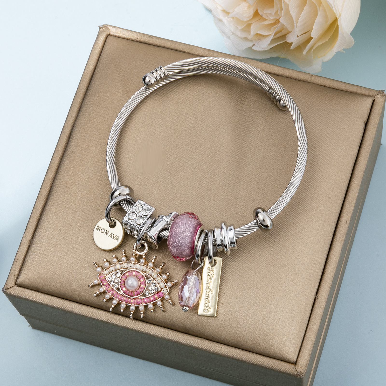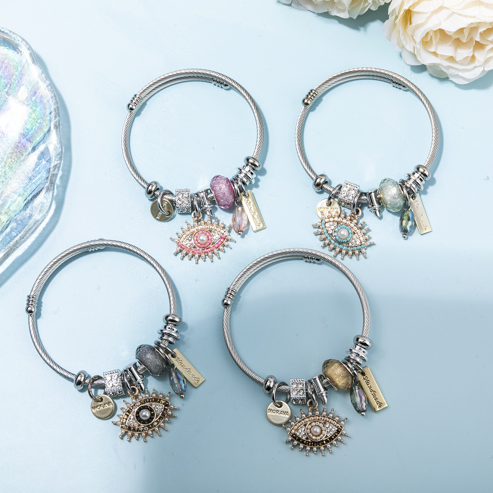 Bracelets European acier inoxydable, Acier inoxydable 304, avec perle de plastique & alliage de zinc, Mauvais œil, Placage, Réglable & bijoux de mode & pour femme & avec strass, plus de couleurs à choisir, diameter about:5.5cm, Vendu par PC