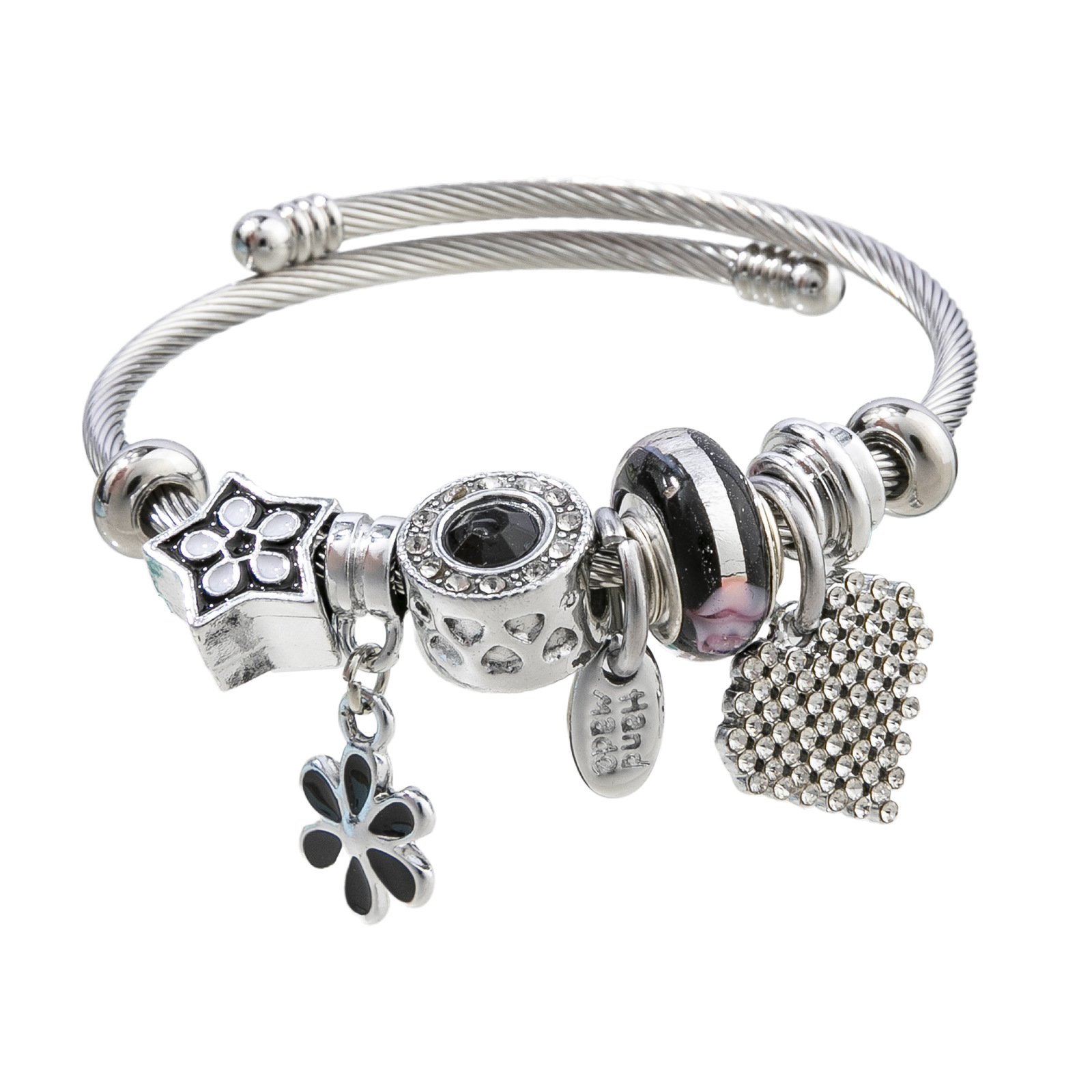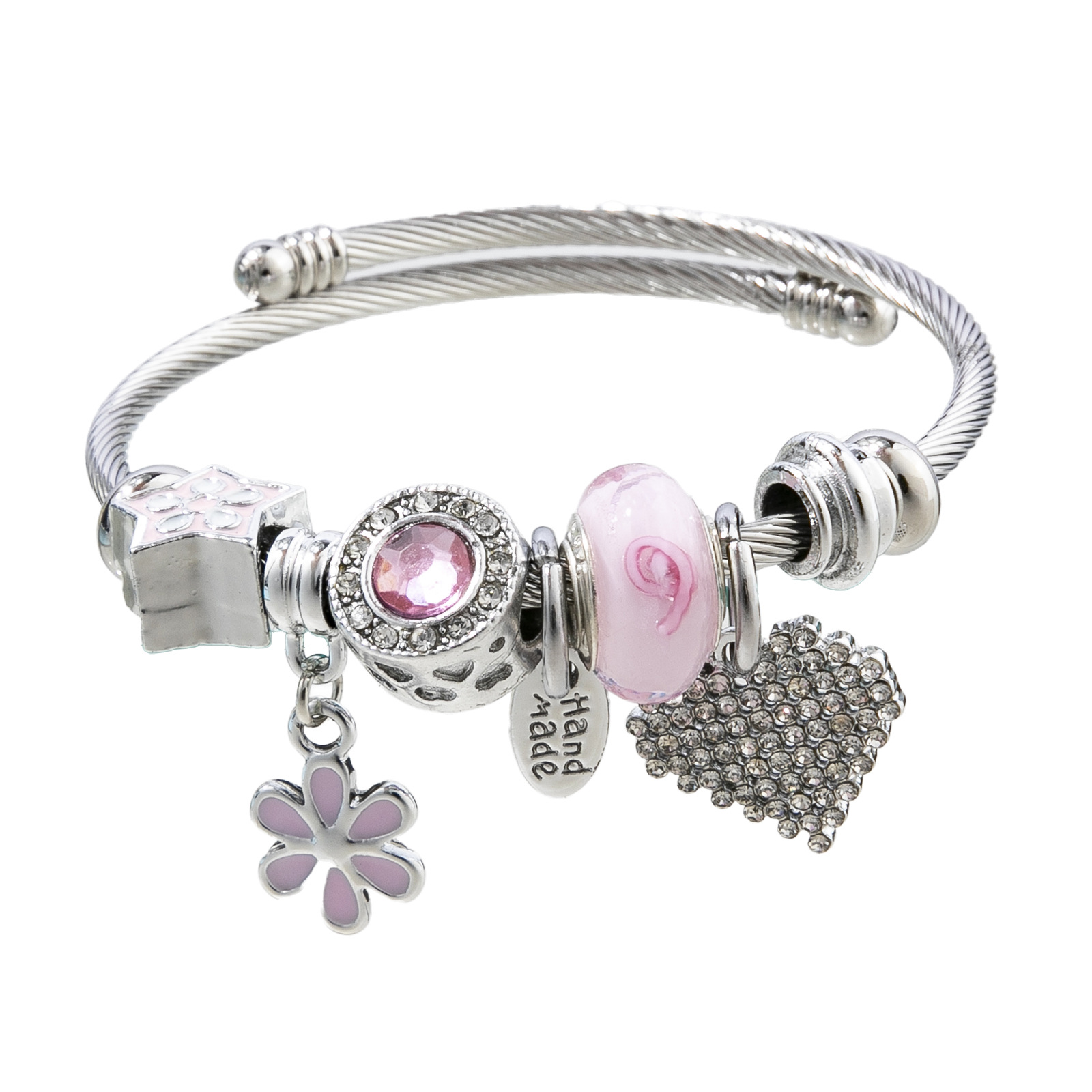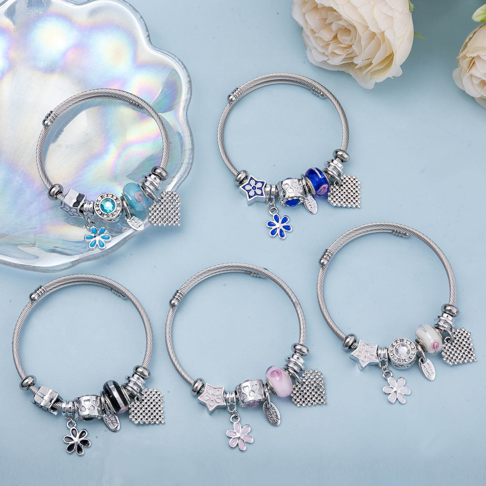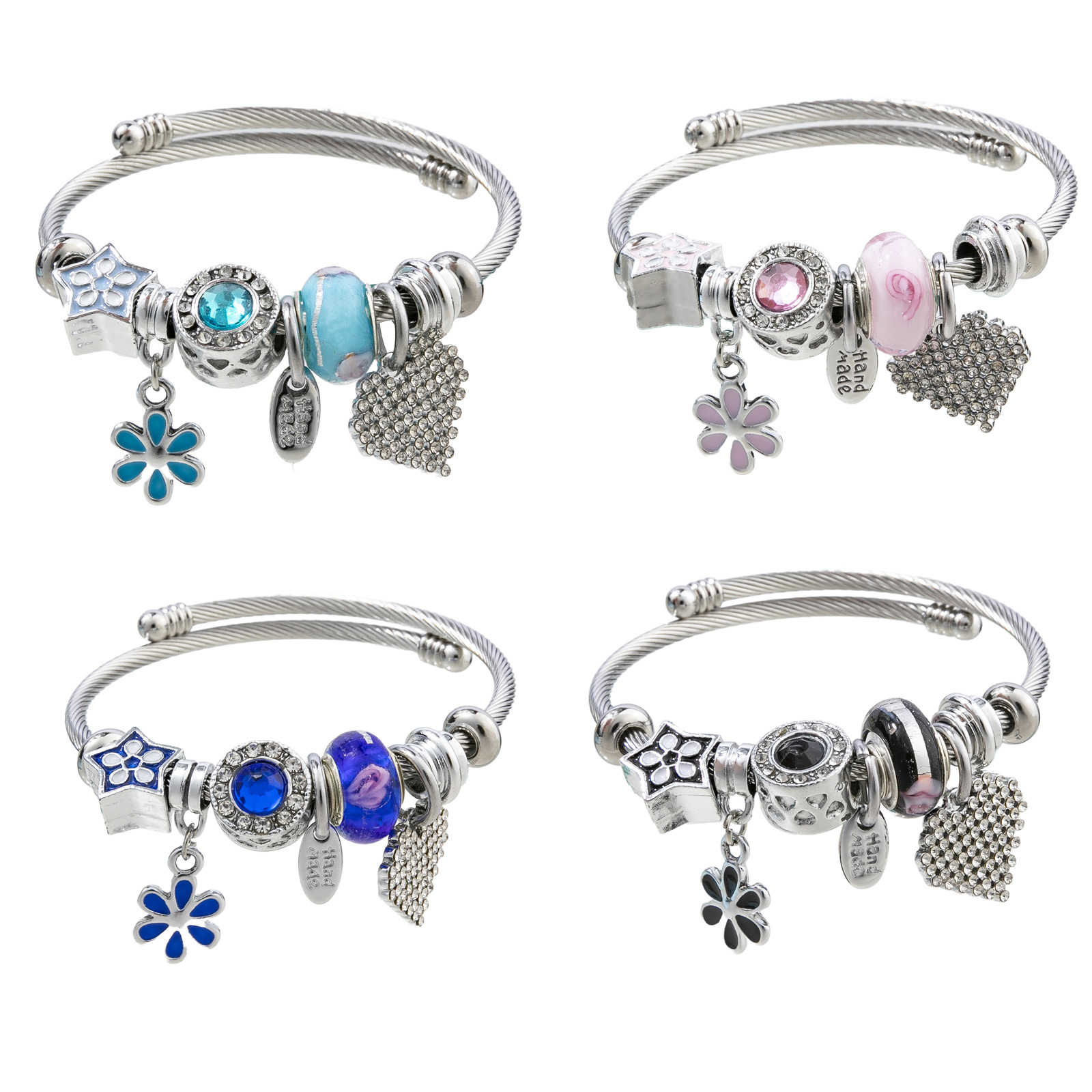 Bracelets European acier inoxydable, Acier inoxydable 304, avec alliage de zinc, fleur, Placage de couleur argentée, Réglable & bijoux de mode & pour femme & émail & avec strass, plus de couleurs à choisir, Vendu par PC