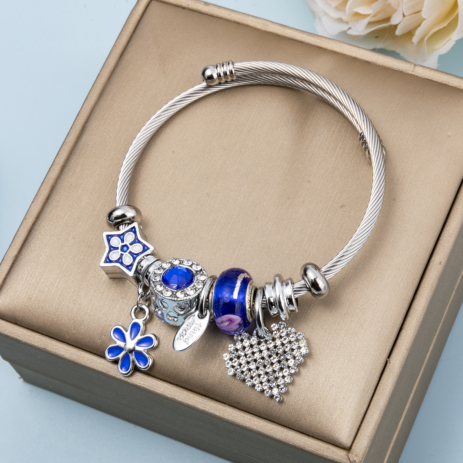 Acier inoxydable 316 bracelet European, fleur, couleur originale Environ 7.5 pouce, Vendu par brin