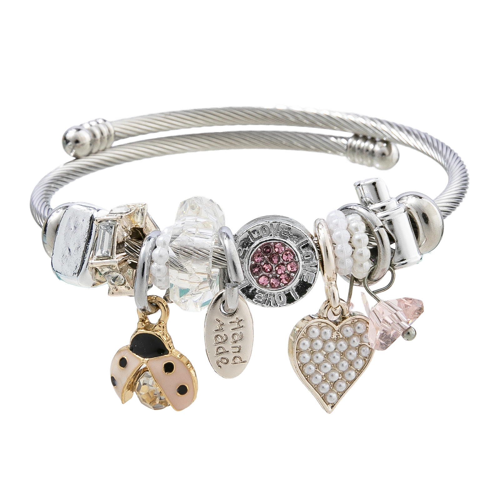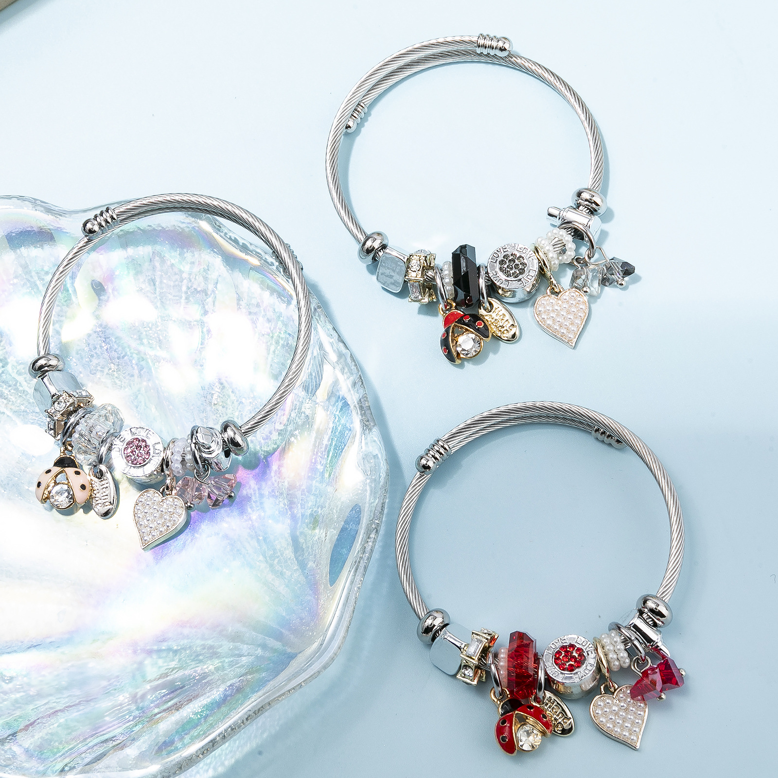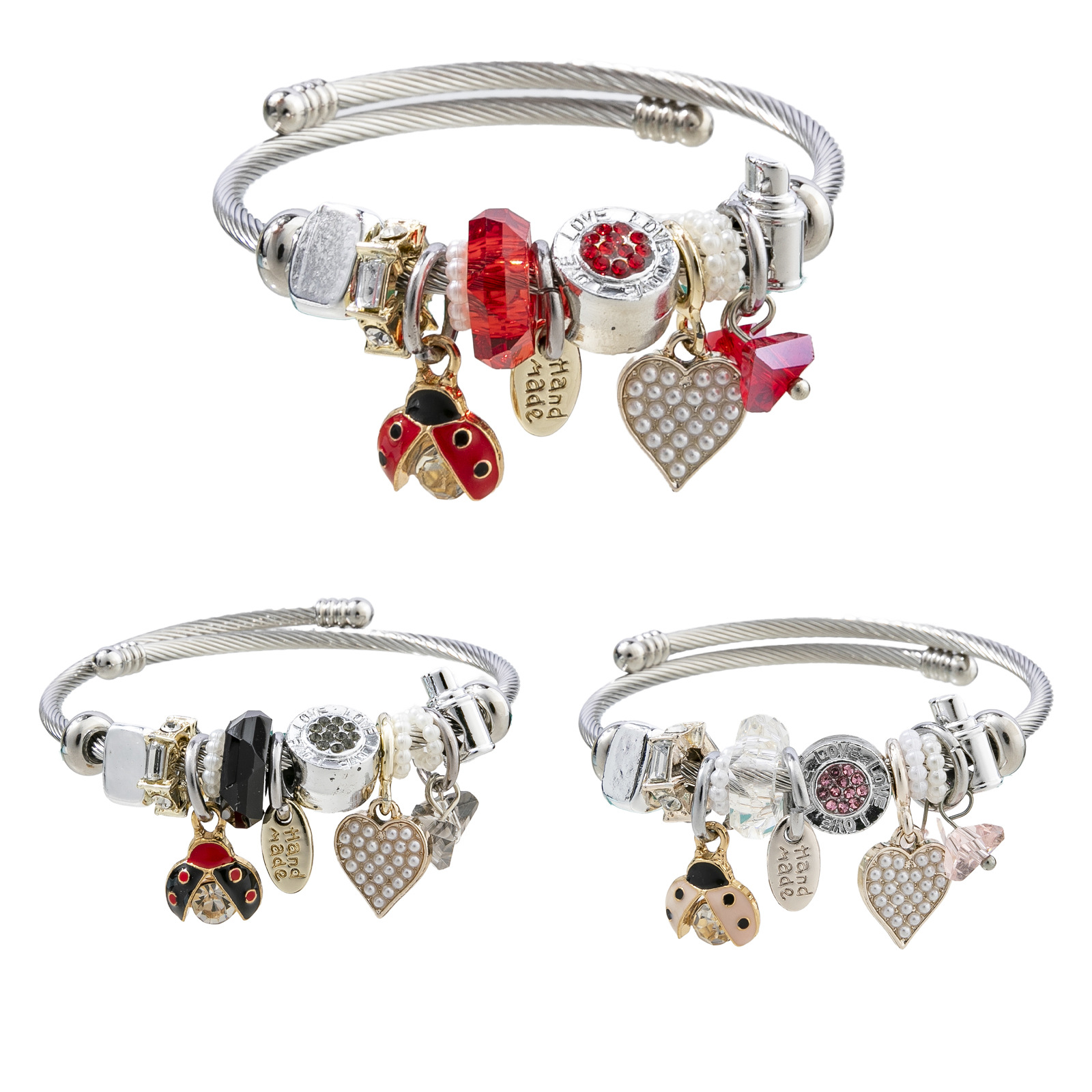 Bracelets European acier inoxydable, Acier inoxydable 304, avec perle de plastique & alliage de zinc, coccinelle, Placage, Réglable & bijoux de mode & pour femme & émail & avec strass, plus de couleurs à choisir, diameter about:5.5cm, Vendu par PC