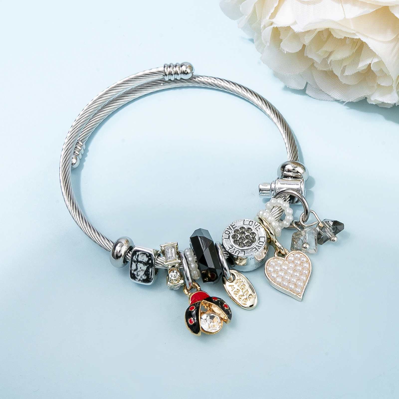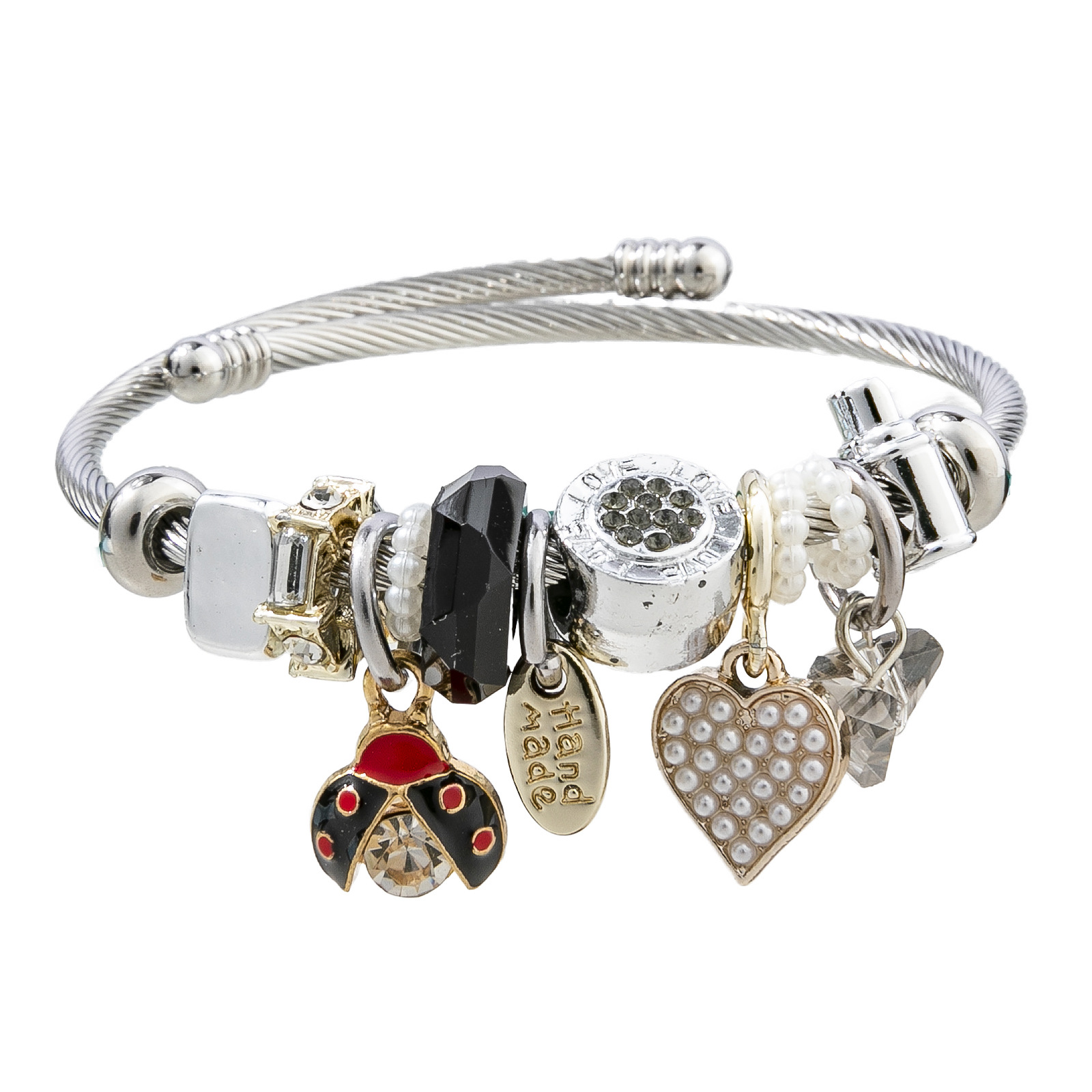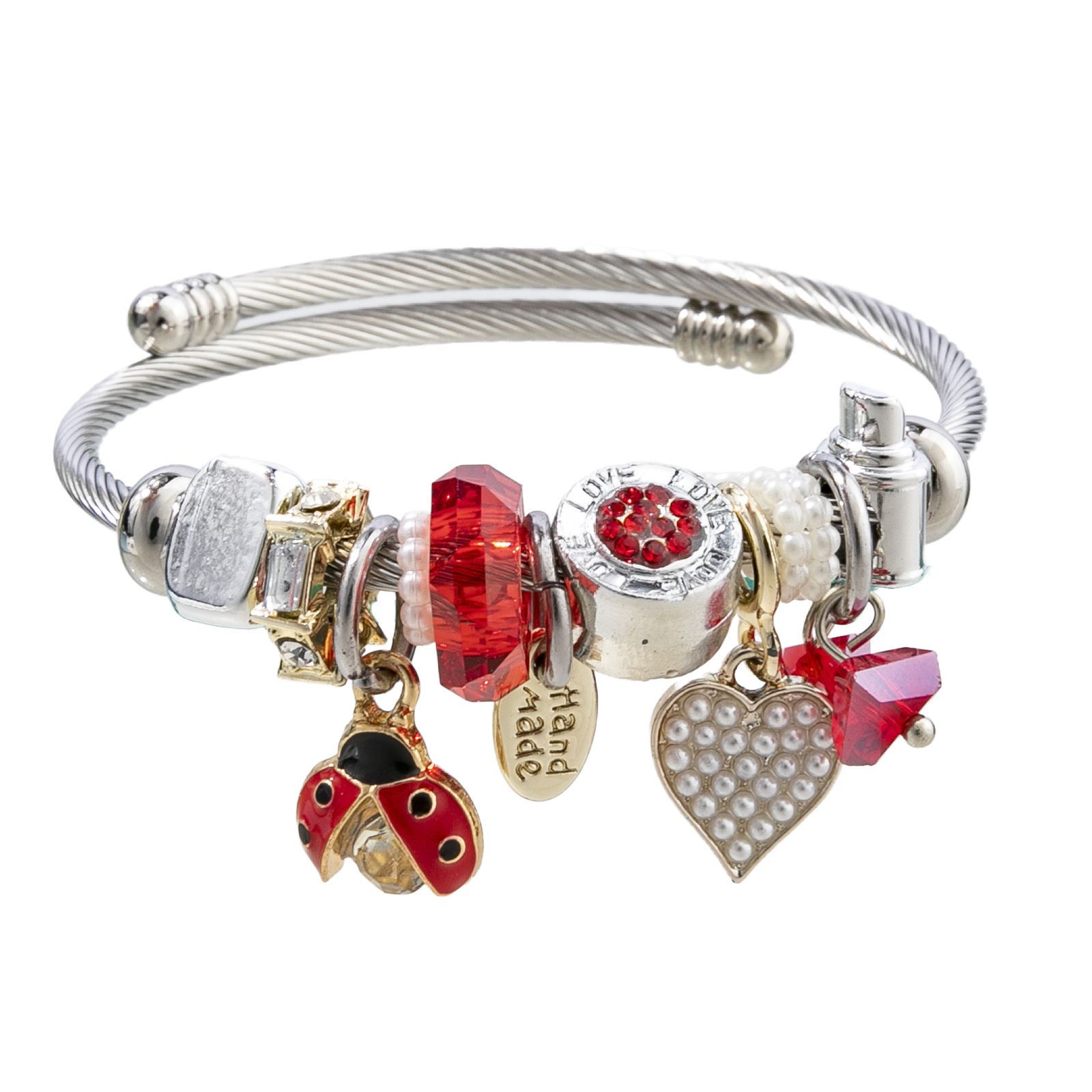 Bracelets European acier inoxydable, Acier inoxydable 304, avec perle de plastique & alliage de zinc, coccinelle, Placage, Réglable & bijoux de mode & pour femme & émail & avec strass, plus de couleurs à choisir, diameter about:5.5cm, Vendu par PC