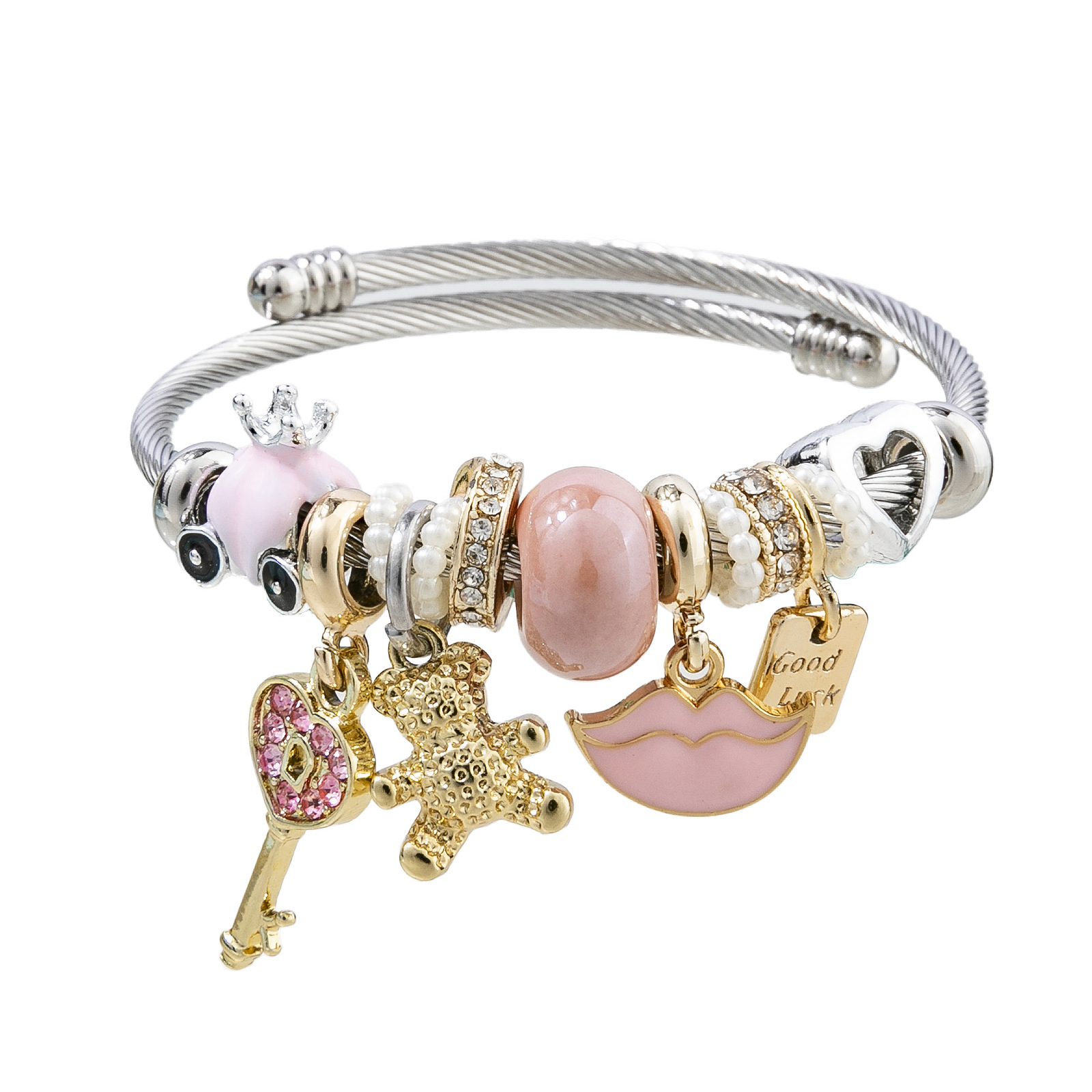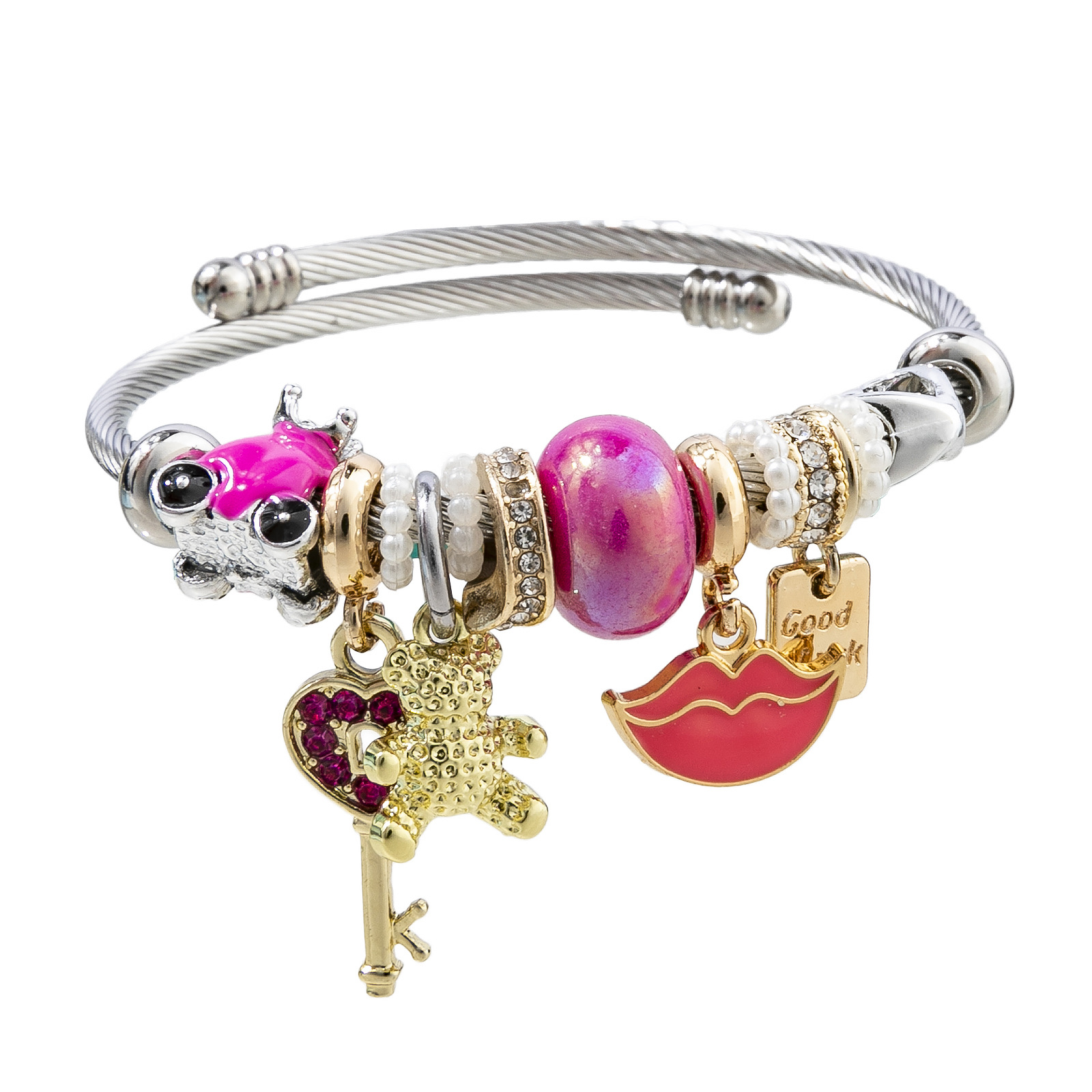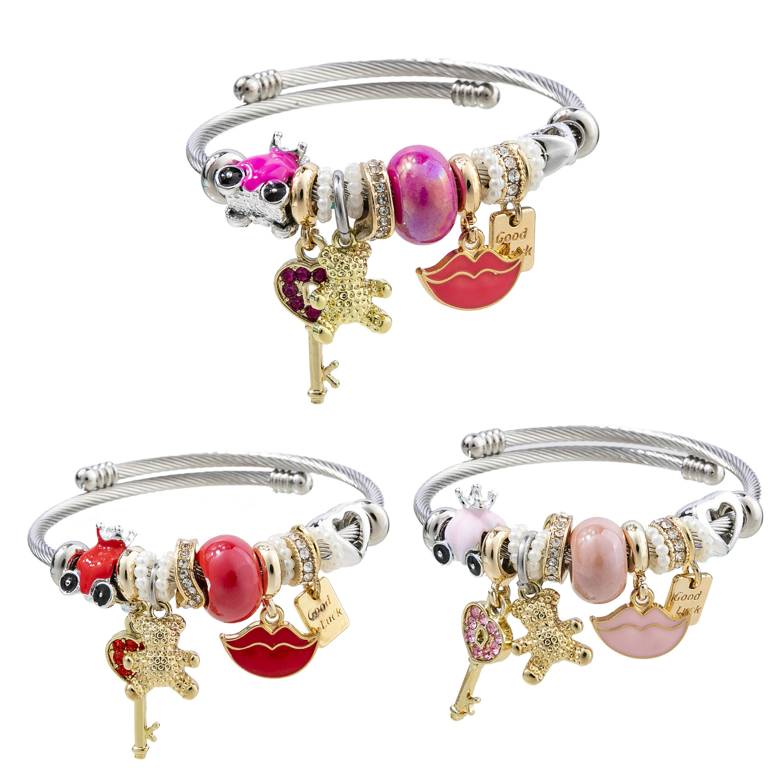 Bracelets European acier inoxydable, Acier inoxydable 304, avec perle de plastique & alliage de zinc, Placage, Réglable & bijoux de mode & pour femme & émail & avec strass, plus de couleurs à choisir, diameter about:5.5cm, Vendu par PC