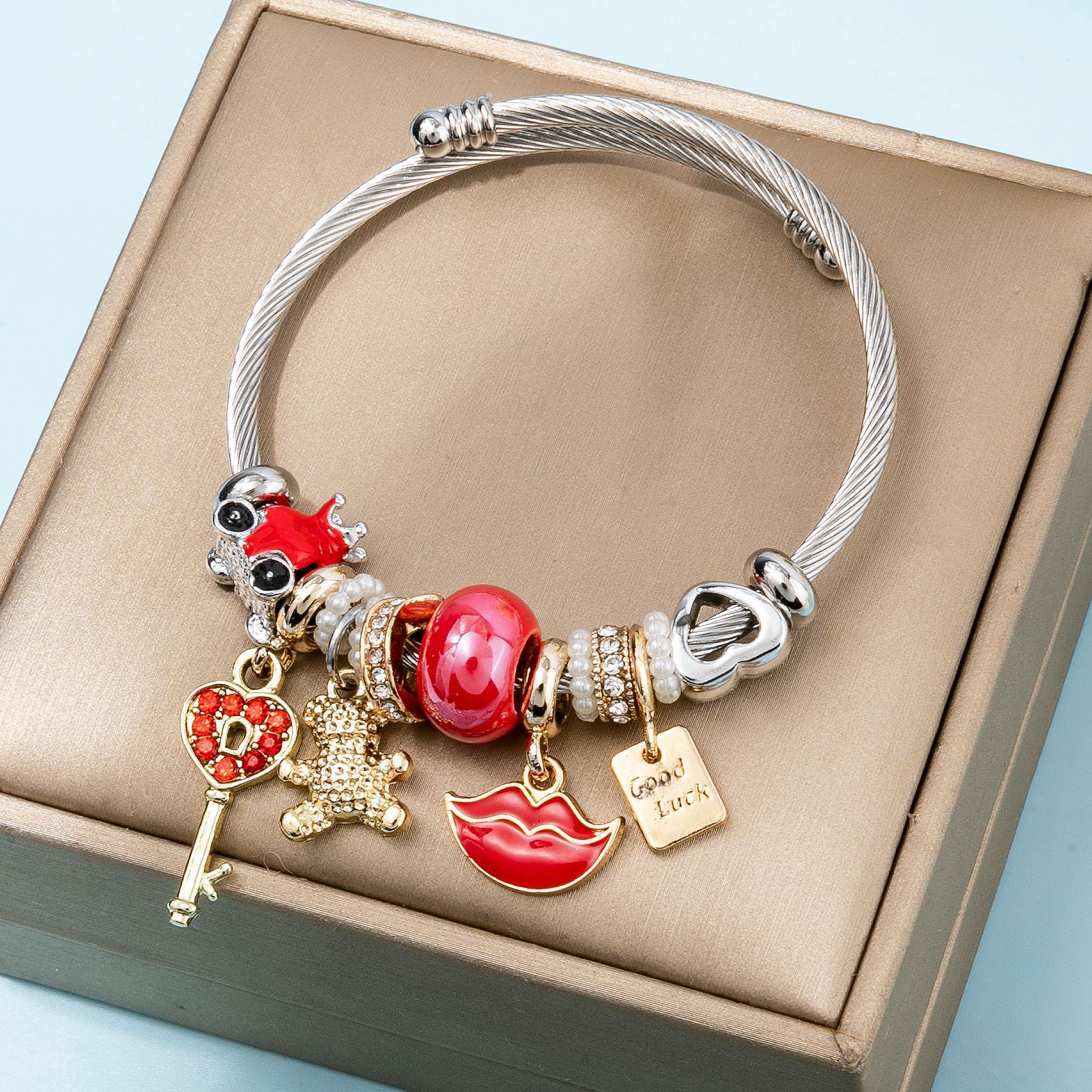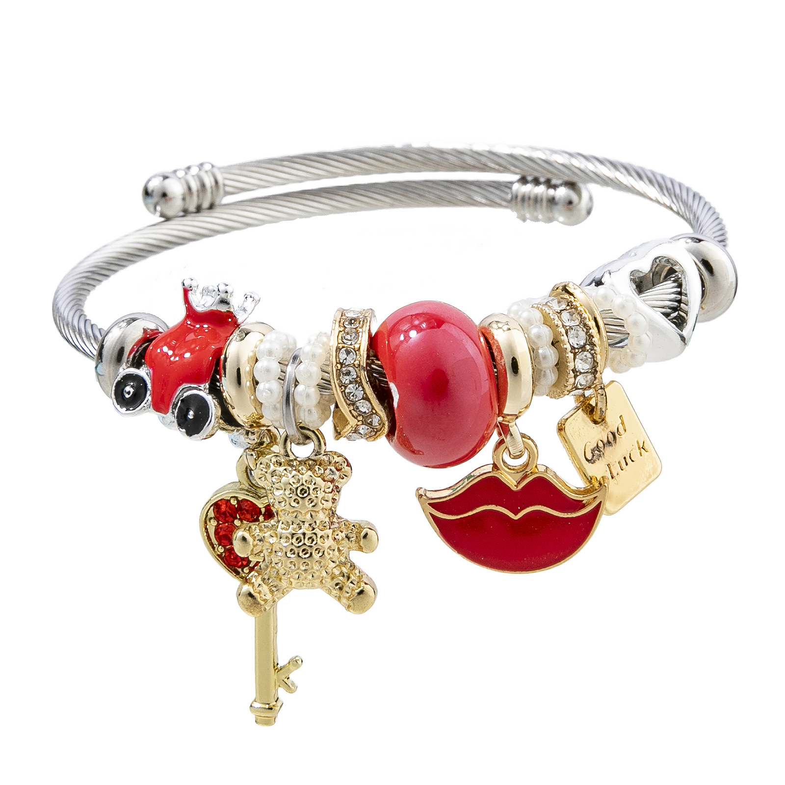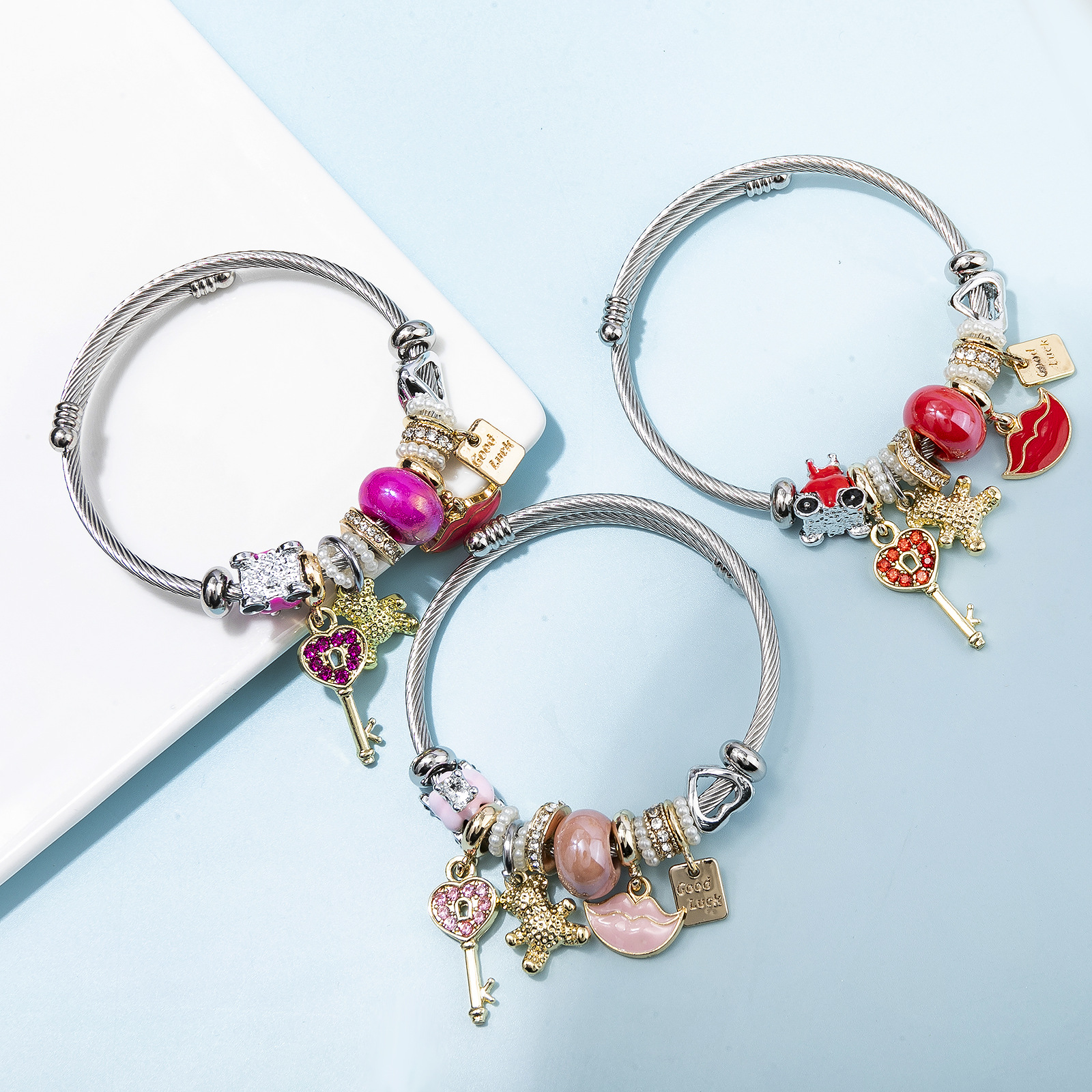 Bracelets European acier inoxydable, Acier inoxydable 304, avec perle de plastique & alliage de zinc, Placage, Réglable & bijoux de mode & pour femme & émail & avec strass, plus de couleurs à choisir, diameter about:5.5cm, Vendu par PC