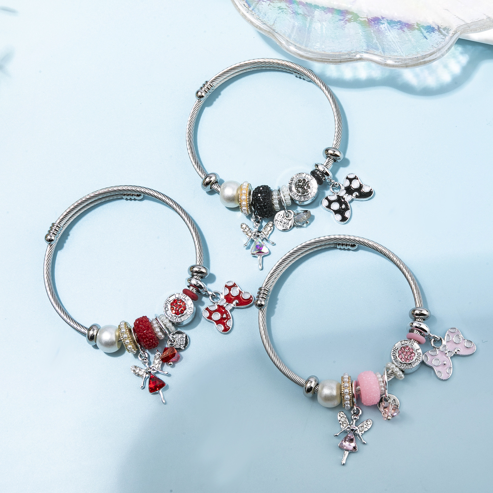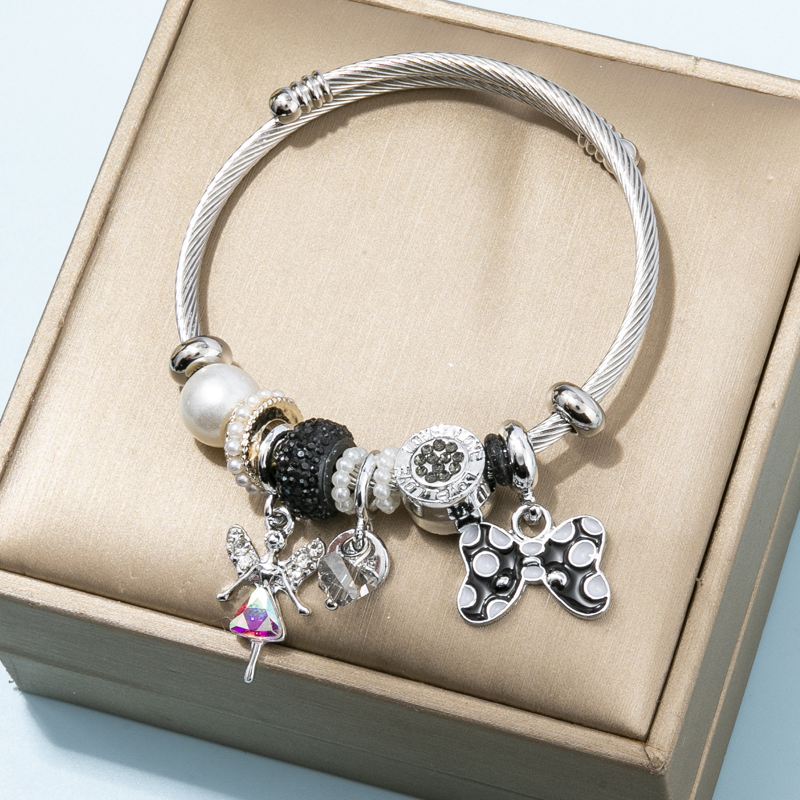 Bracelets European acier inoxydable, Acier inoxydable 304, avec perle de plastique & alliage de zinc, ange, Placage, Réglable & bijoux de mode & pour femme & émail & avec strass, plus de couleurs à choisir, diameter about:5.5cm, Vendu par PC