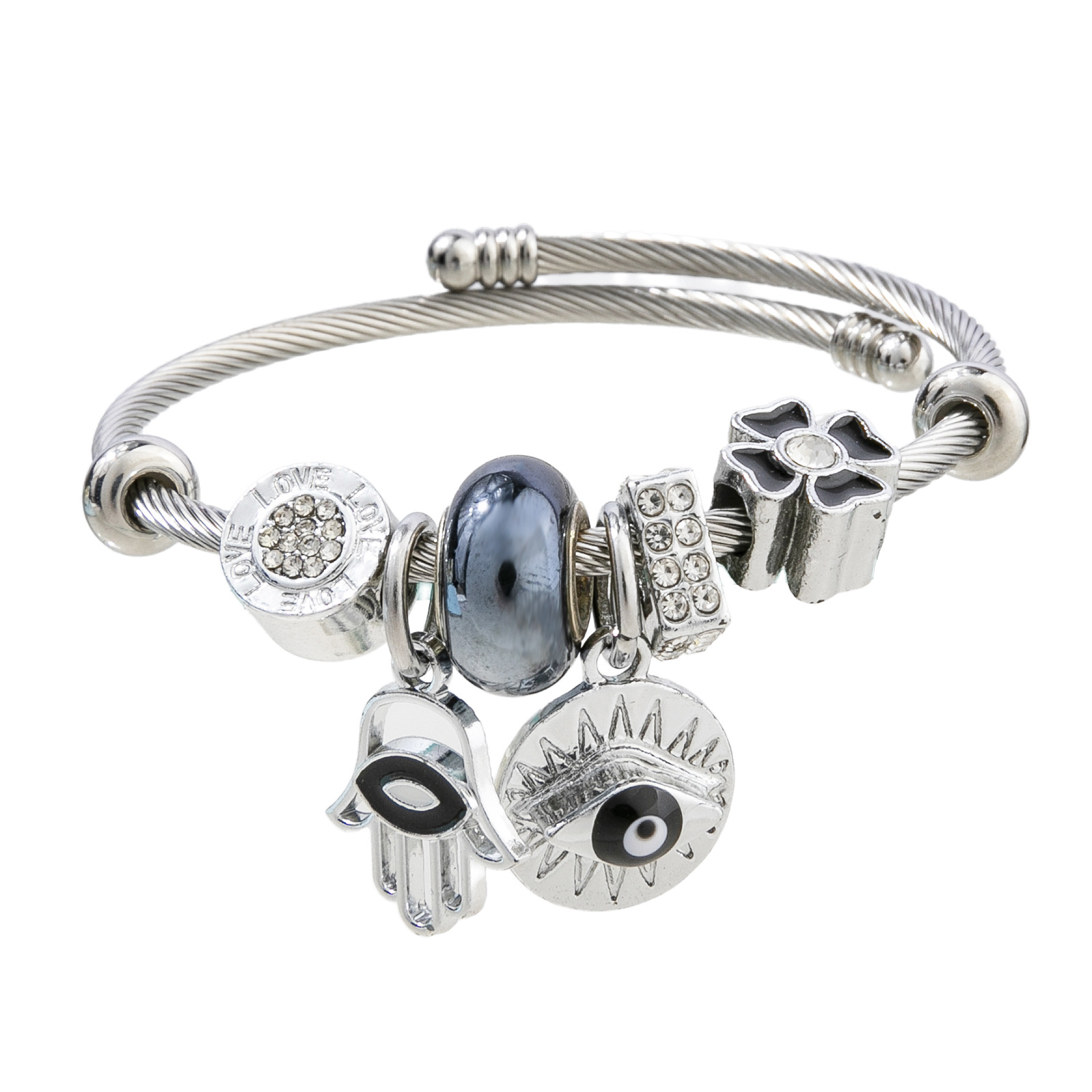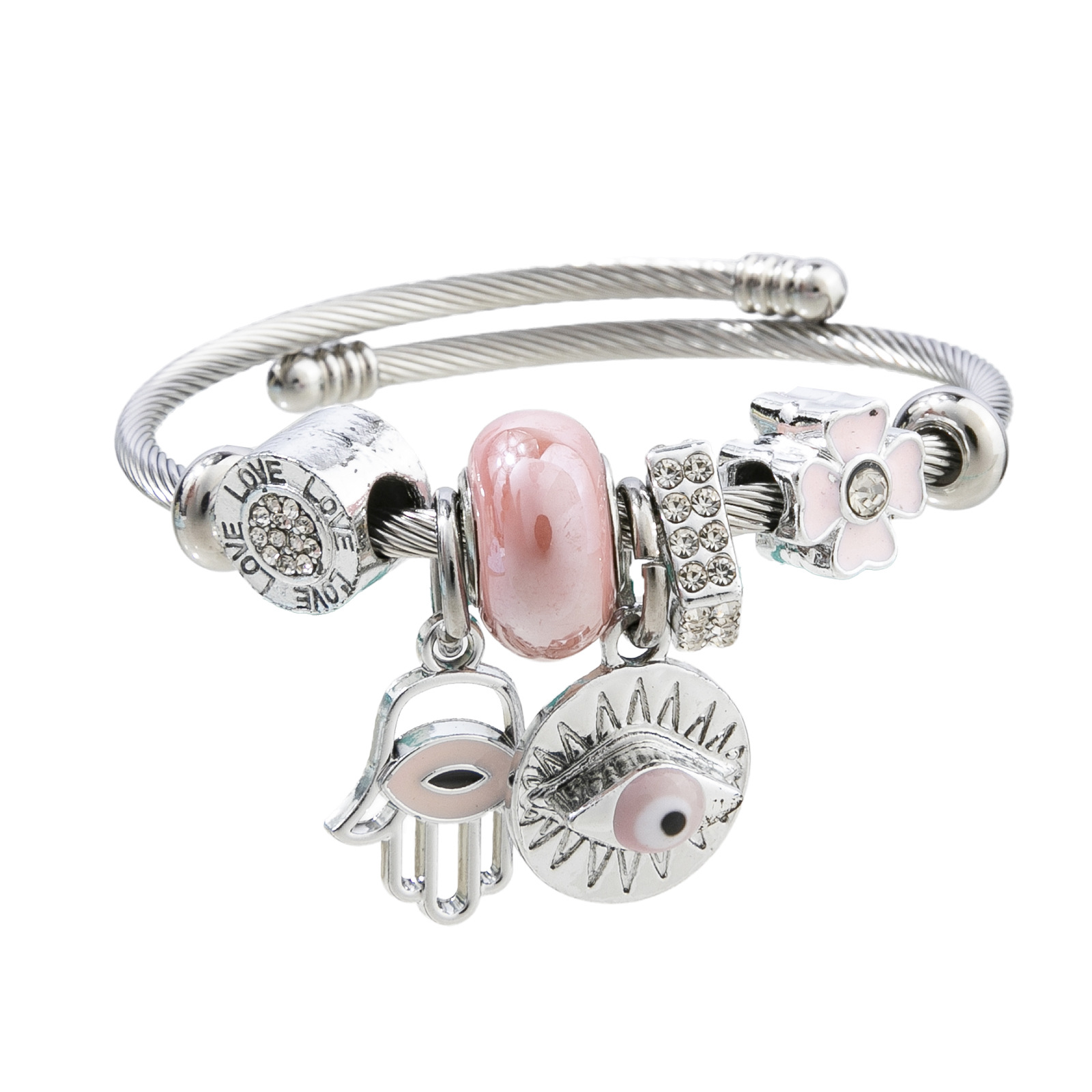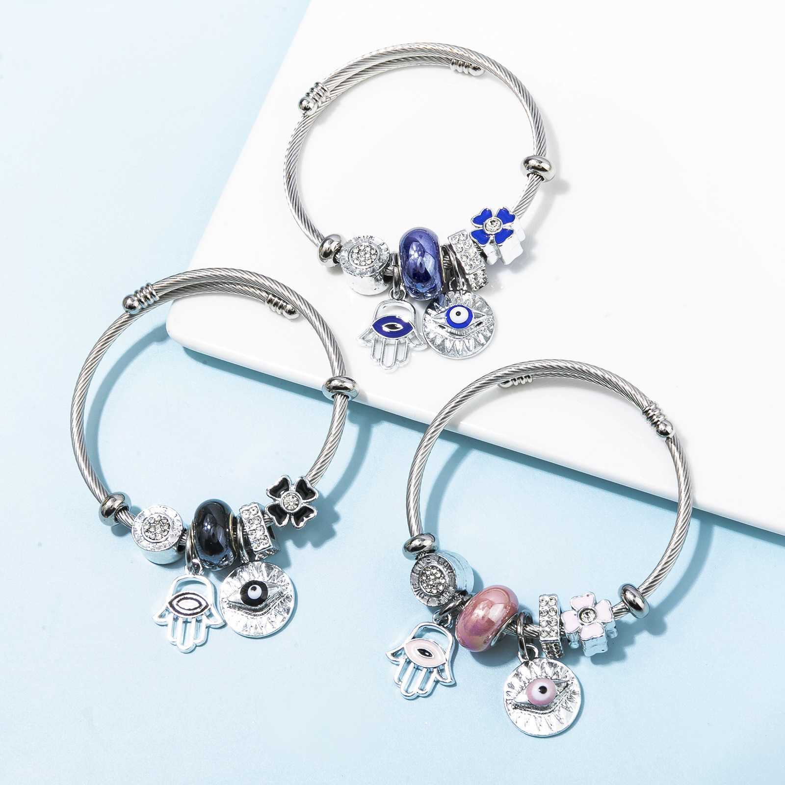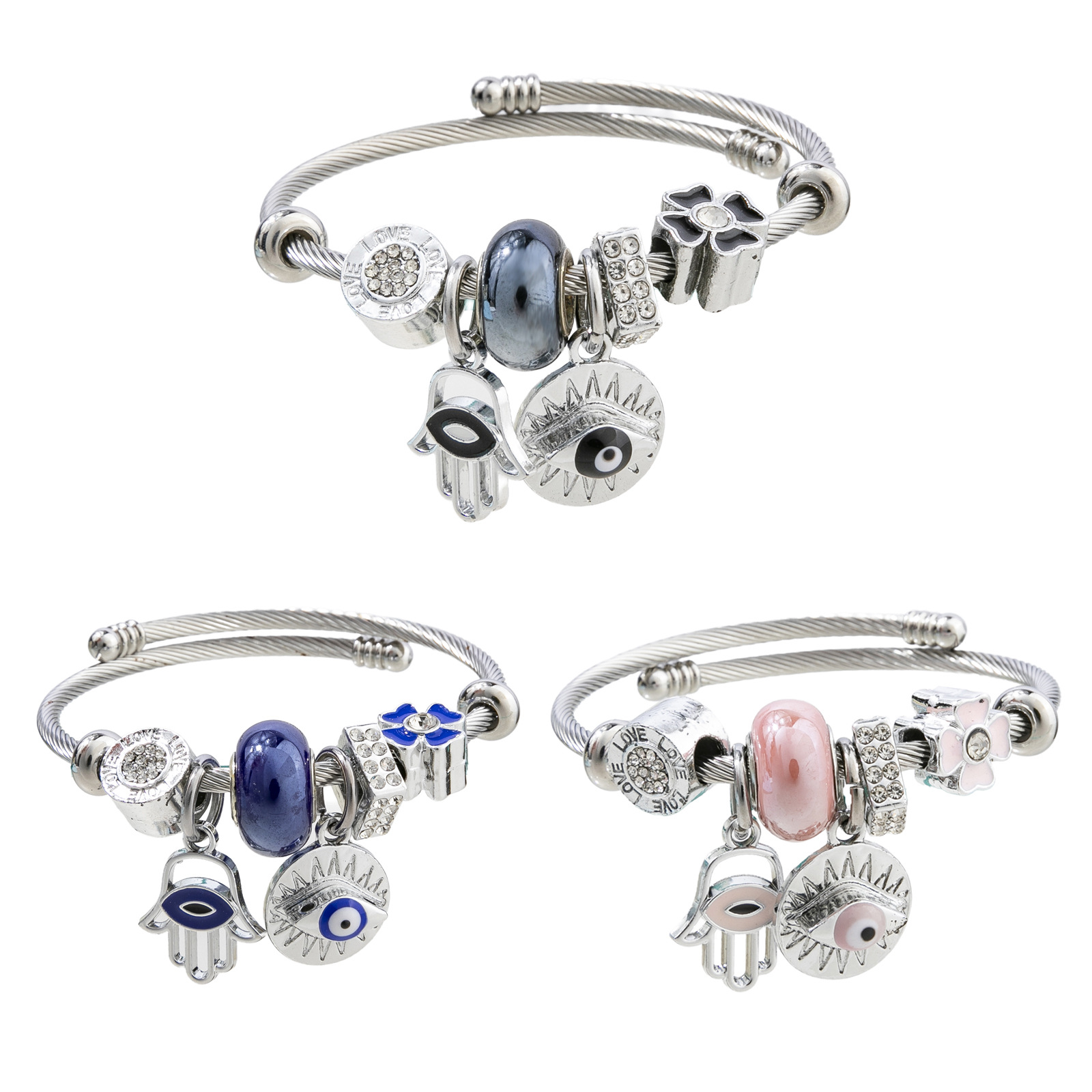 Bracelets European acier inoxydable, Acier inoxydable 304, avec alliage de zinc, Placage de couleur argentée, Réglable & bijoux de mode & pour femme & émail & avec strass, plus de couleurs à choisir, diameter about:5.5cm, Vendu par PC