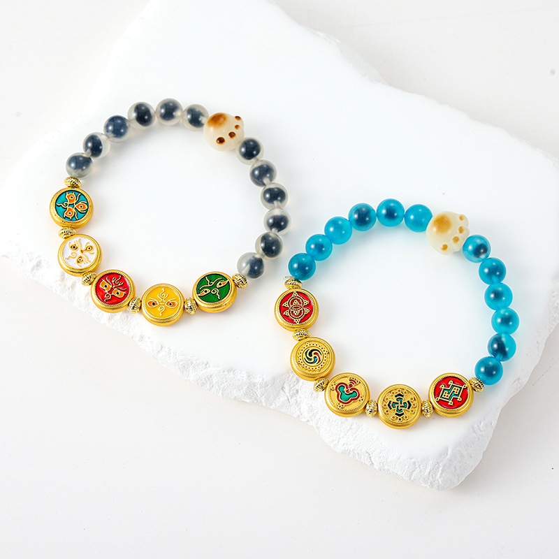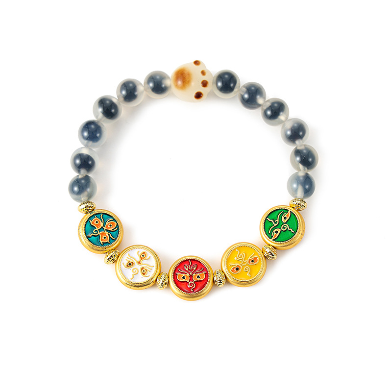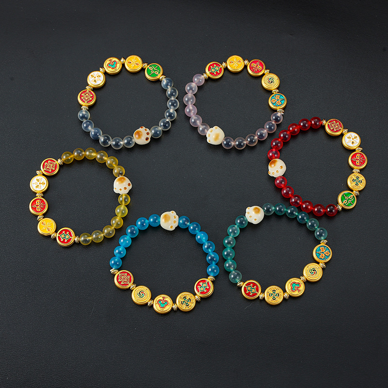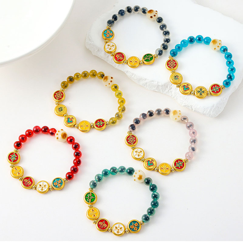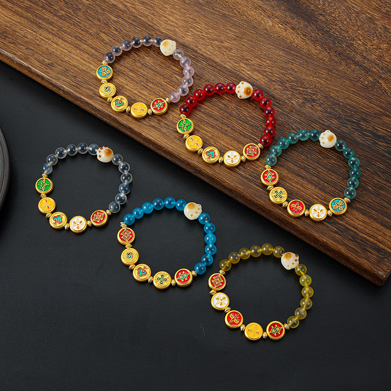 Bracelets de agate, avec entretoise laiton strass & cristal & plastique, Rond, mantra & styles différents pour le choix & or accentué, 8mm Environ 7.5 pouce, Vendu par brin