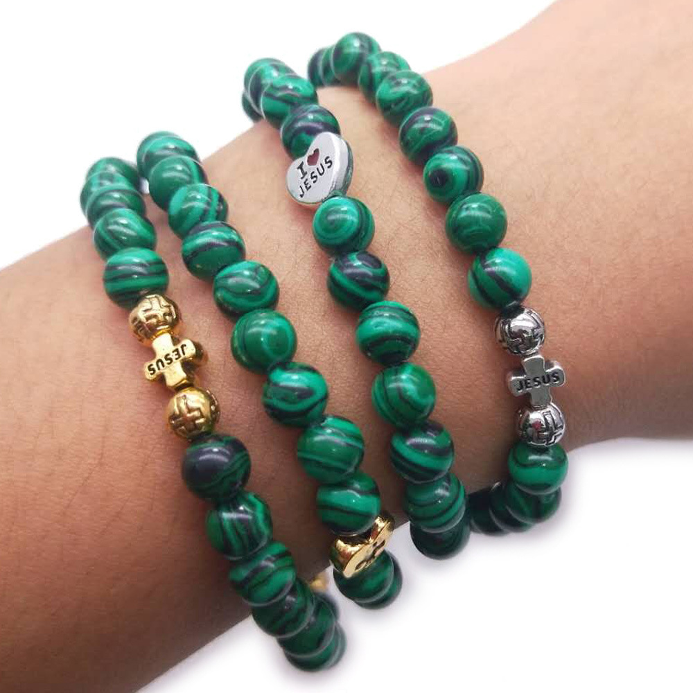 Bracelets de malachite, alliage de zinc, avec Malachite, croix, Placage, bijoux de mode, plus de couleurs à choisir, 6mm, Longueur:17 cm, Vendu par PC